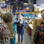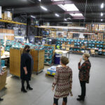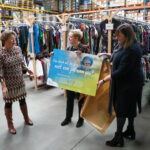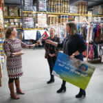 De burgemeester en wethouder sluiten de rondleiding af bij de winkel, waar mensen met een indicatie op afspraak kleding mogen komen uitzoeken. Ze merken de gezelligheid op, in deze grote hal met een enorme hoeveelheid kledingstukken. De styling van de winkel is passend bij het seizoen, dus het is op dit moment net kerstshoppen in Maasbracht.