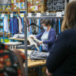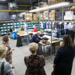 Achter een naaimachine verricht iemand herstelwerkzaamheden. Soms om kapotte kleding te herstellen, maar bijvoorbeeld ook om logo’s van bedrijven te verwijderen of weg te werken. Een ander komt één keer per week strijken, alleen al vanwege het gezellige contact met de anderen die hier hun handen uit de figuurlijke mouwen steken.