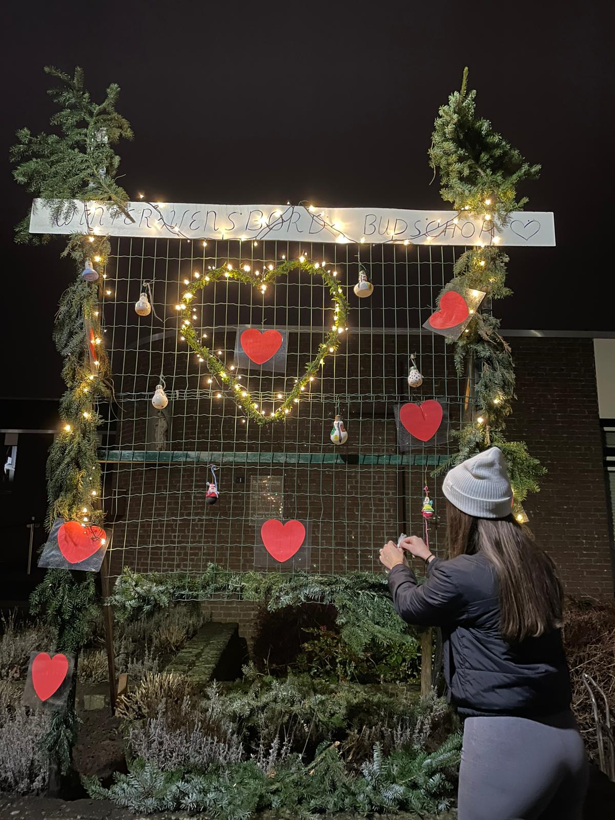 Schrijf je wens op een kaartje, met daarbij ook je eigen naam/telefoonnummer. Plastificeer dat (of doe het in een boterhamzakje) en hang het aan het ‘Winterwensbord Budschop’ dat staat opgesteld bij de kerk.