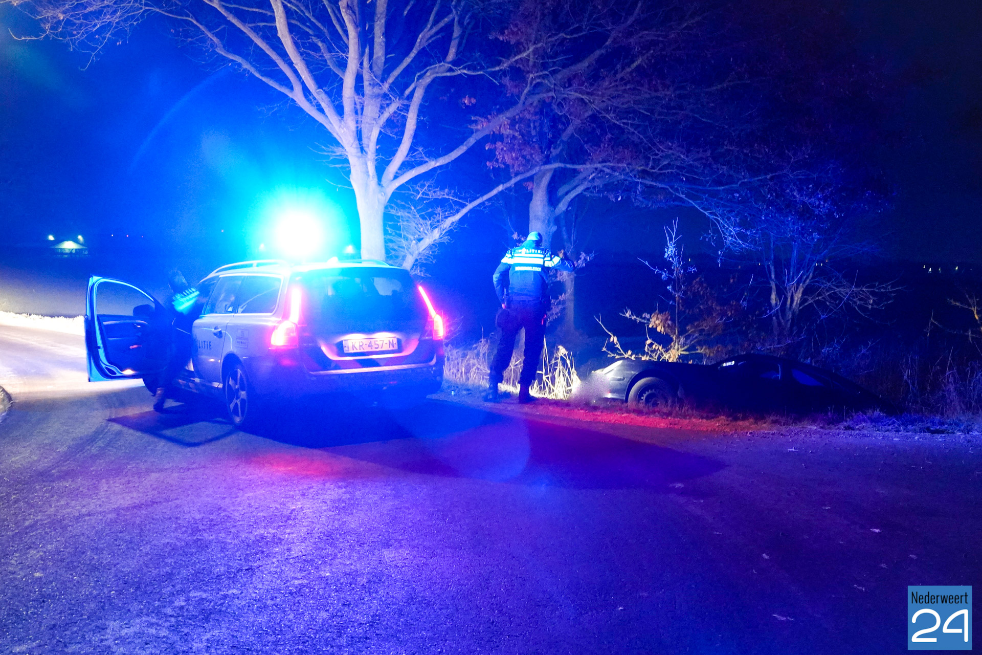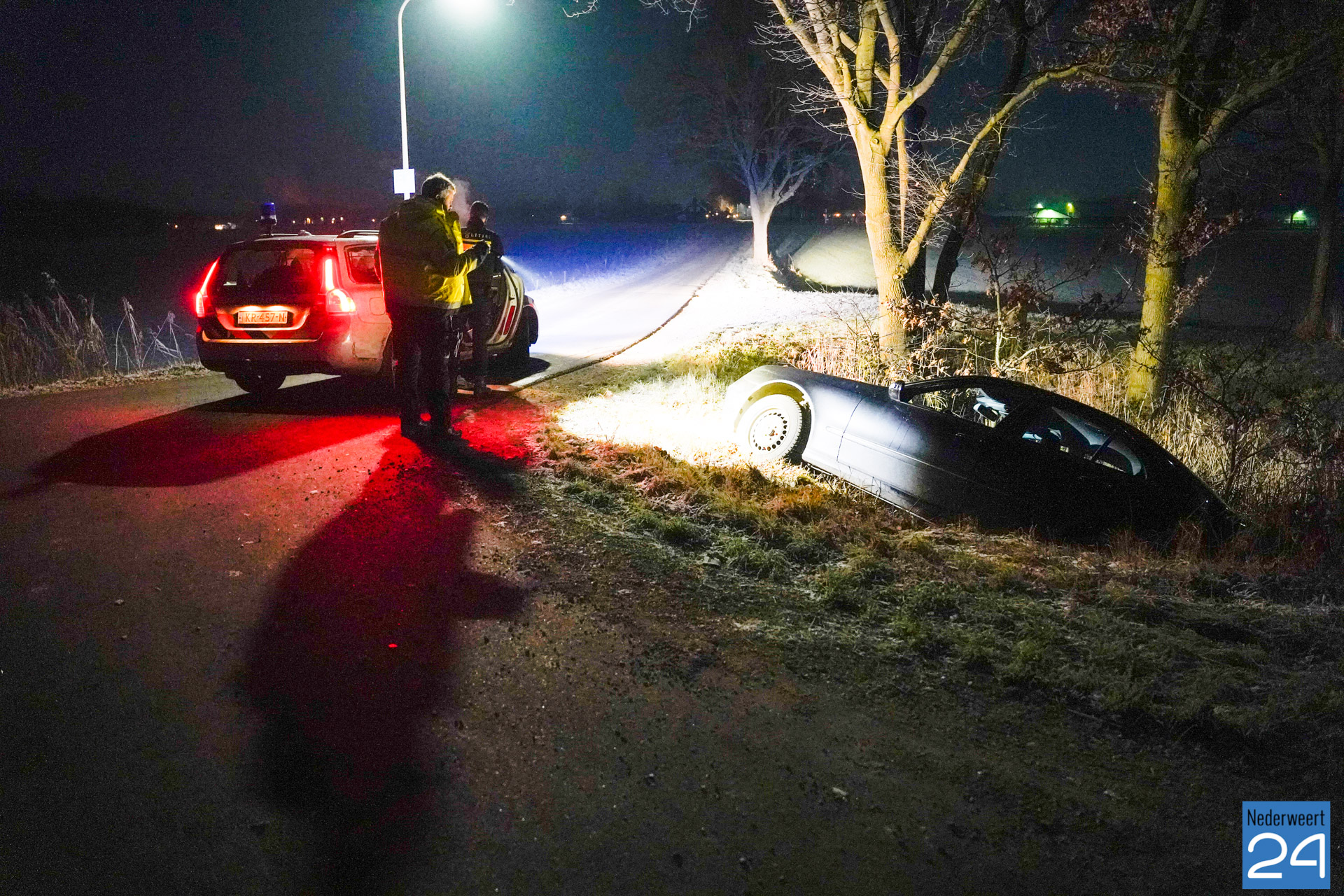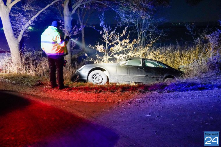 De bestuurder van een personenauto is in de nacht van dinsdag op woensdag met zijn voertuig in een sloot belandt aan de Kanaaldijk nabij Sluis 13 op de grens van Nederweert met Someren-Eind.