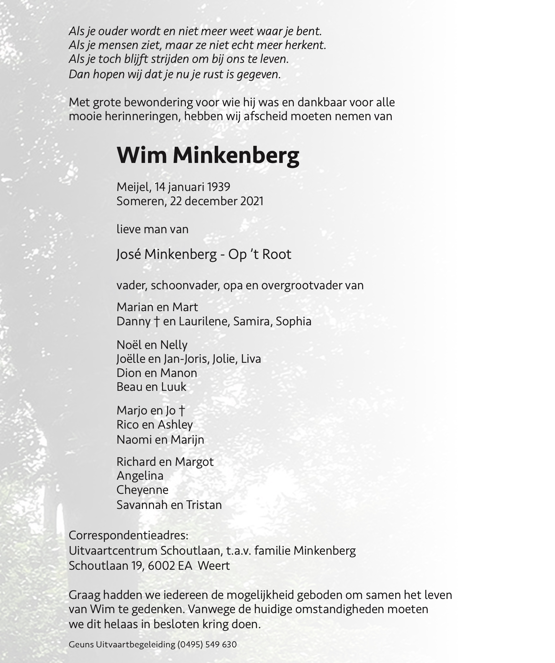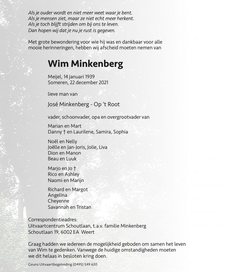 Overlijdensbericht: Wim Minkenberg †