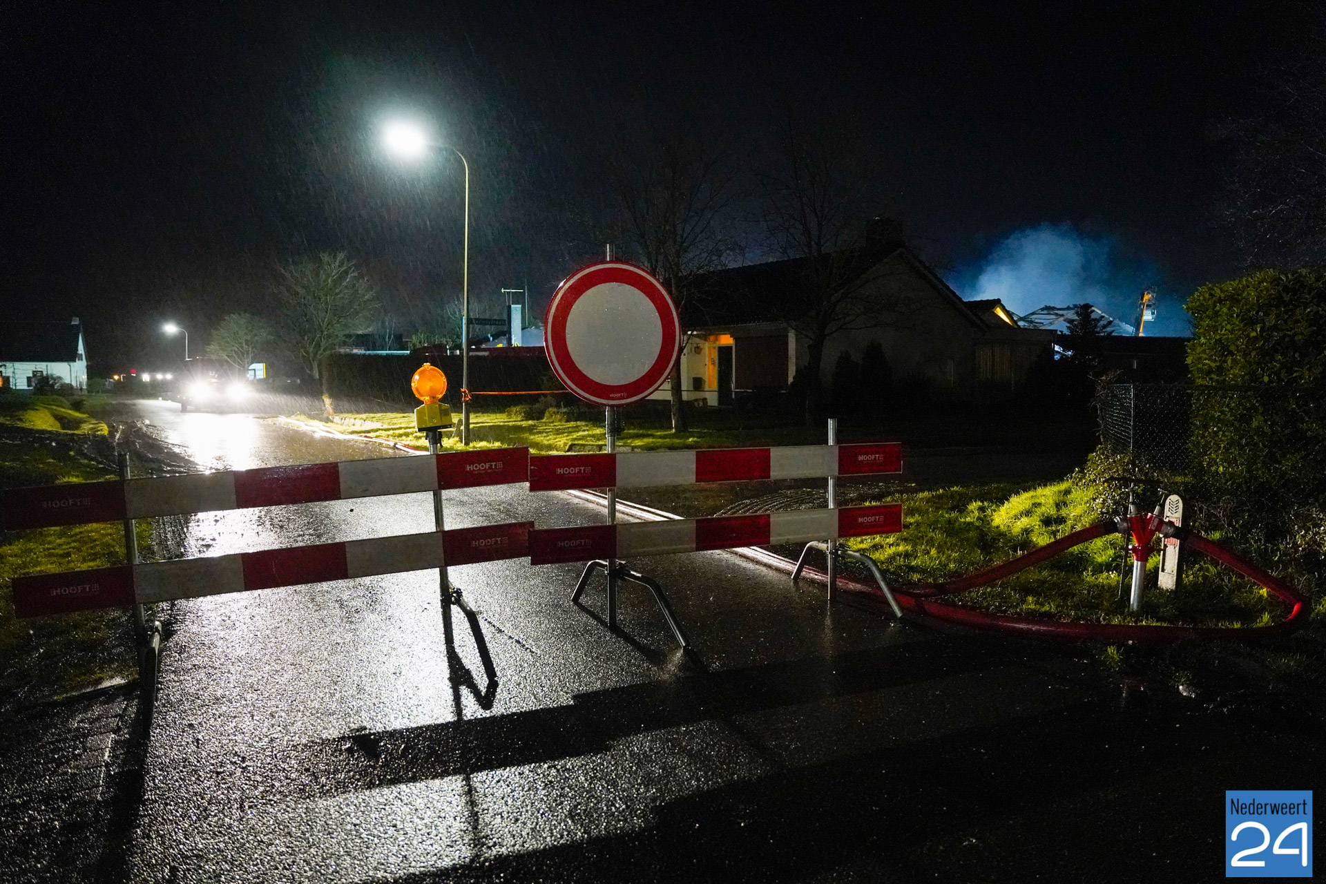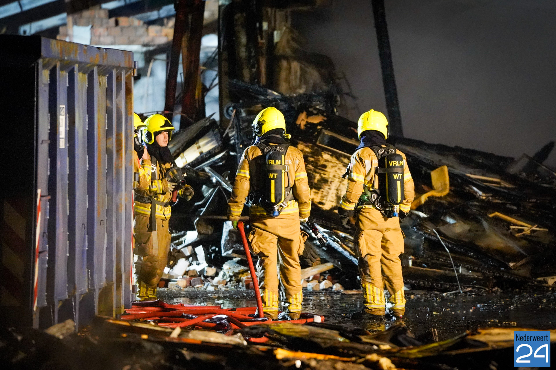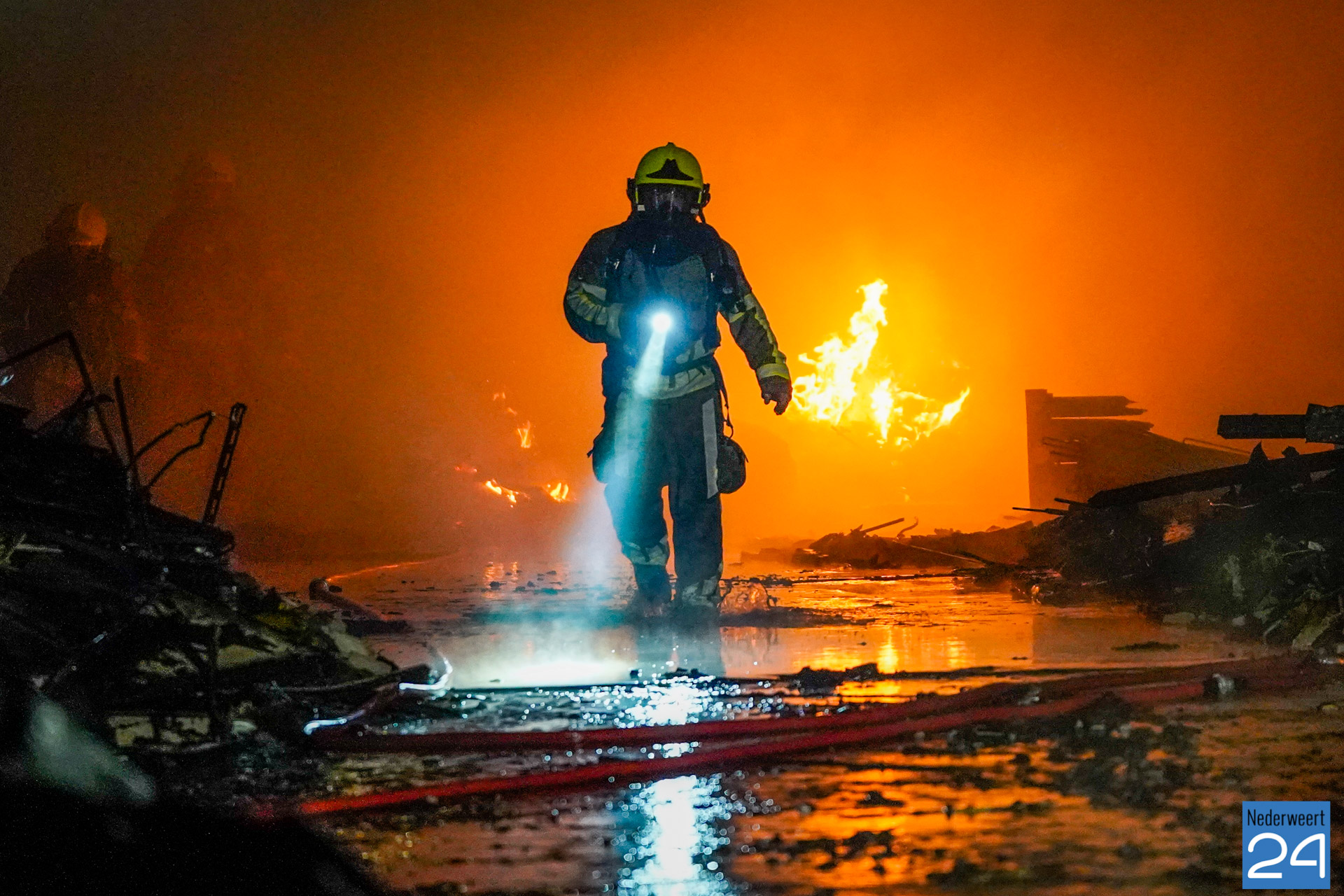 De brandweer is nog altijd bezig met het nablussen van de grote brand aan de Bloemerstraat in Nederweert.