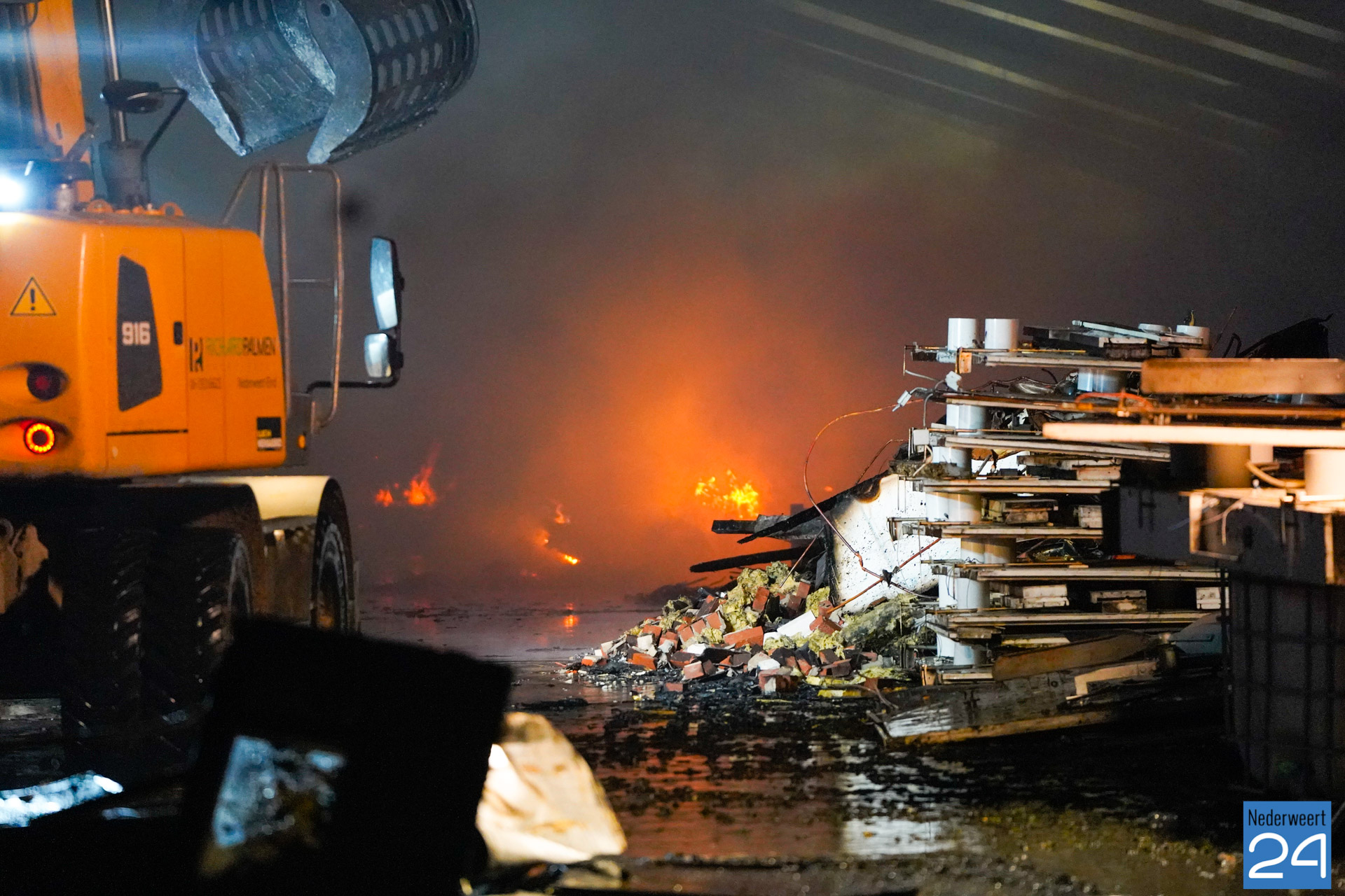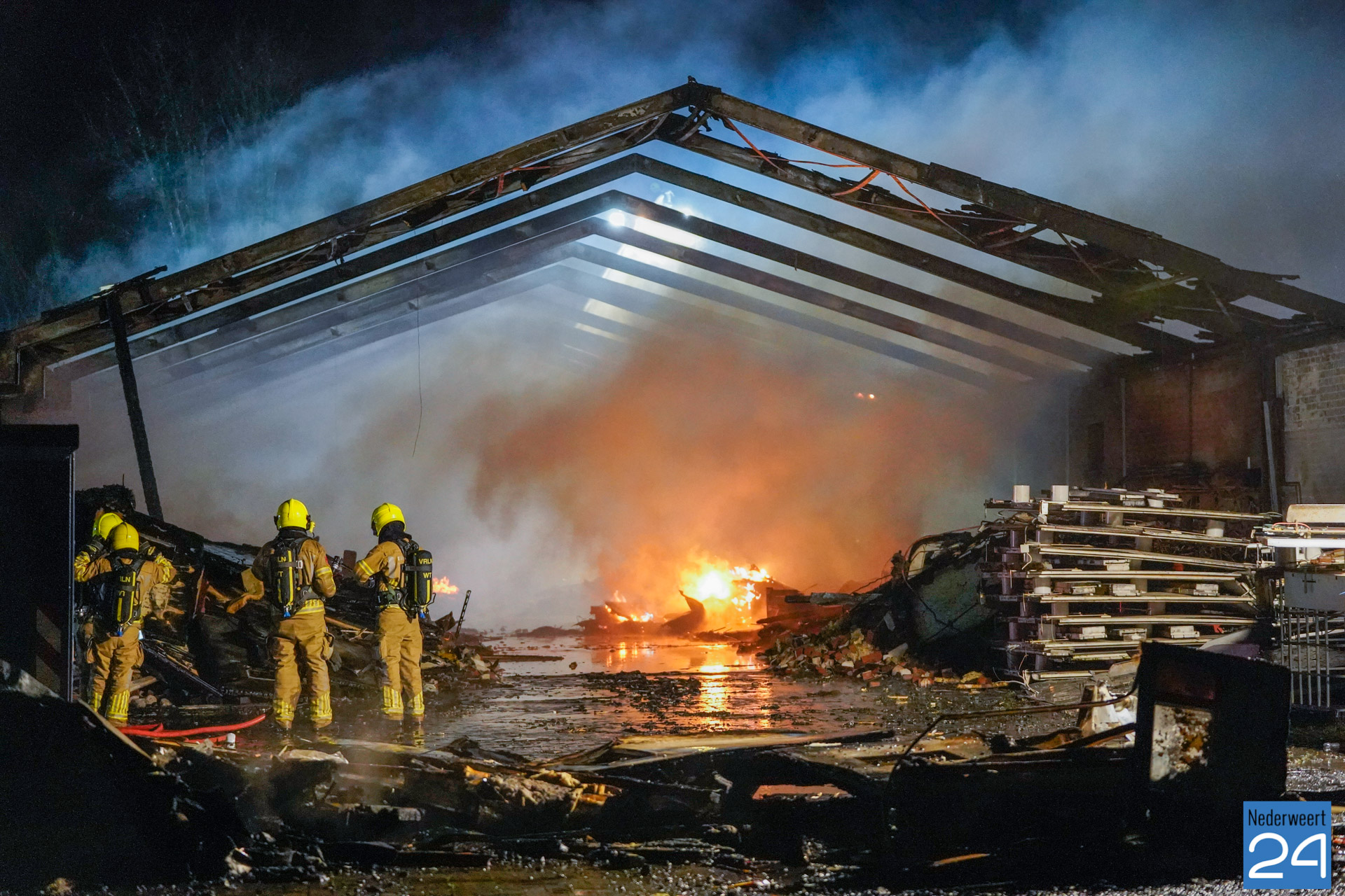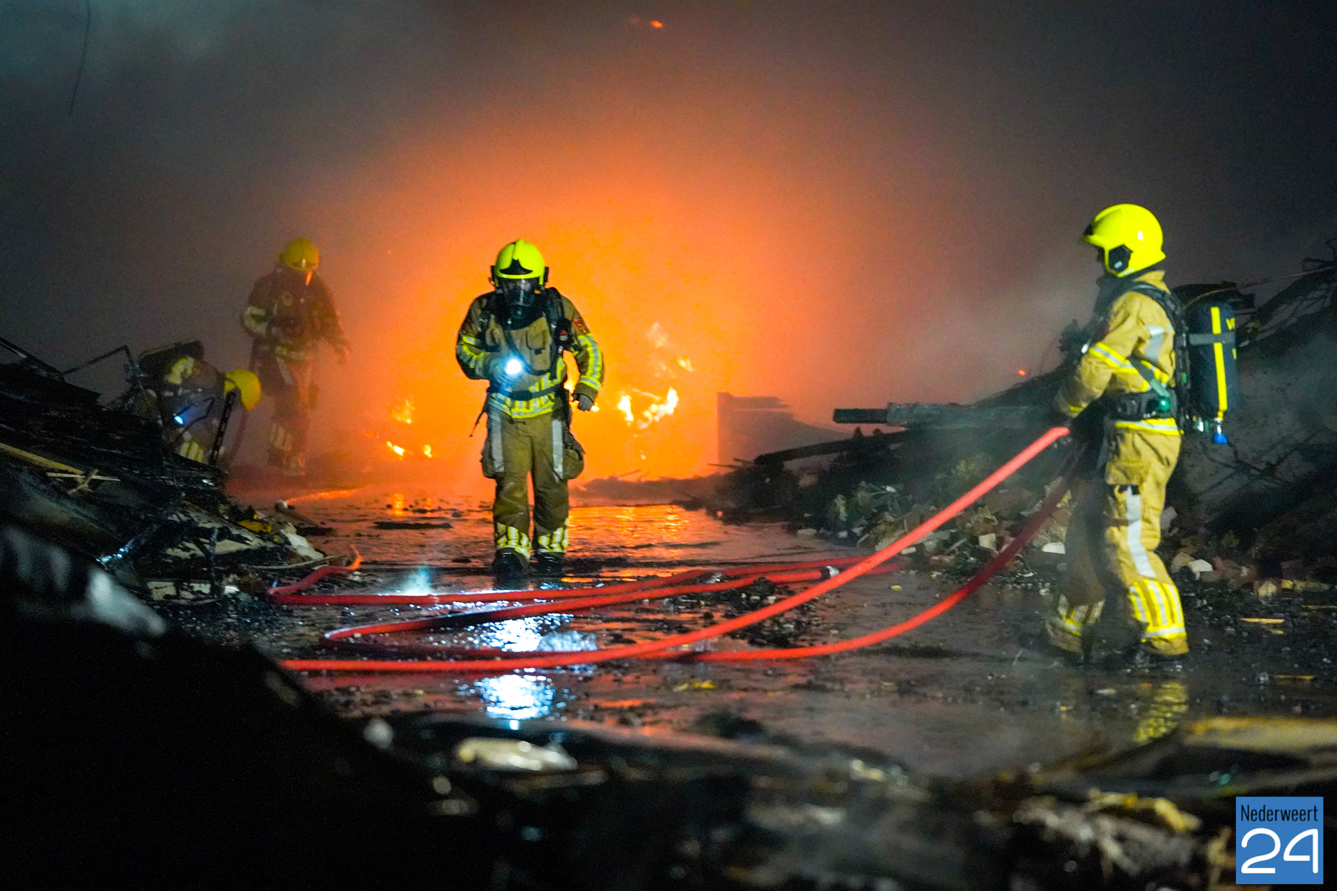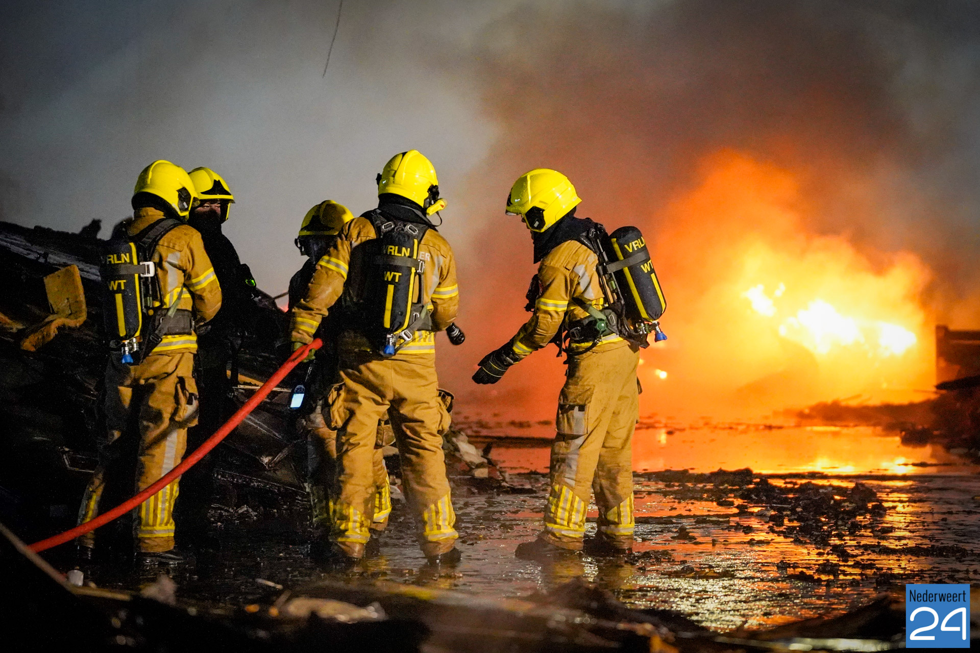 De brandweer is nog altijd bezig met het nablussen van de grote brand aan de Bloemerstraat in Nederweert.