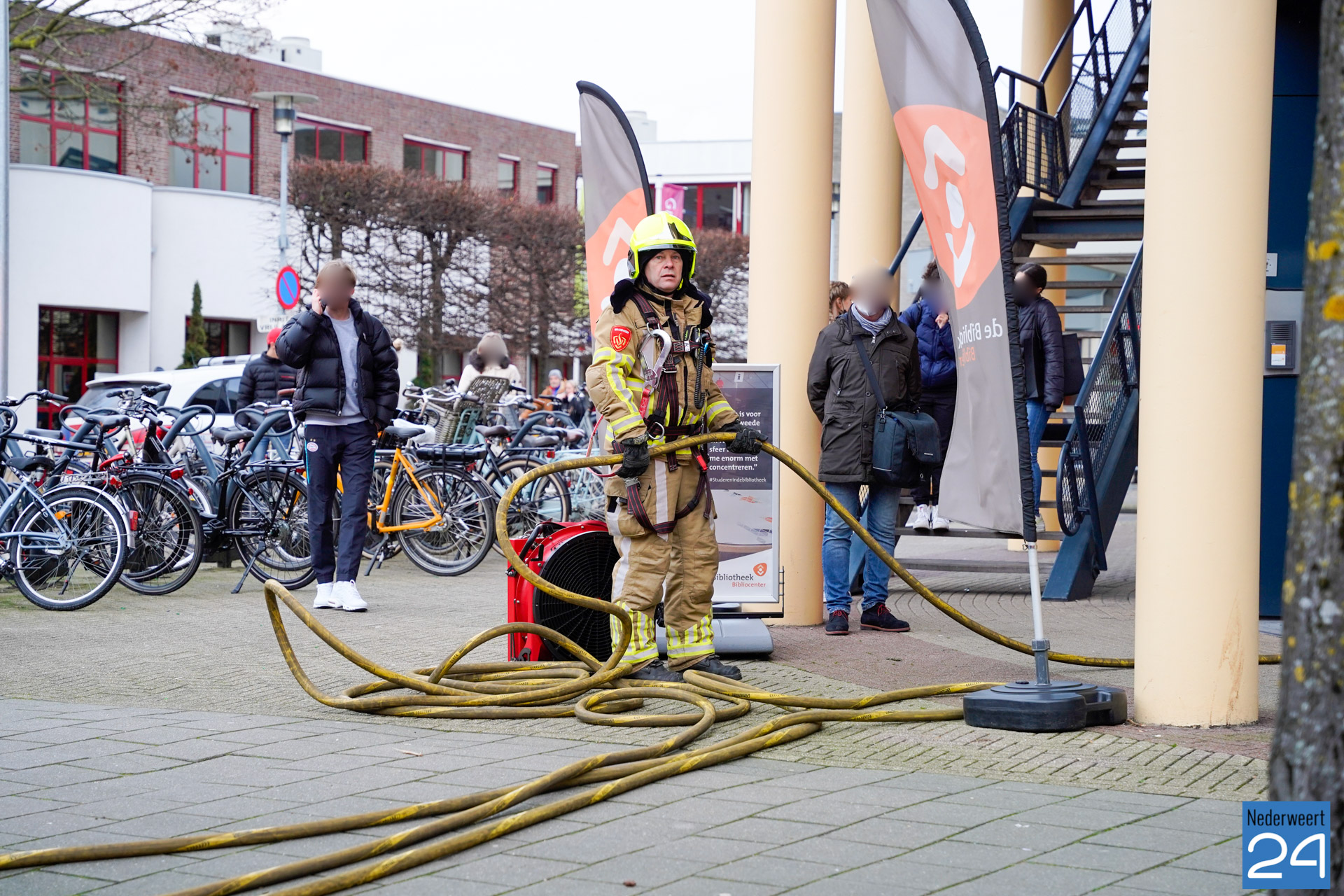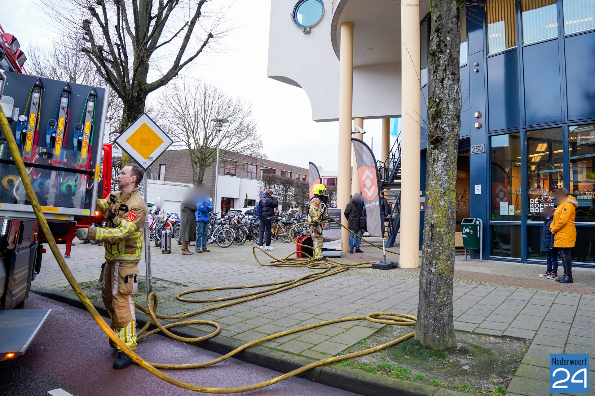Een aanwezige BHV’er had het vuur snel onder controle. Het gebouw is ontruimd. Inmiddels is de situatie weer veilig.