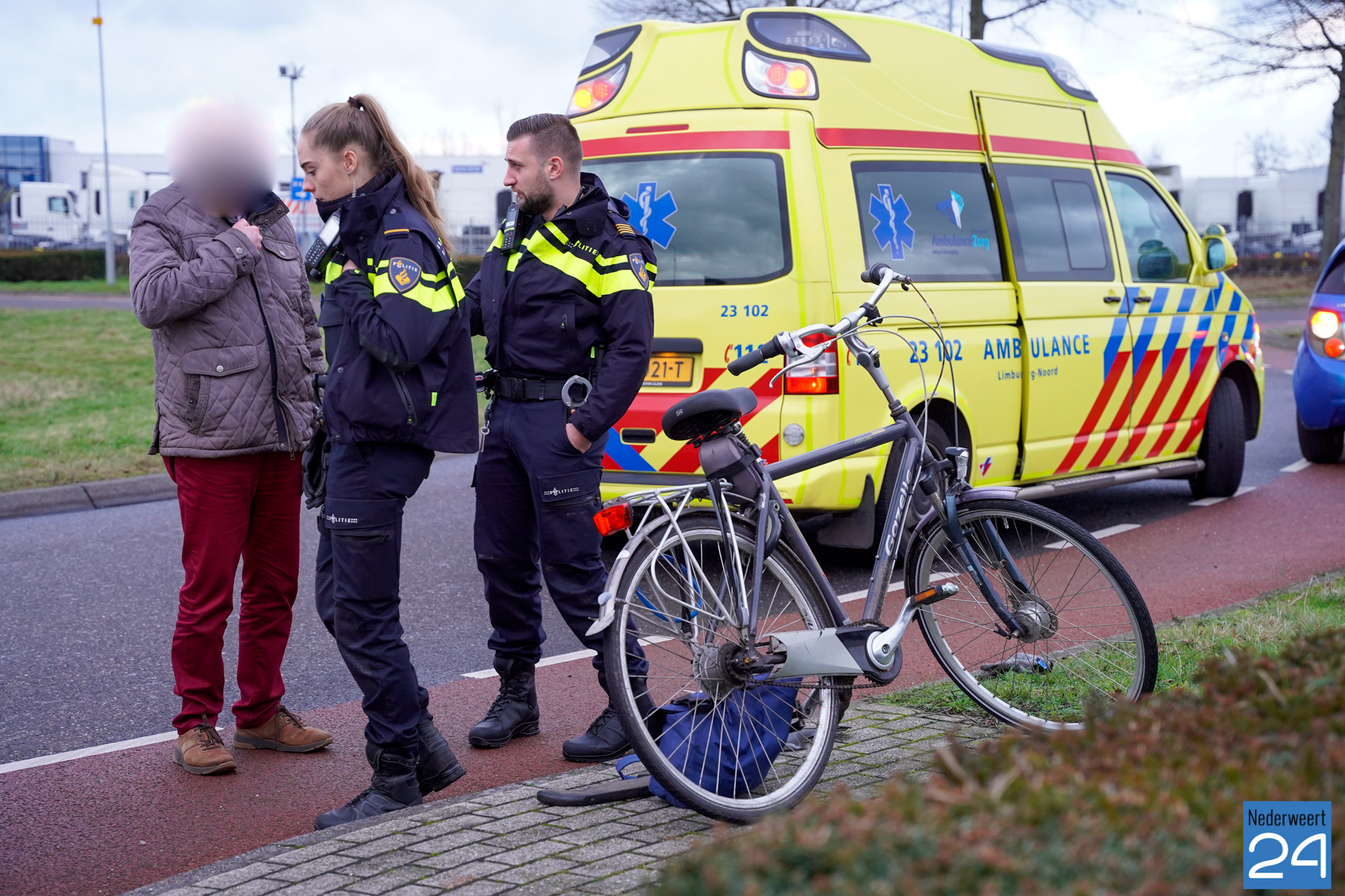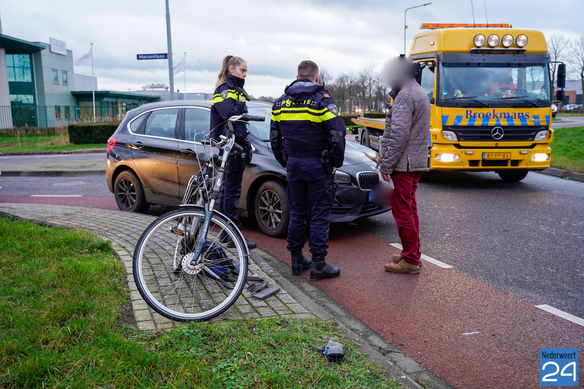Vrijdagmiddag is een fietser aangereden door een personenauto. Dat gebeurde op de rotonde aan de Marconilaan op industrieterrein Kampershoek in Weert.