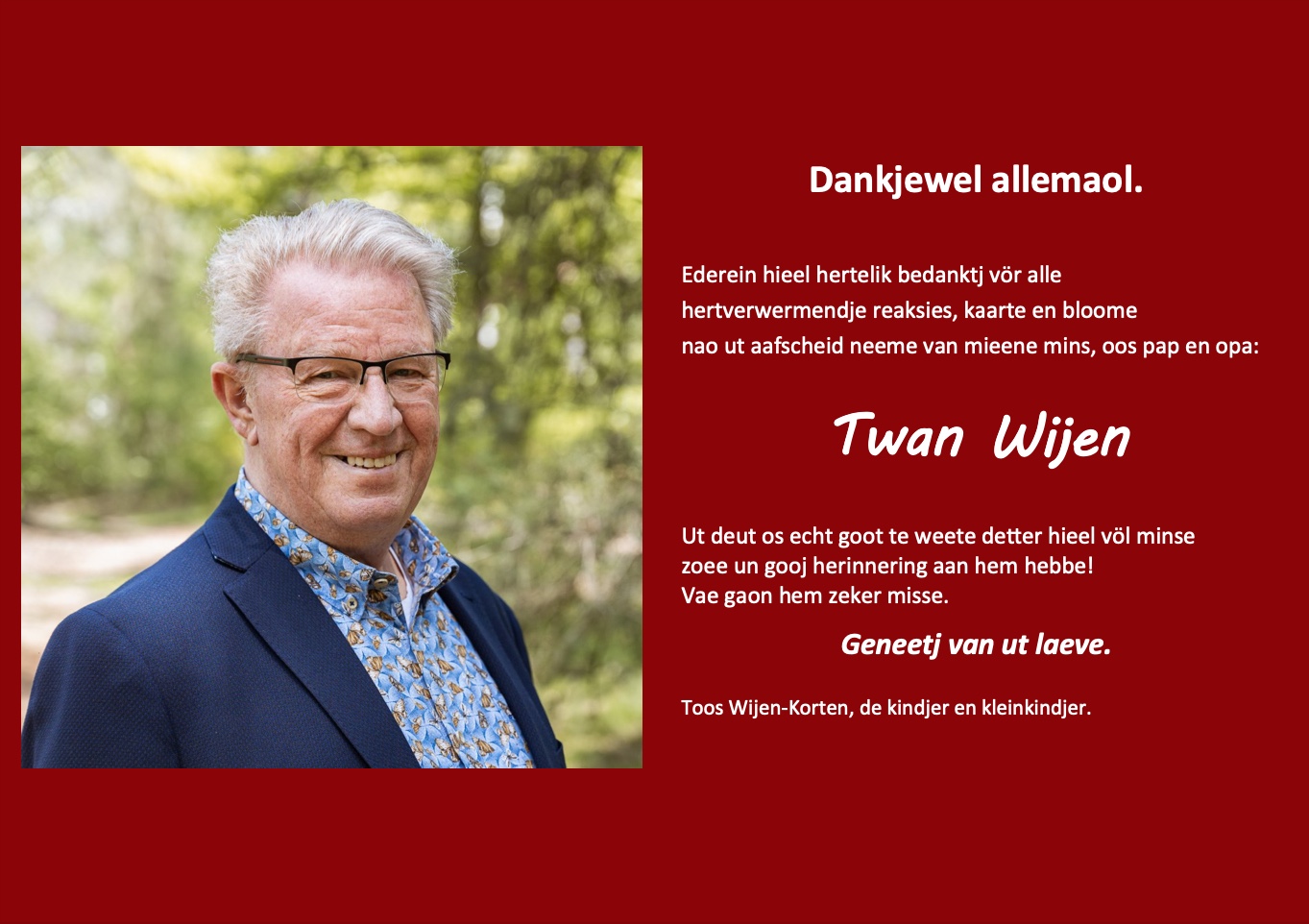 Detj uch allemaol good moog gaon, ‘t zal een gemis zeen zonger ‘m…