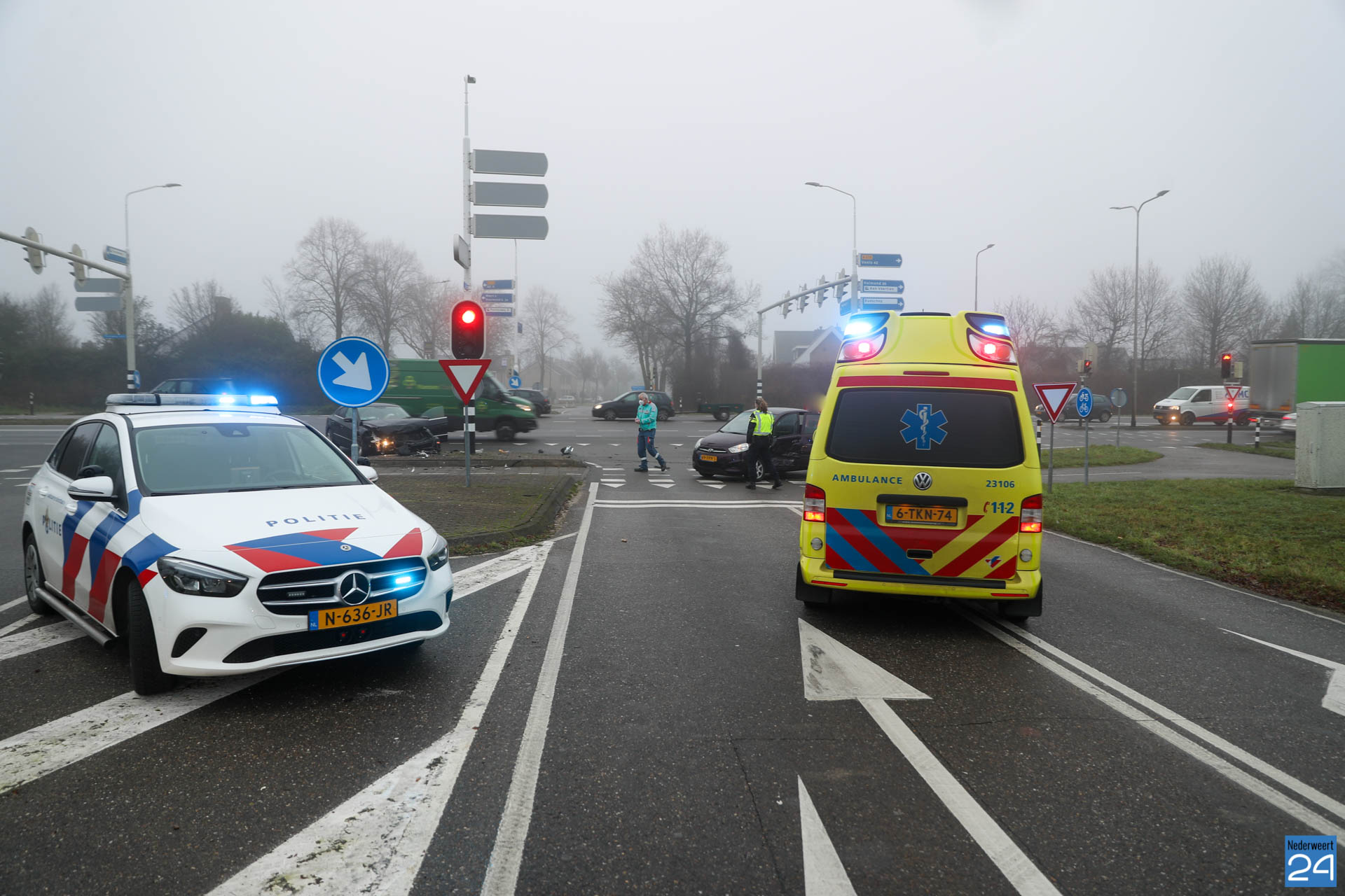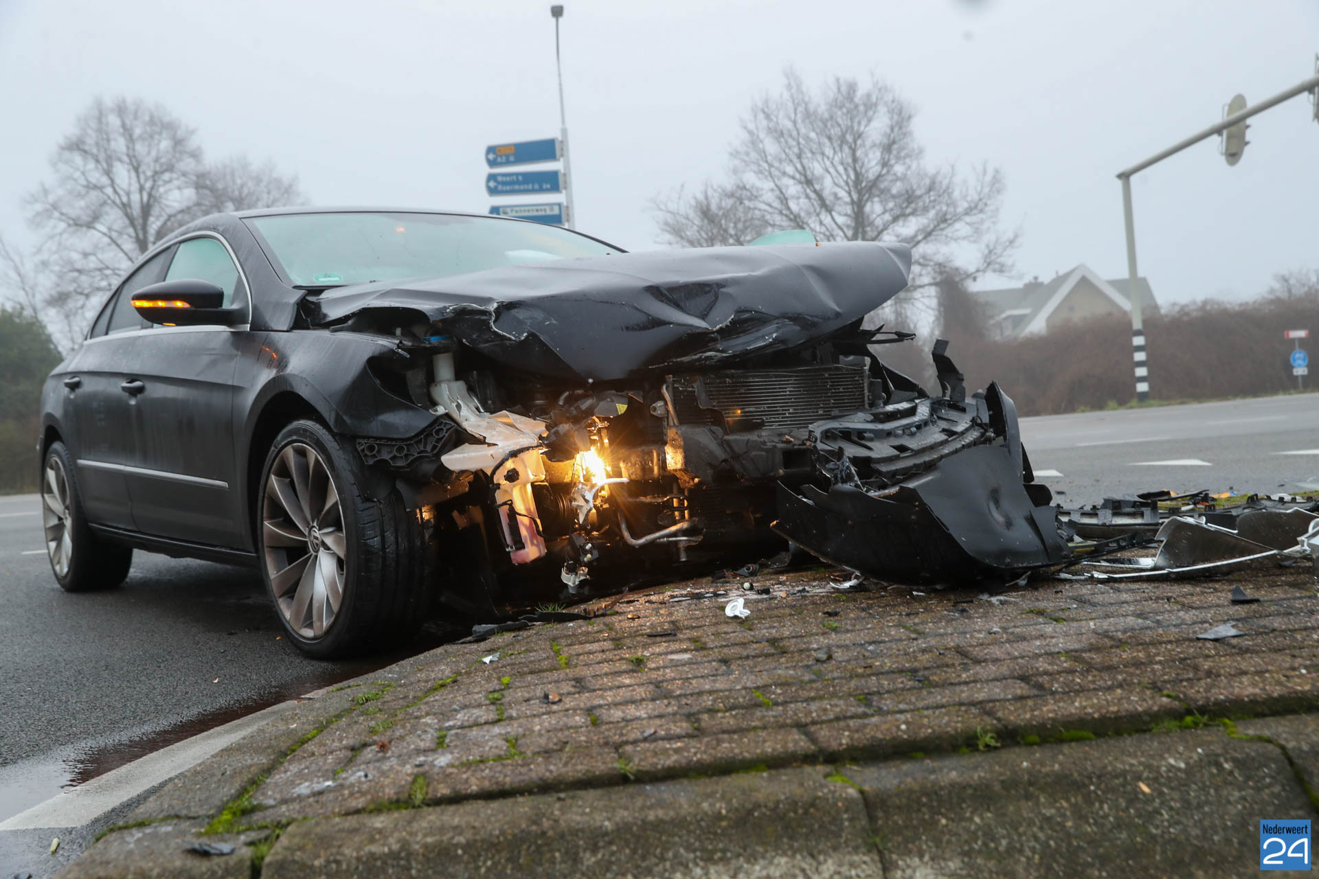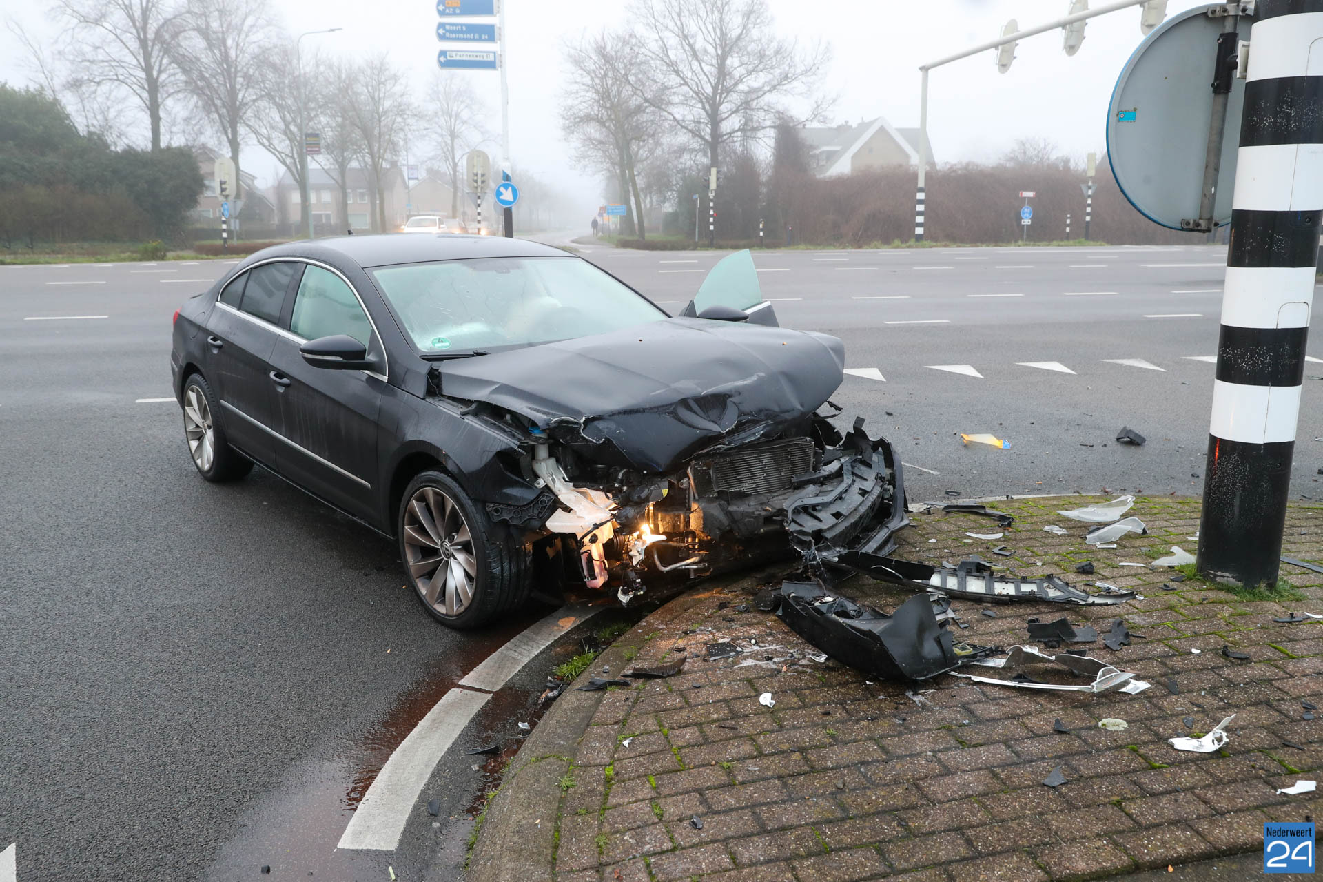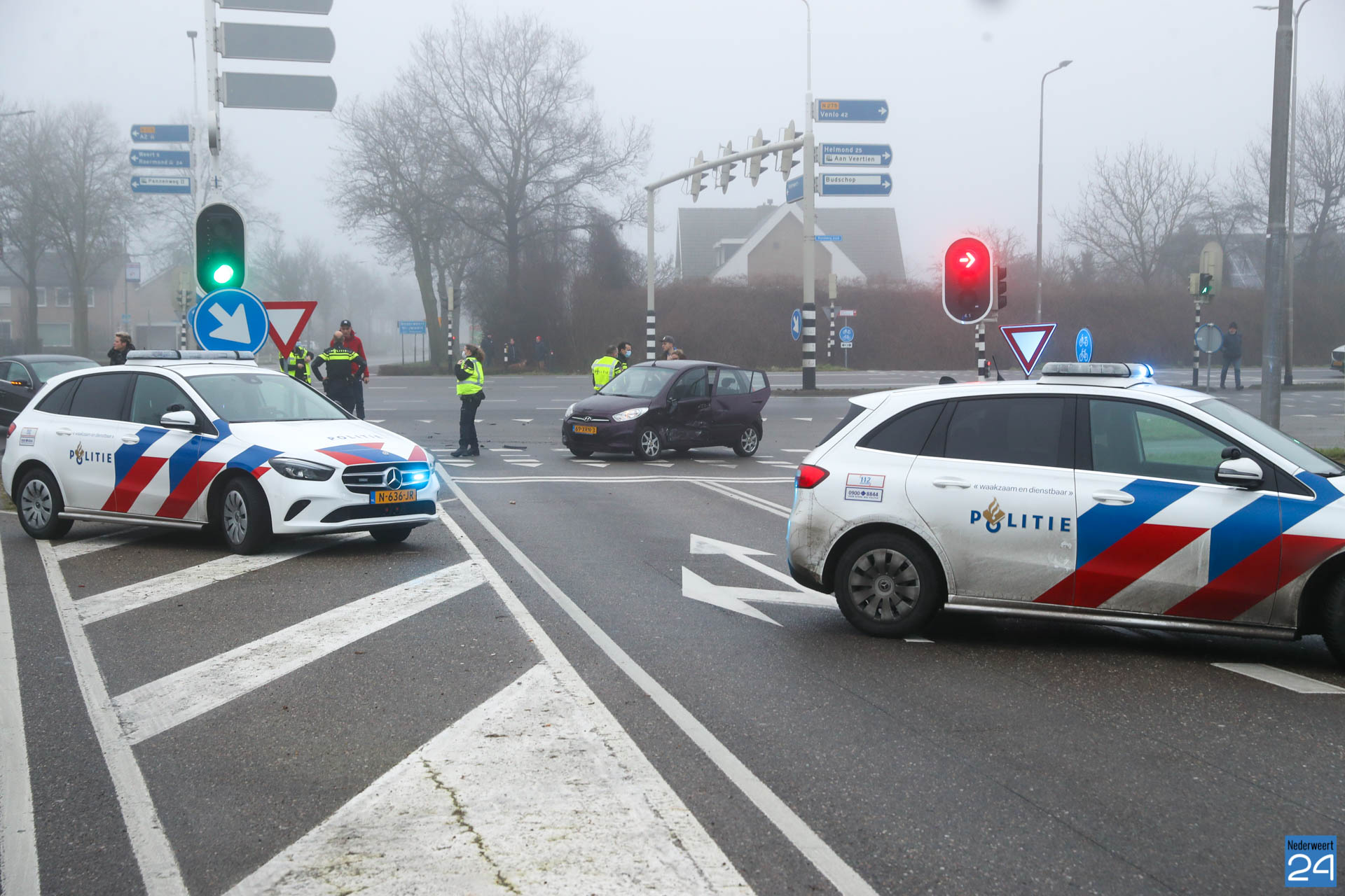 Even voor negen uur naderden twee personenauto’s de kruising met verkeerslichten. Een personenauto kwam vanuit de Lindenstraat en wilde de kruising oversteken naar de Staterweg op industrieterrein Pannenweg Nederweert. De andere personenauto reed op de Randweg Zuid vanuit Weert richting Nederweert. Waarschijnlijk heeft één van de twee het rode licht over het hoofd gezien met een flinke botsing tot gevolg.