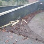 “Enkele pogingen om het groengedeelte aan de achterzijde van het complex aantrekkelijk te maken, worden blijkbaar niet gewaardeerd“, aldus een van de bewoners. “Eerst zijn de kort ervoor geplaatste paaltjes vernield en daarna drie zeer zware betonnen palen. Hiervoor zijn beslist enkele personen nodig.”