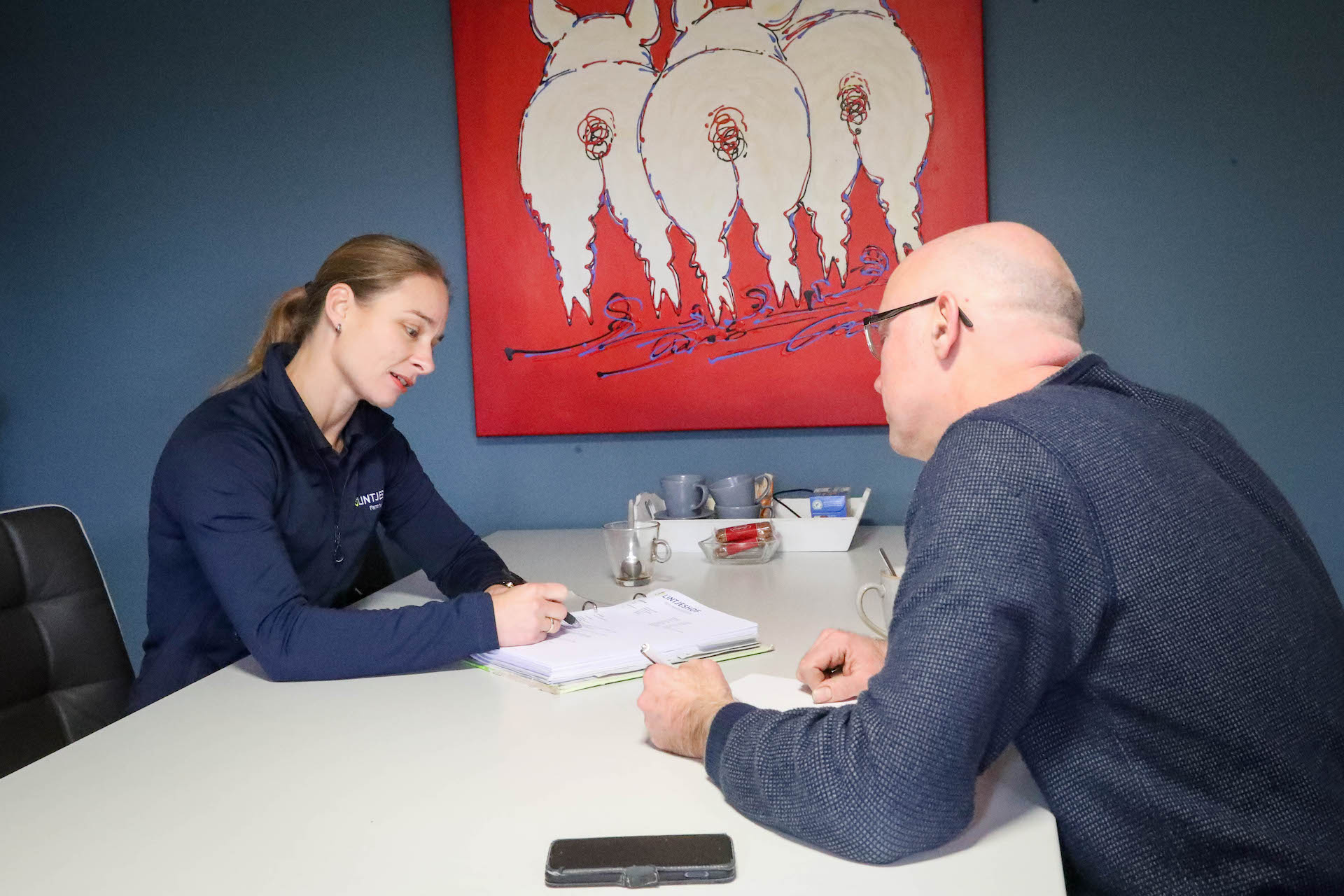 Na een uitgebreide ronde door de stal bespreekt zij haar bevindingen met de ondernemer. Ook de voerleverancier en de fokkerijadviseur worden bij dit overleg betrokken omdat ook zij een belangrijke rol spelen in de ziektepreventie. “We kijken integraal naar de gezondheid van de dieren zodat Harm de bedrijfsvoering waar nodig kan bijsturen”, vertelt de dierenarts.