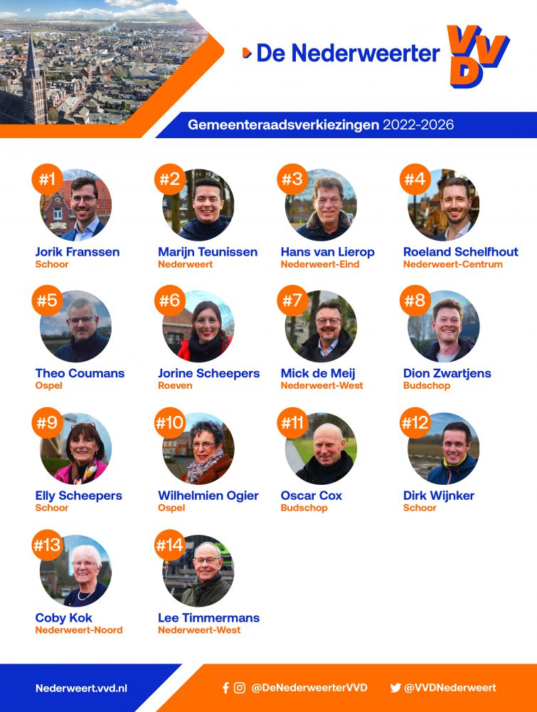 Kandidatenlijst Nederweerter VVD gemeenteraadsverkiezingen 2022: