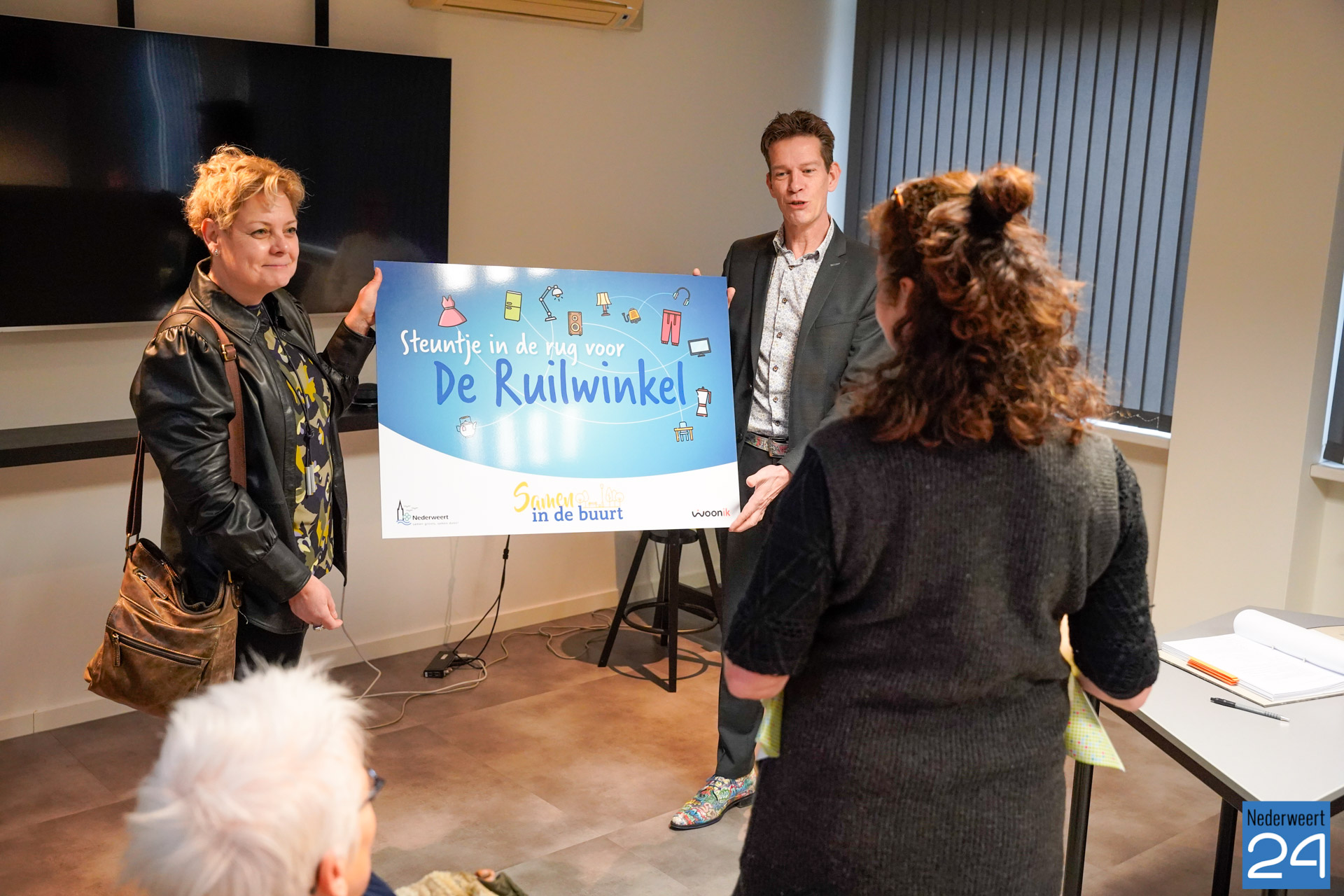 De werkgroep, die bestaat uit vrijwilligers, ontving 24 januari symbolisch een “steuntje in de rug” uit handen van Paul Sebregts, directeur-bestuurder bij Woonik, en wethouder Carla Dieteren. De gemeente stelt een startsubsidie van € 3.000,- beschikbaar en Woonik biedt twee jaar lang kosteloos de grote werkplaats aan achter het kantoor in Budschop. Paul Sebregts: “We zijn verheugd dat we samen met de gemeente dit prachtige initiatief op weg mogen helpen en ik hoop dat veel inwoners er gebruik van zullen maken”.
