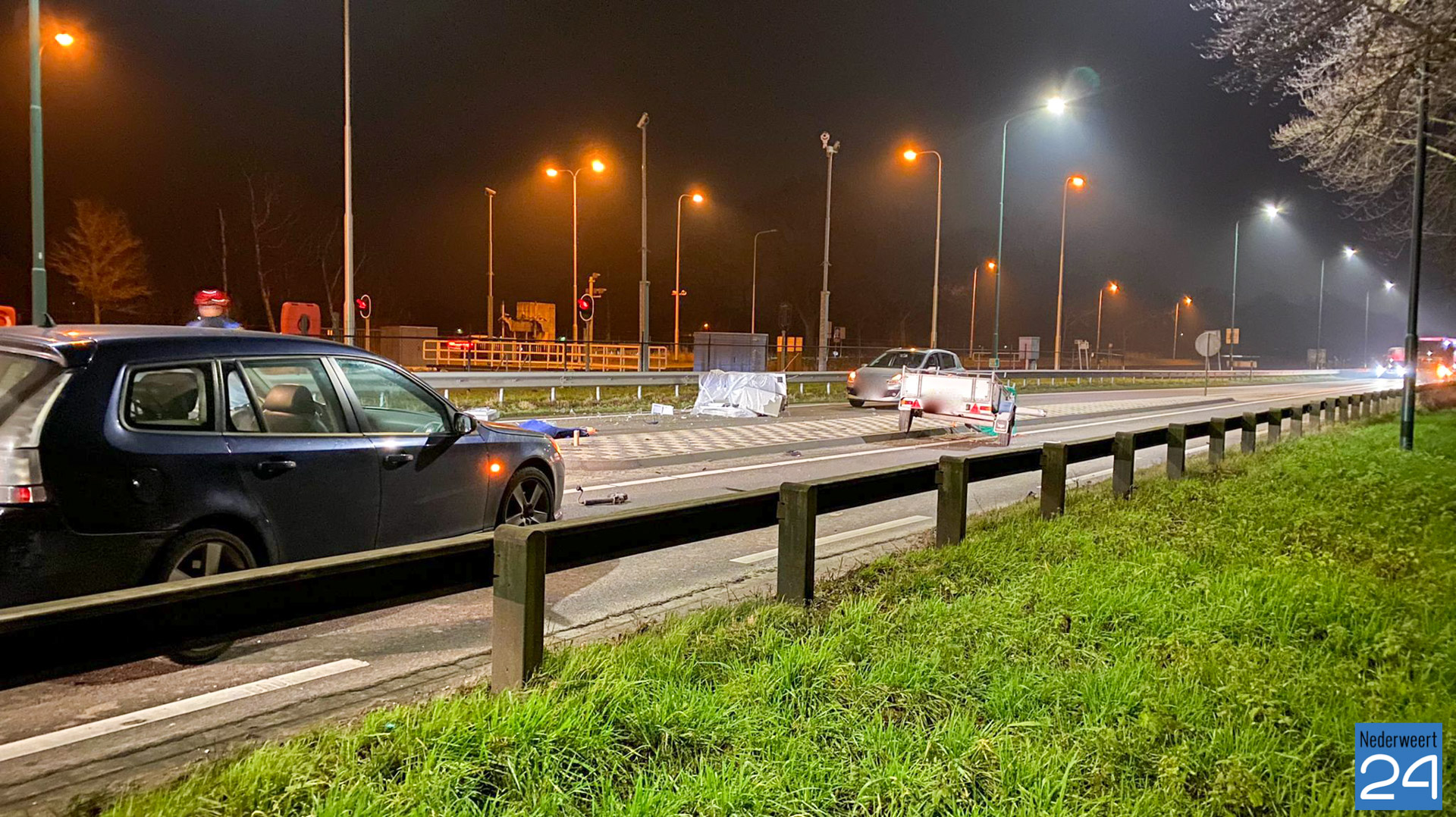 De vrouw is gestabiliseerd door het ambulancepersoneel en overgebracht naar het ziekenhuis. De weg is voorlopig afgesloten voor het verkeer.