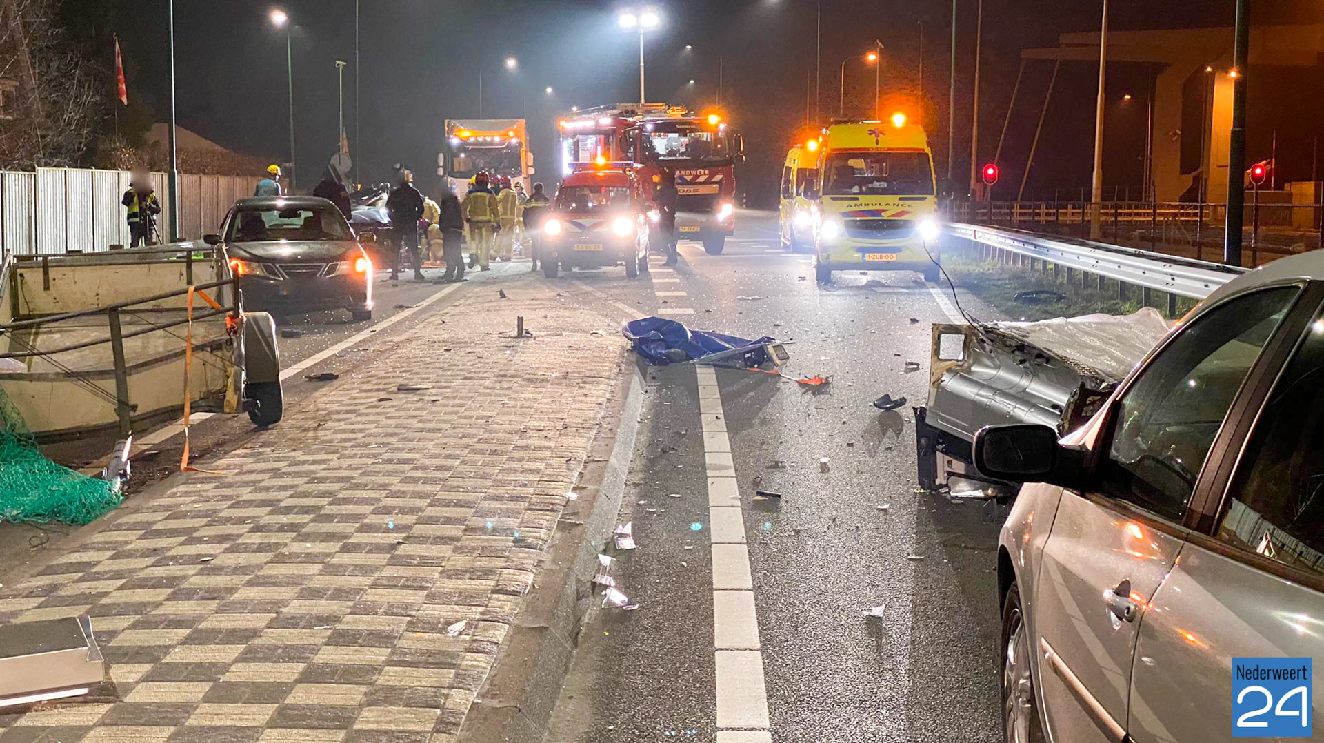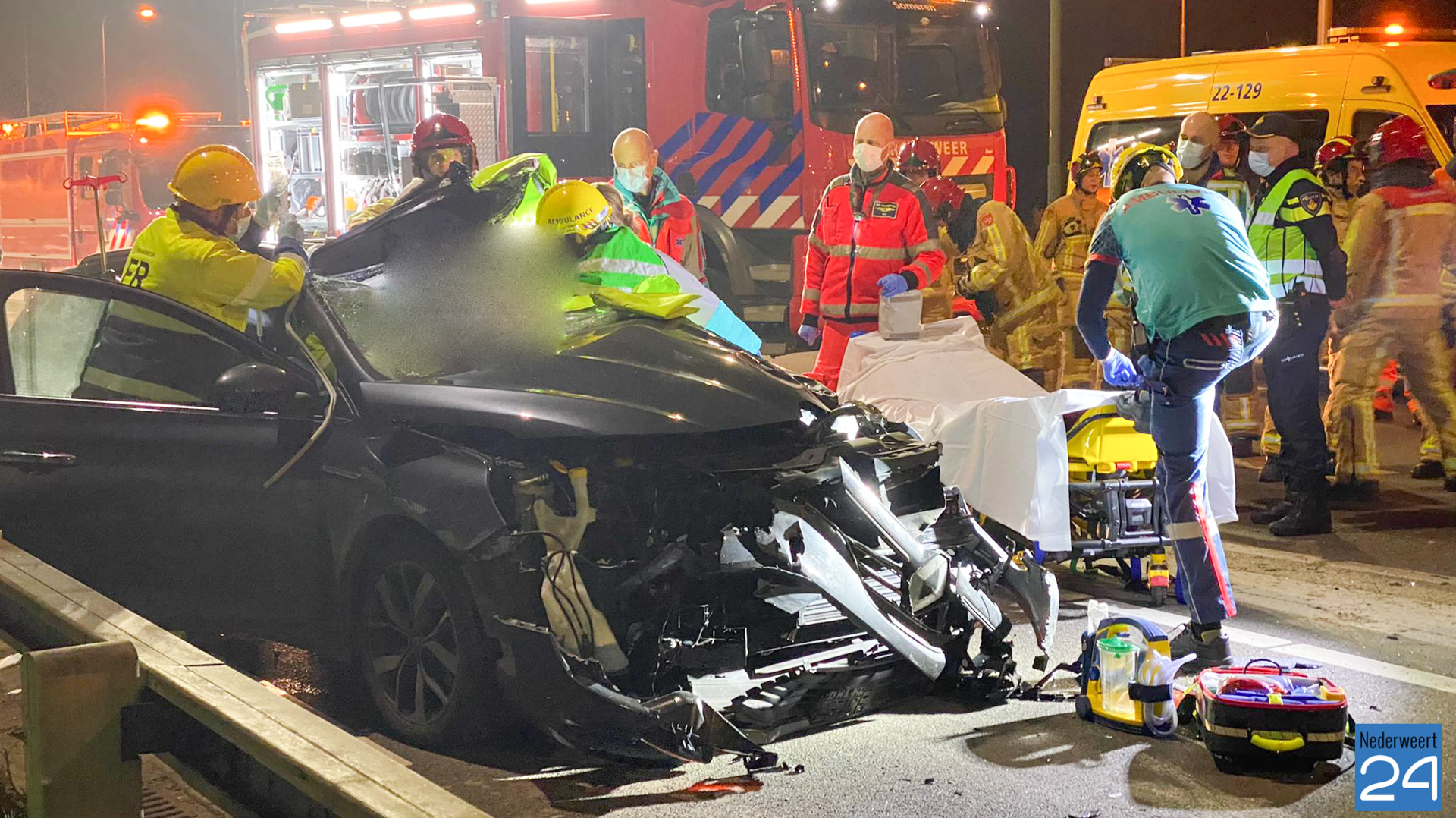 Een persoon raakte bekneld in het voertuig en moest door de brandweer worden bevrijd. Ook een traumahelikopter kwam ter plaatse. Het voertuig met de aanhanger reed volgens de politie vanuit Someren richting Nederweert. De auto waarin de vrouw bekneld zat reed in tegengestelde richting. Wat er precies gebeurd is wordt onderzocht. Het is niet duidelijk of de aanhanger is losgeschoten of dat de lading van de aanhanger is gevallen.