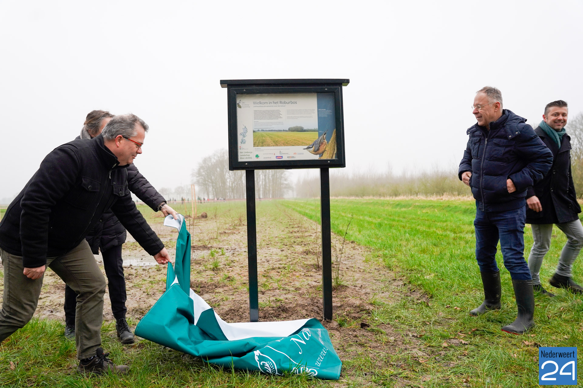 Na een woord van welkom door de directeur van Stichting het Limburgs Landschap, Wilfred Alblas, en districtsbeheerder, Jos Berends gingen de handen uit de mouwen en de schoppen in de grond. Met de onthulling van een informatiebord werd de aanplant van het Roburbos symbolisch afgerond. Wethouder Ria Stienen en gedeputeerde Geert Gabriëls hielpen mee met het plaatsen van de laatste bomen. Ze werden daarbij geholpen door enkele sponsoren en hun familie.