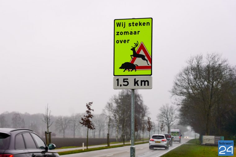 Op deze borden staan afbeeldingen van een ree en een wild zwijn. De reden voor de plaatsing is dat er regelmatig wild wordt aangereden op deze weg. Een samenwerking tussen de Gemeente Nederweert en Wildbeheerseenheid “de Waterbloem” heeft er toe geleid om automobilisten hiervoor te waarschuwen en de snelheid aan te passen met name in de ochtenduren en de avonduren wanneer het donker is, dit komt ook de verkeersveiligheid zeker ten goede.