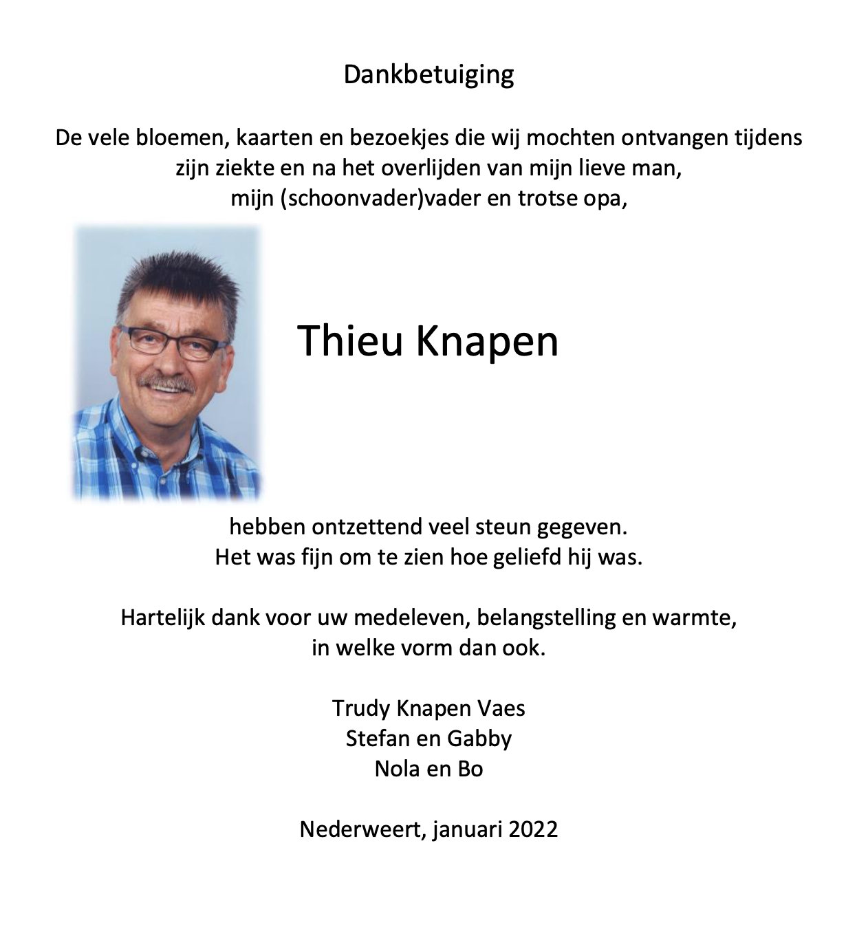 Laat, maar met evenveel verwondering kennis genomen van het overlijden van Thieu Knapen.