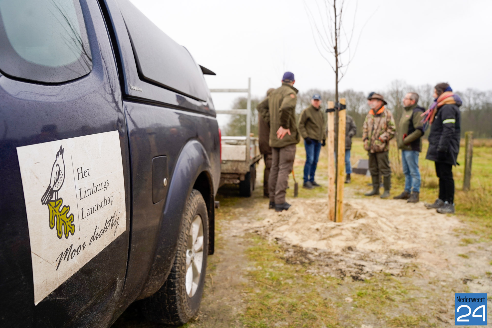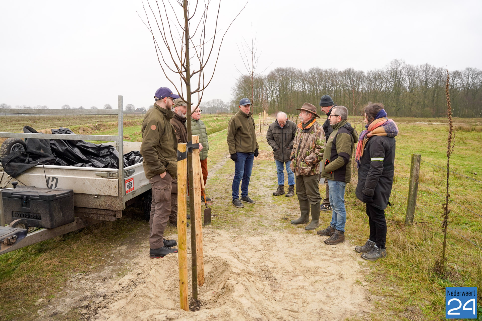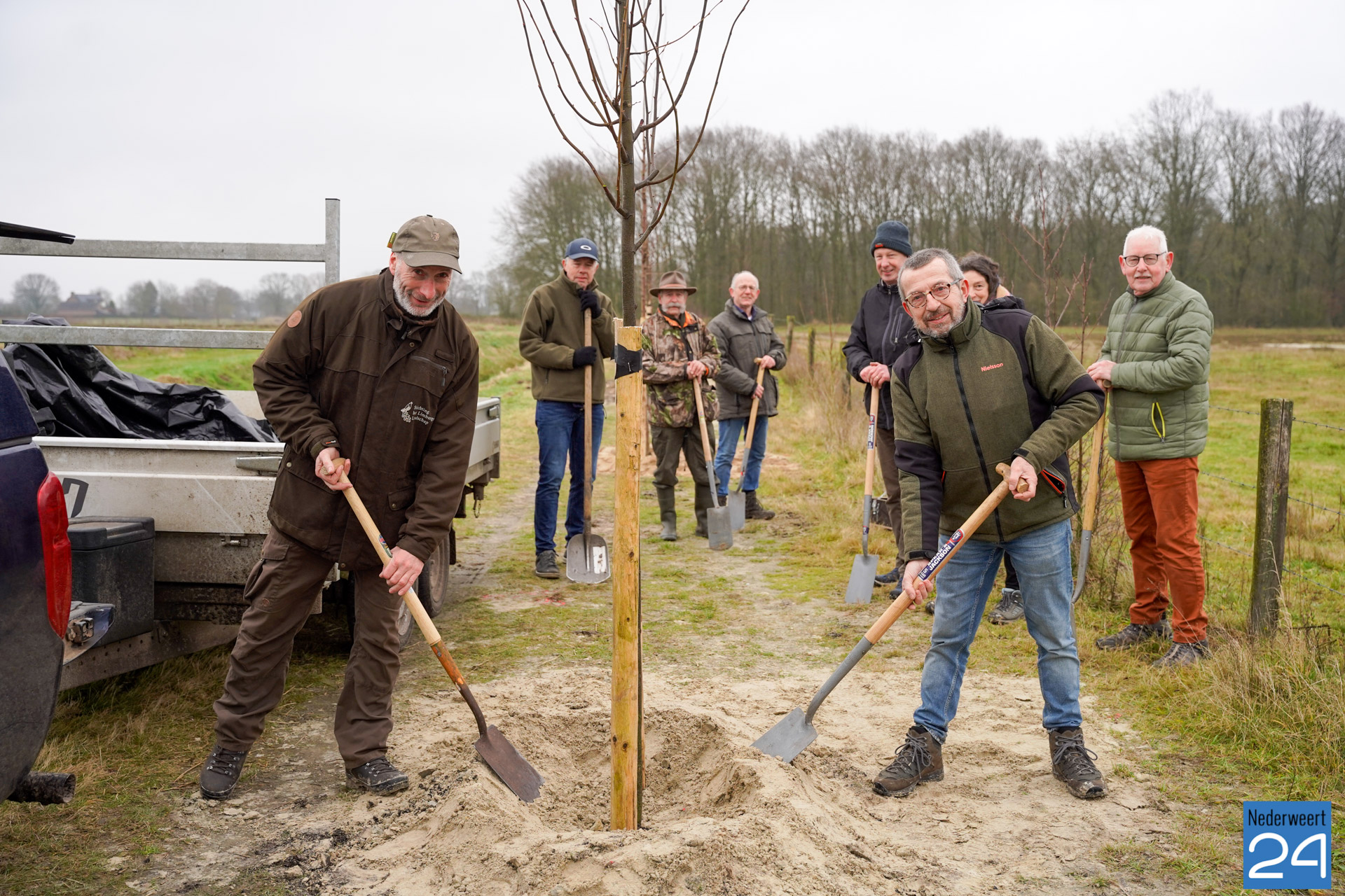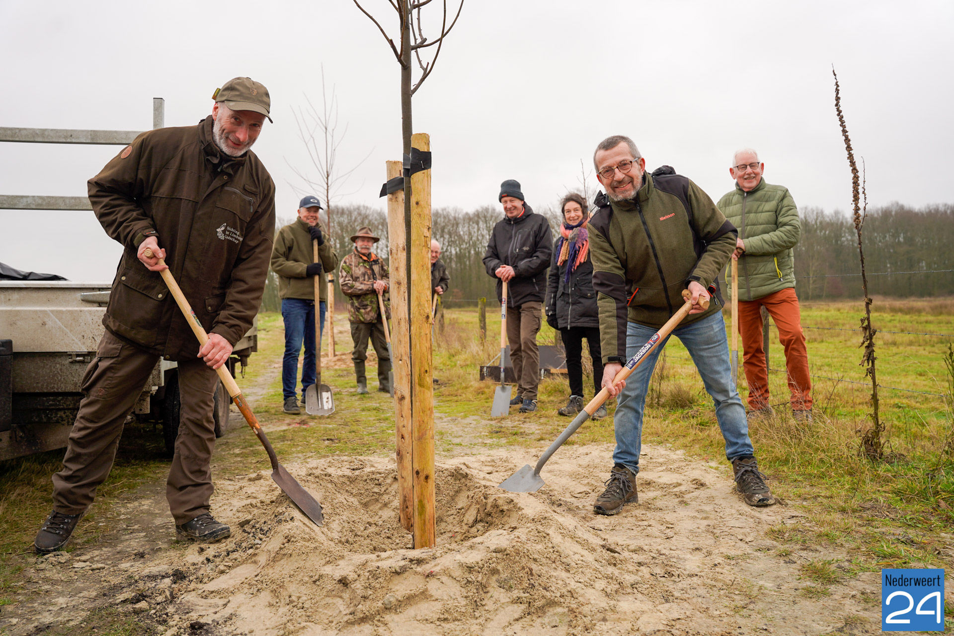 De Vogelwerkgroep Nederweert schonk zaterdag vijftien bomen aan de jubilerende Stichting het Limburgs Landschap. Dit gebeurde nabij de Visdijk bij Nederweert Eind.