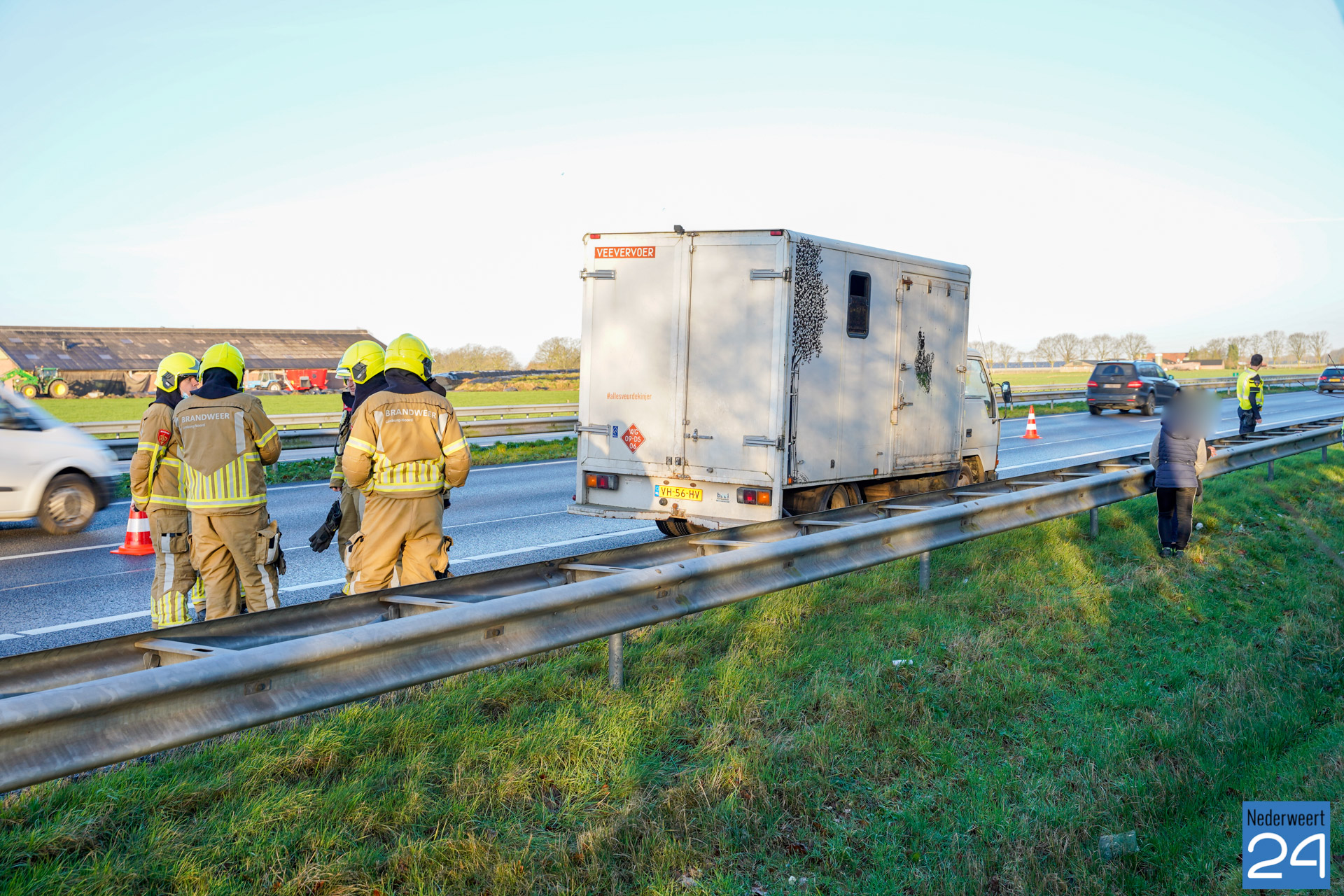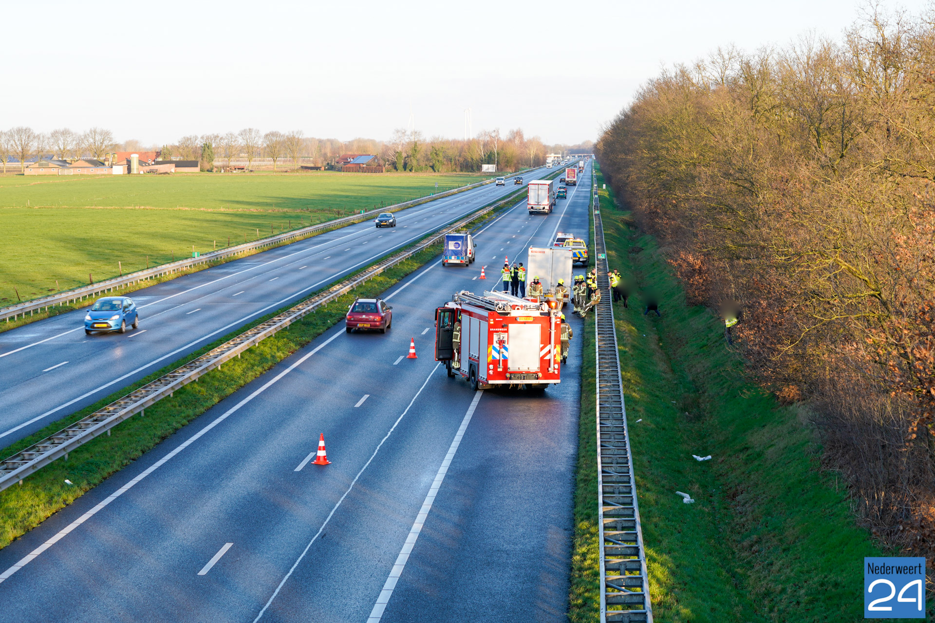 Het incident gebeurde in de rijrichting van Maastricht naar Nederweert. De paardenwagen, geladen met twee paarden, stond met pech op de vluchtstrook. Het voertuig werd, na overleg, door een berger naar de carpoolplaats in Kelpen-Oler gesleept, waar de paarden konden worden overgeladen naar een andere paardenwagen.