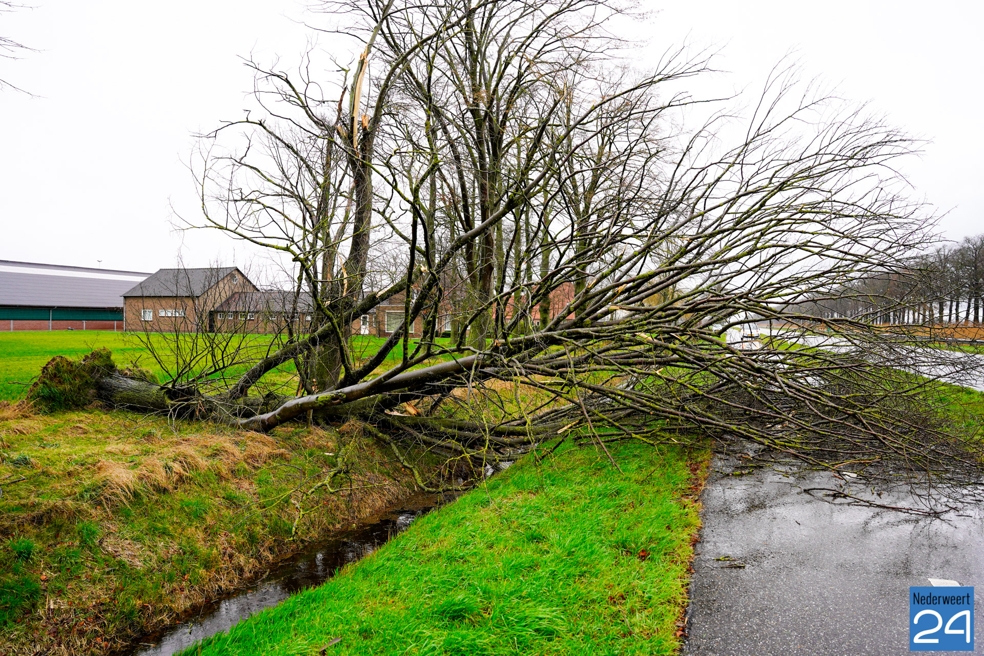 De harde wind heeft zondagmiddag een boom omvergeduwd langs de N266 in Nederweert.