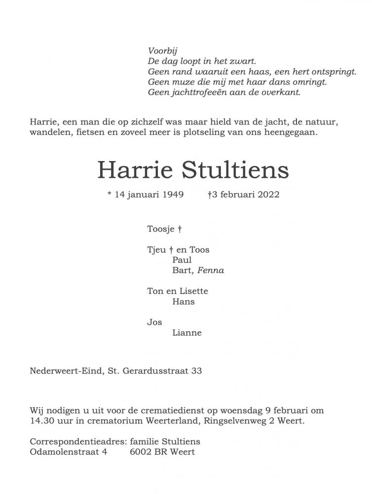 Gecondoleerd en heel veel sterkte gewenst met het plotselinge overlijden van jullie (schoon) broer en oom Harrie