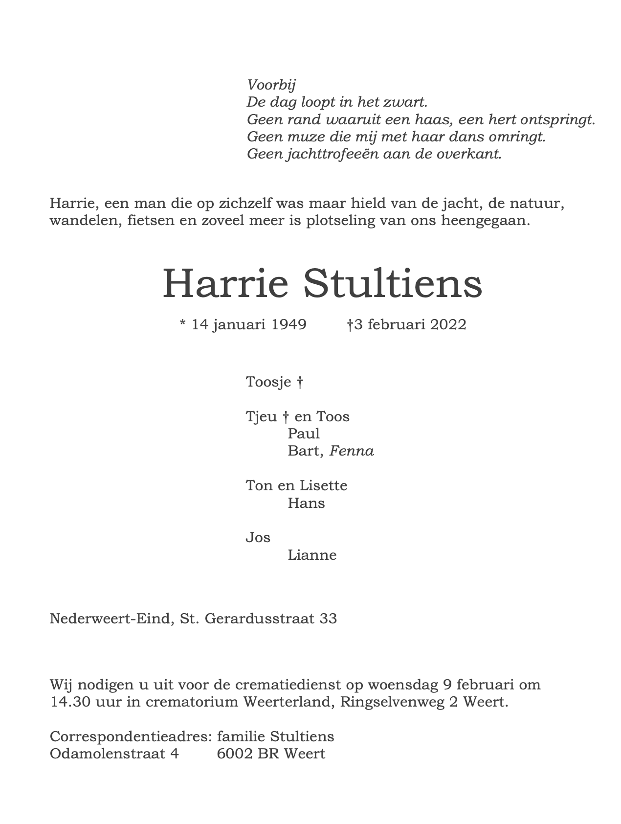 Gecondoleerd en heel veel sterkte gewenst met het plotselinge overlijden van jullie (schoon) broer en oom Harrie