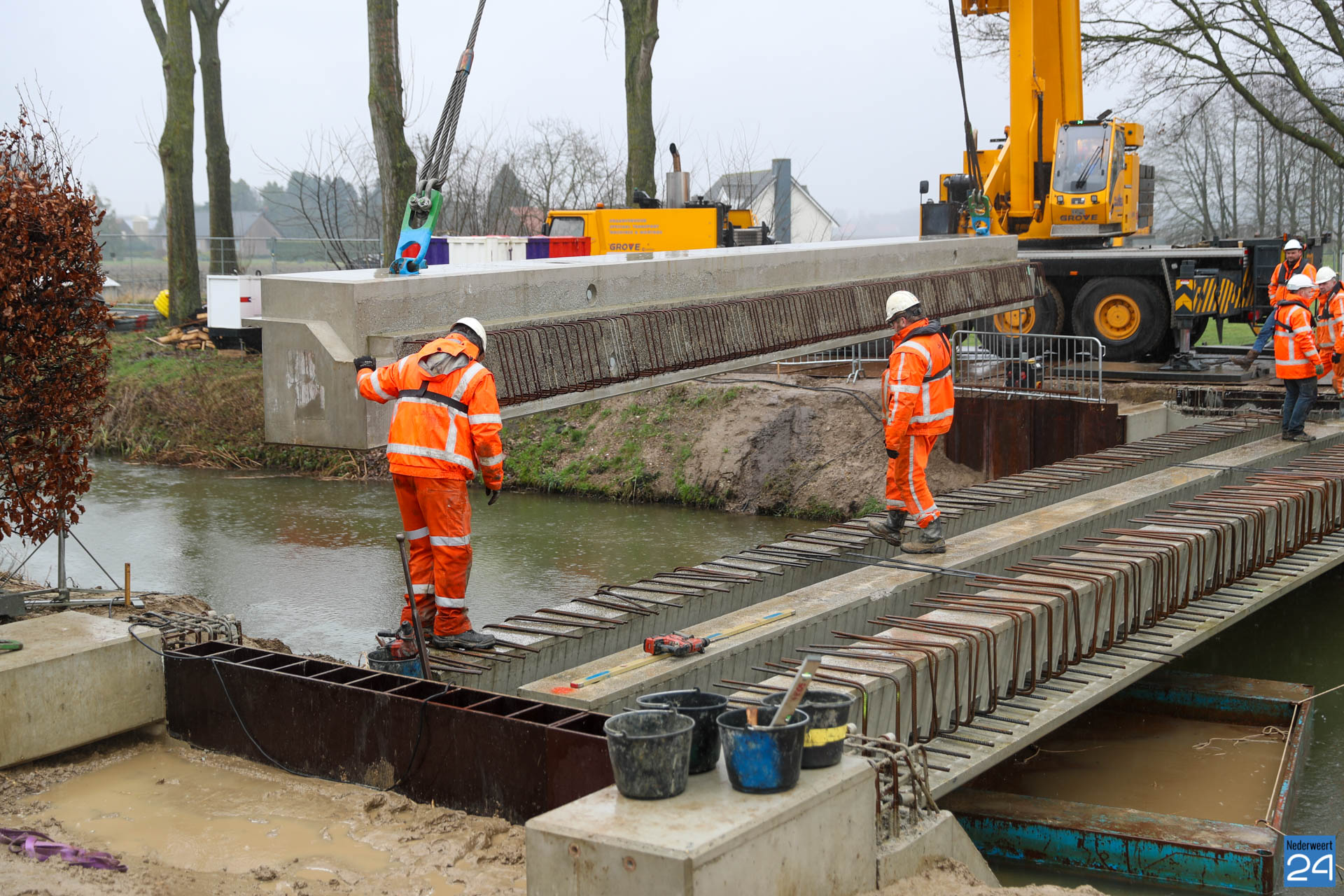 Donderdag is er weer een verbinding gemaakt over het voedingskanaal naar de Noordervaart bij Hulsen in Nederweert. Een grote kraan heeft de betonnen liggers geplaatst. Hiermee is een grote stap gezet in het realiseren van de nieuwe brug. Naar verwachting is de brug eind maart klaar.