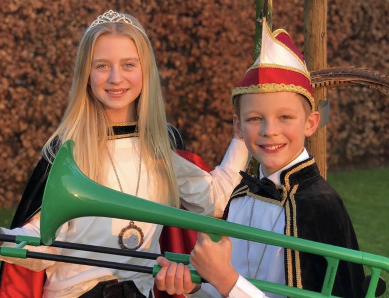 Het prinsenpaar zal de vastelaovendj op de Klimop voorgaan onder het devies: “Met Len en Florine van OBS de Klimop schuuve vae dit joar noa de top!