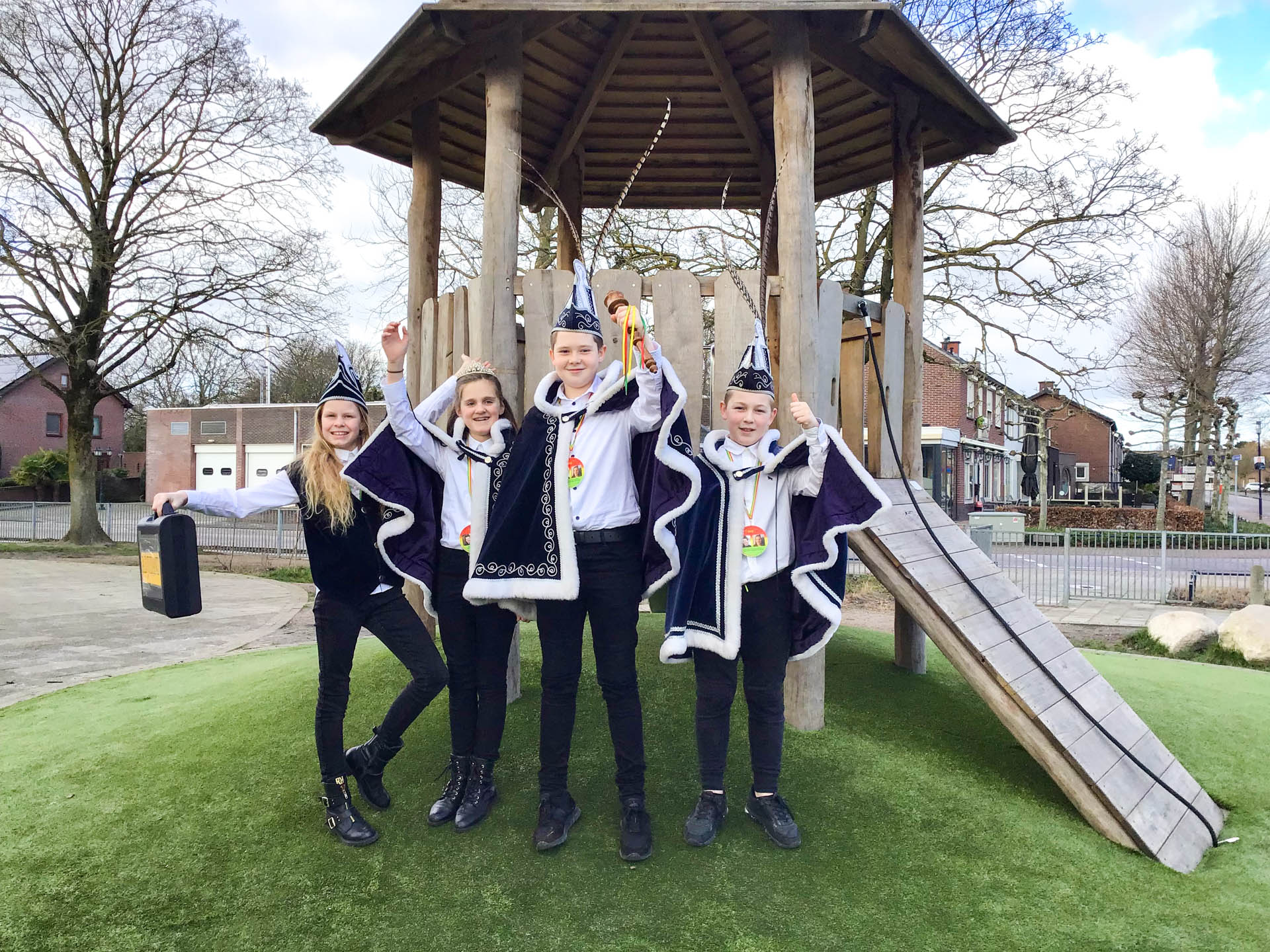 Graag stellen ze de prins en prinses van basisschool de Tweesprong aan jullie voor. Hier zijn ze dan, onze hoogheden: Prins Noud en Prinses Myrna. Zij regeren de komende twee weken over de school, geassisteerd door hun adjudante Janne en vorst Jan.