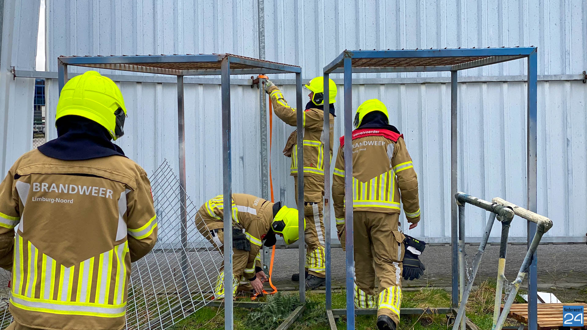 Een wand van damwandplaten dreigde zondagmorgen weg te waaien bij een bedrijf op de Hulsenweg in Nederweert.