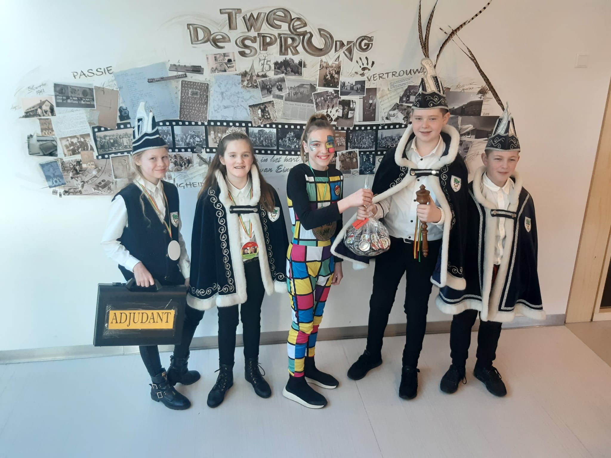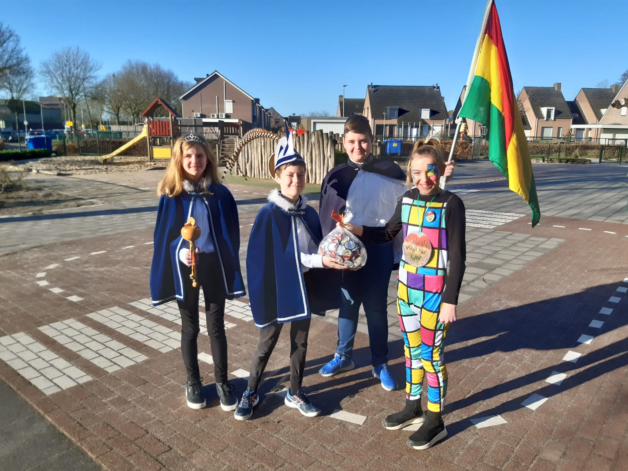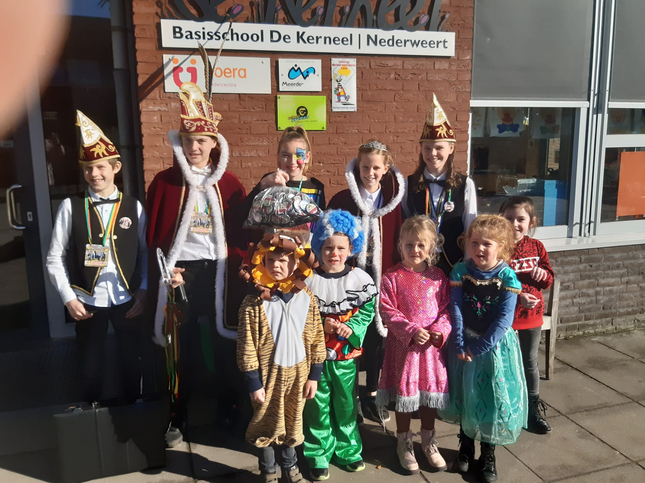 Op elke school stonden hoogheden klaar om de buttons in ontvangst te nemen. De buttons zullen op elke school verspreid worden onder de leerlingen en leerkrachten, want vastelaovendj veere vae same!
