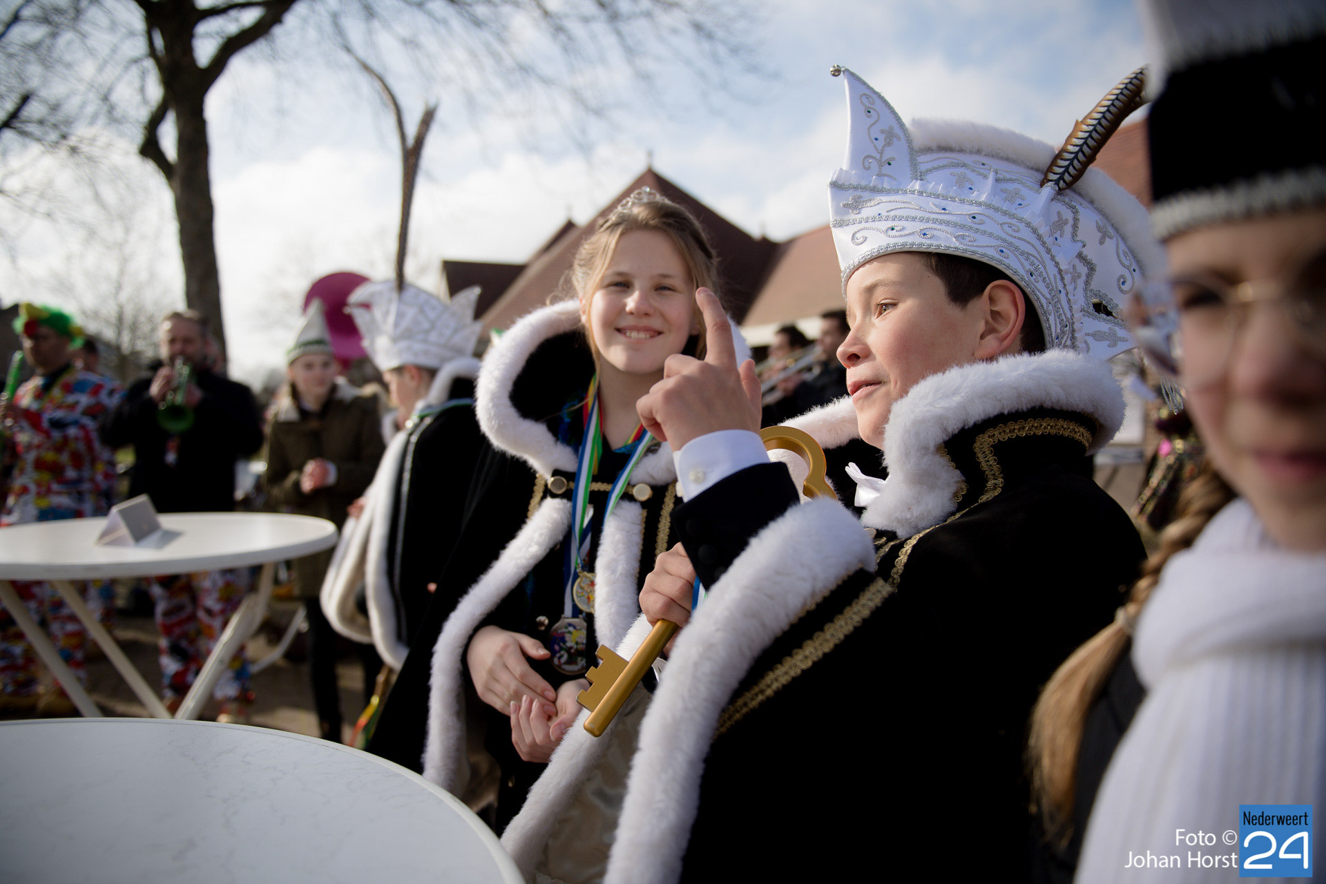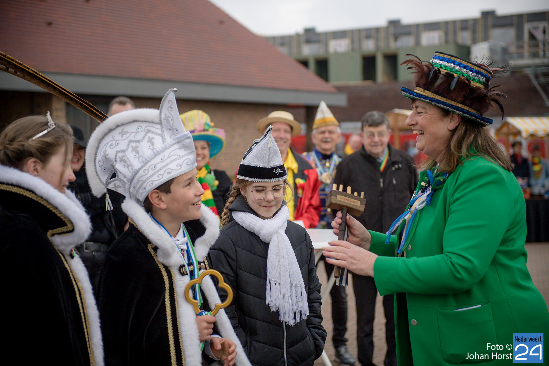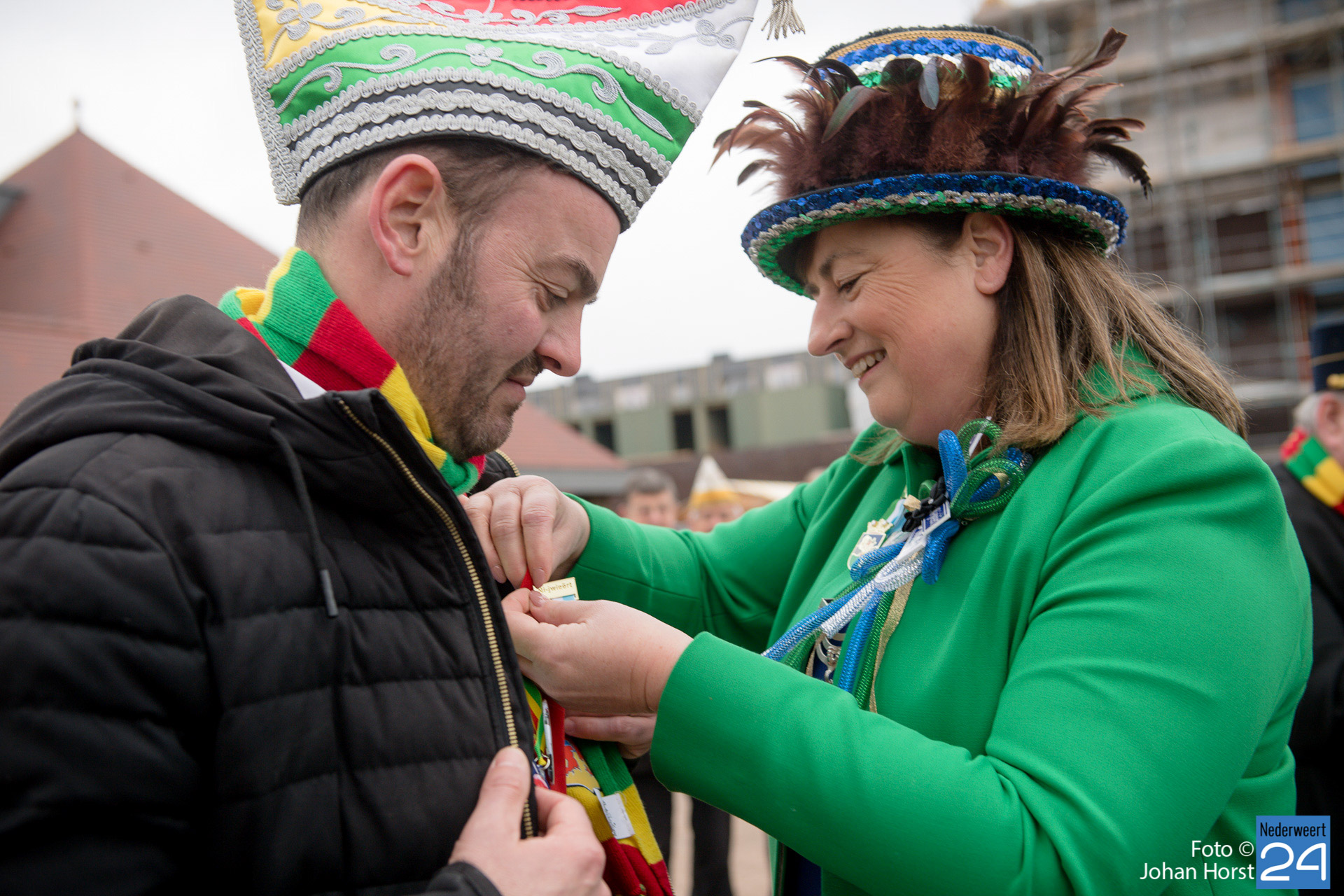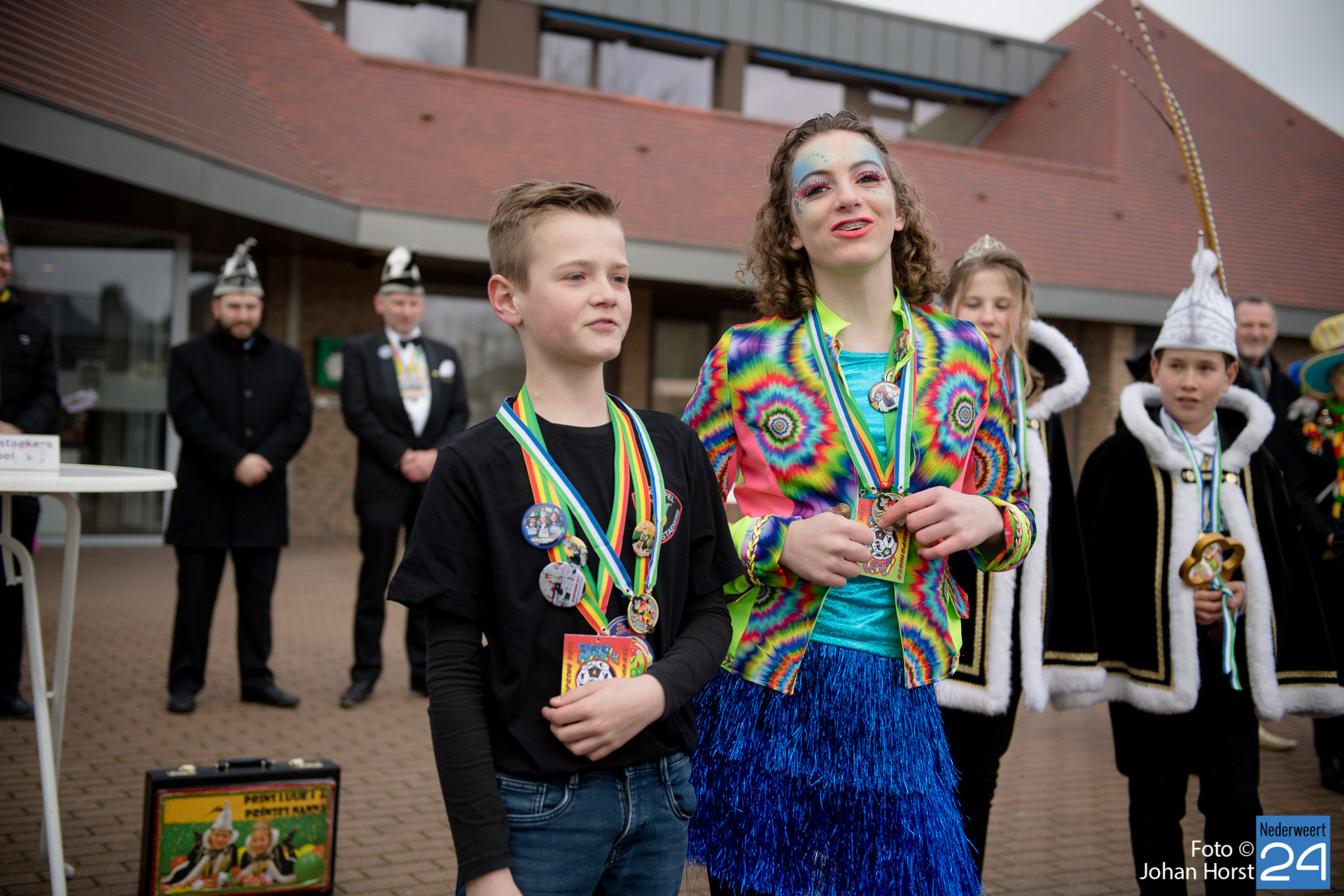 Op zaterdagmiddag droeg burgemeester Birgit Op de Laak de sleutel van ’t achterpörtje van ’t gemeindjehoês, en daarmee macht voor de drie dolle dagen, over aan Jeugdprins Bas I en Jeugdprinses Renske van V.V. De Pinmaekers Ni-jwieërt tijdens de traditionele Sleuteloverdracht. De bijeenkomst vond voor het gemeentehuis op het Raadhuisplein plaats.