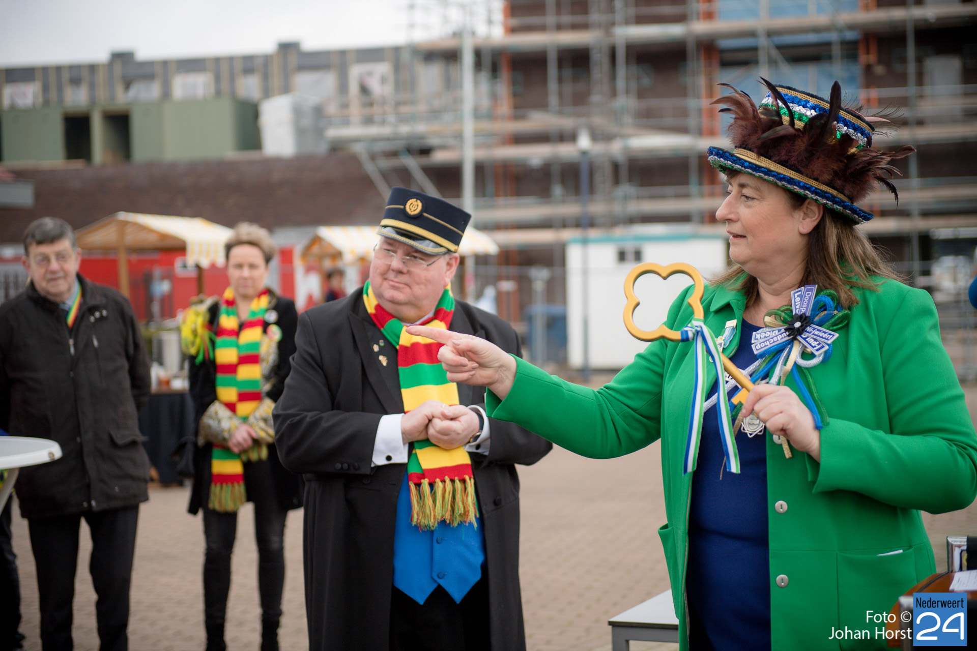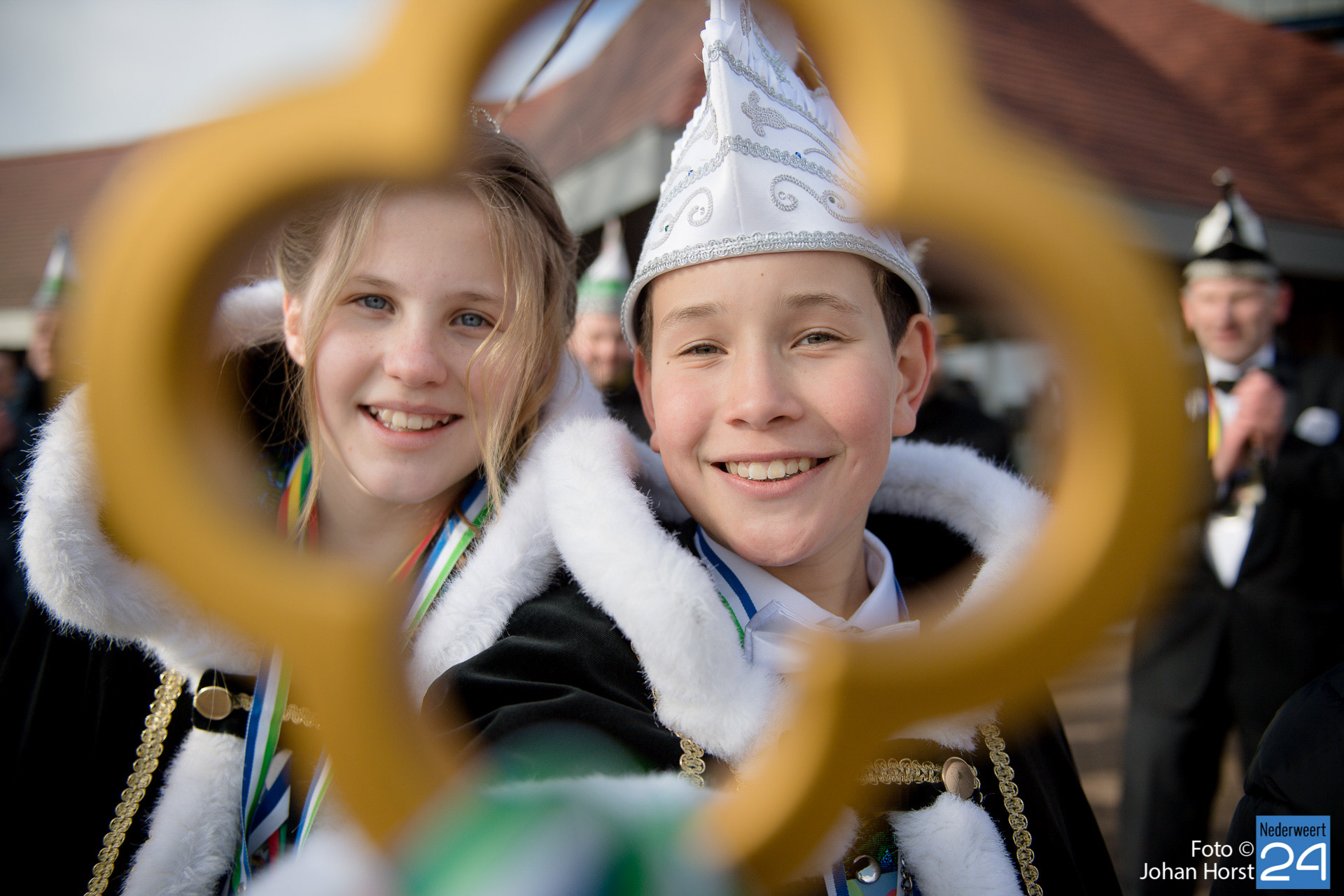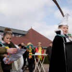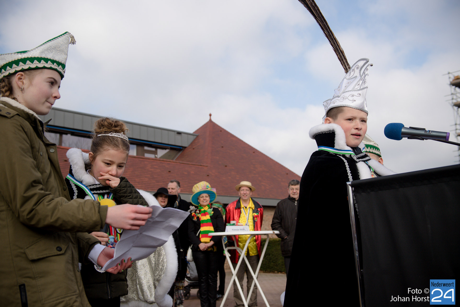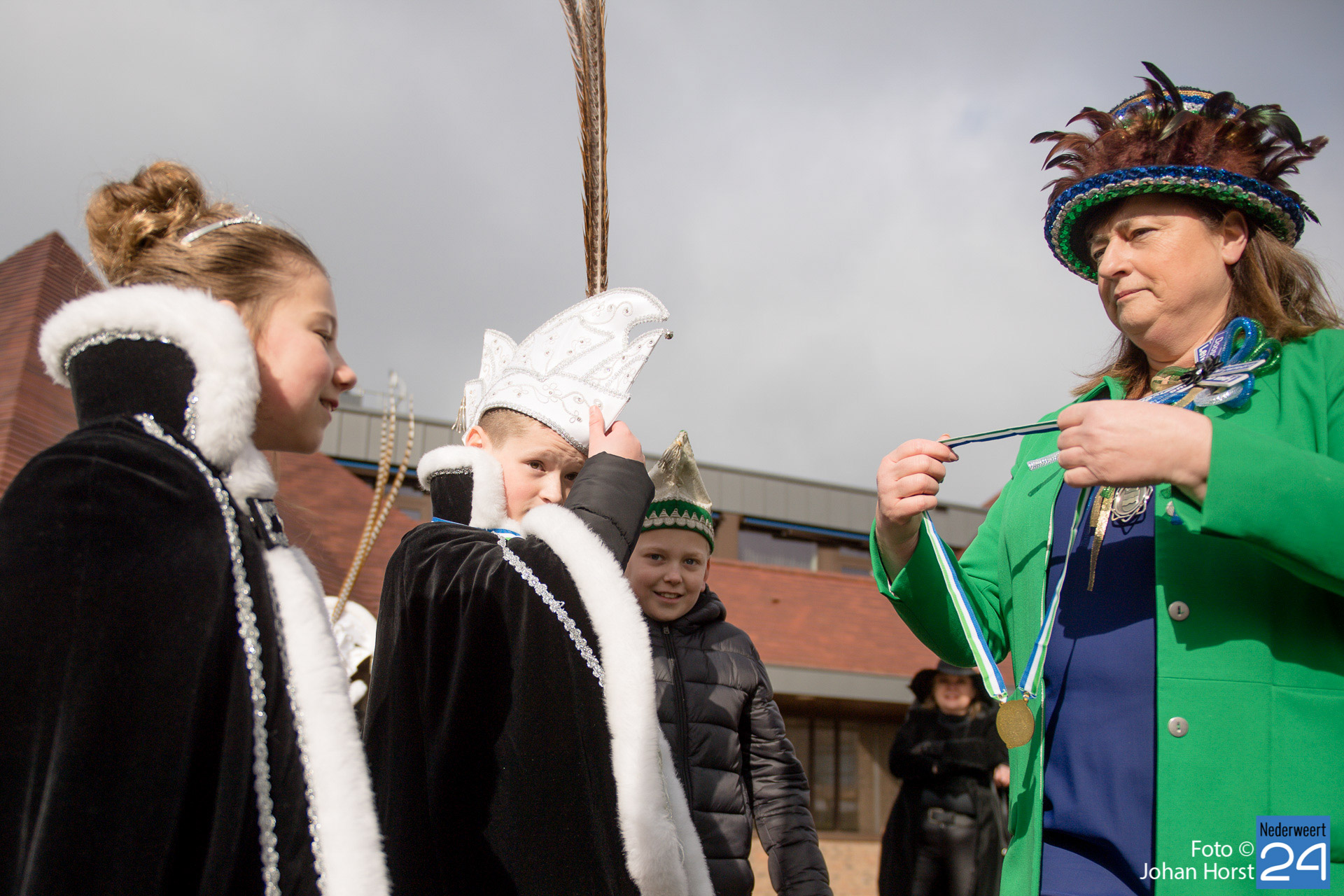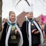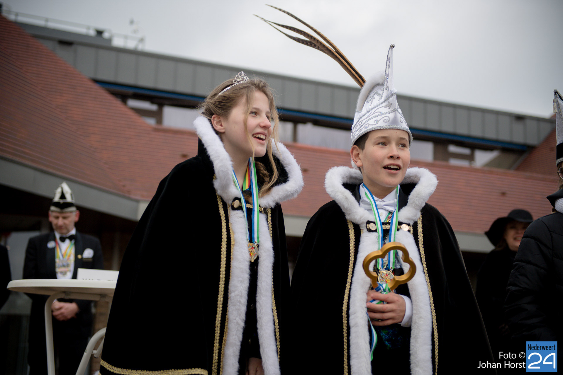 Op zaterdagmiddag droeg burgemeester Birgit Op de Laak de sleutel van ’t achterpörtje van ’t gemeindjehoês, en daarmee macht voor de drie dolle dagen, over aan Jeugdprins Bas I en Jeugdprinses Renske van V.V. De Pinmaekers Ni-jwieërt tijdens de traditionele Sleuteloverdracht. De bijeenkomst vond voor het gemeentehuis op het Raadhuisplein plaats.