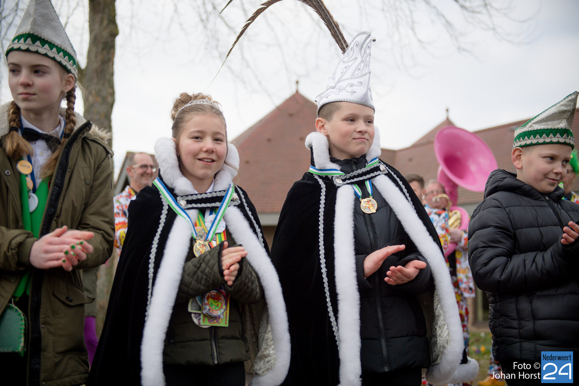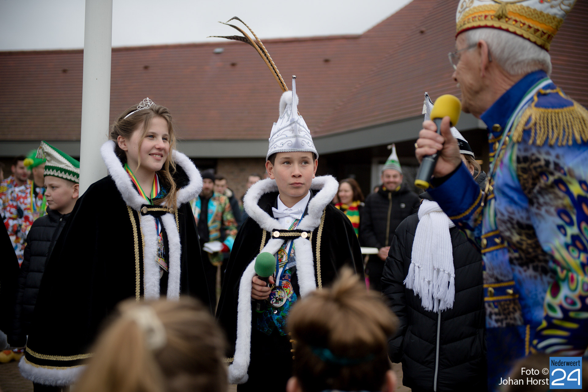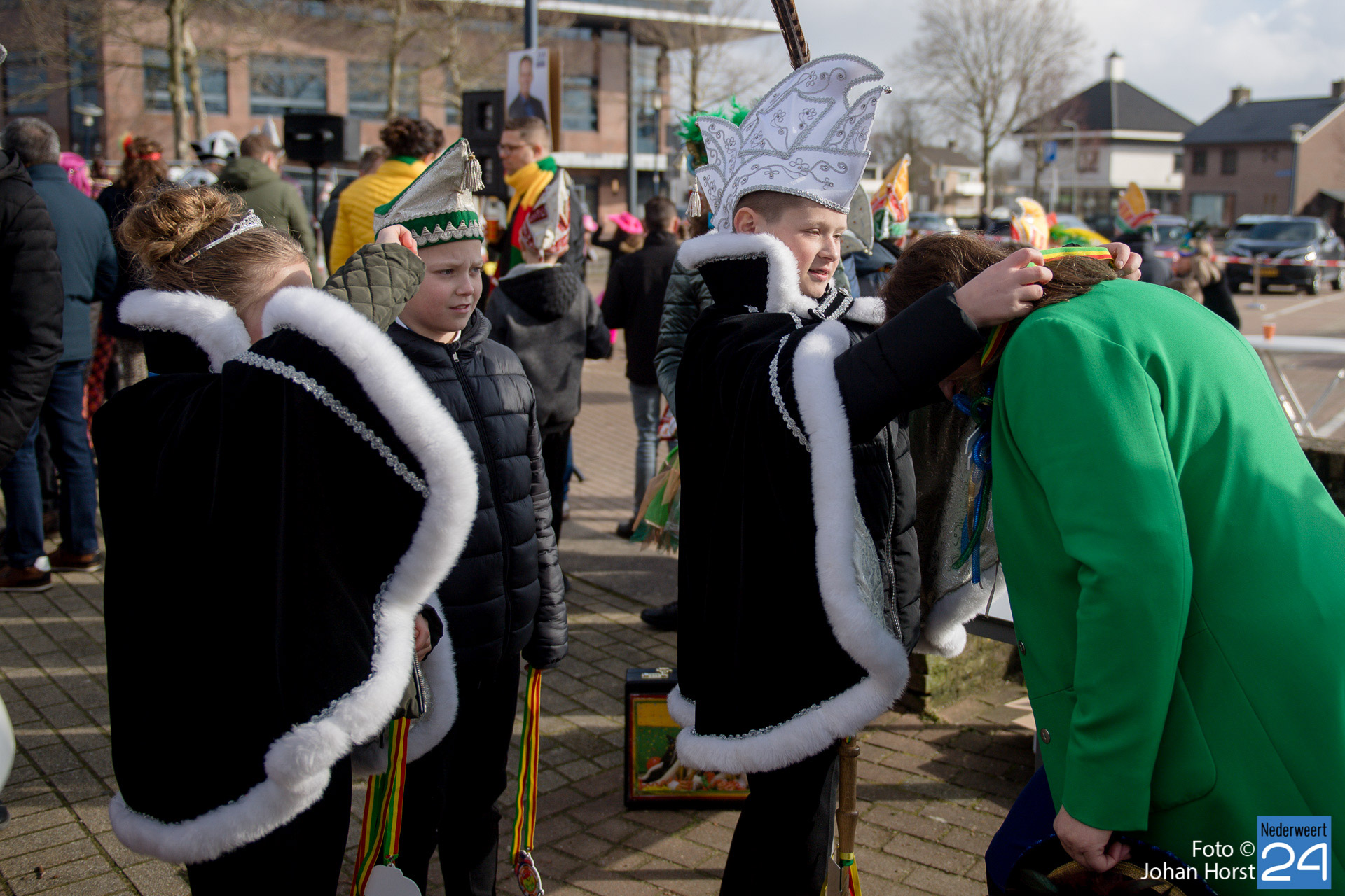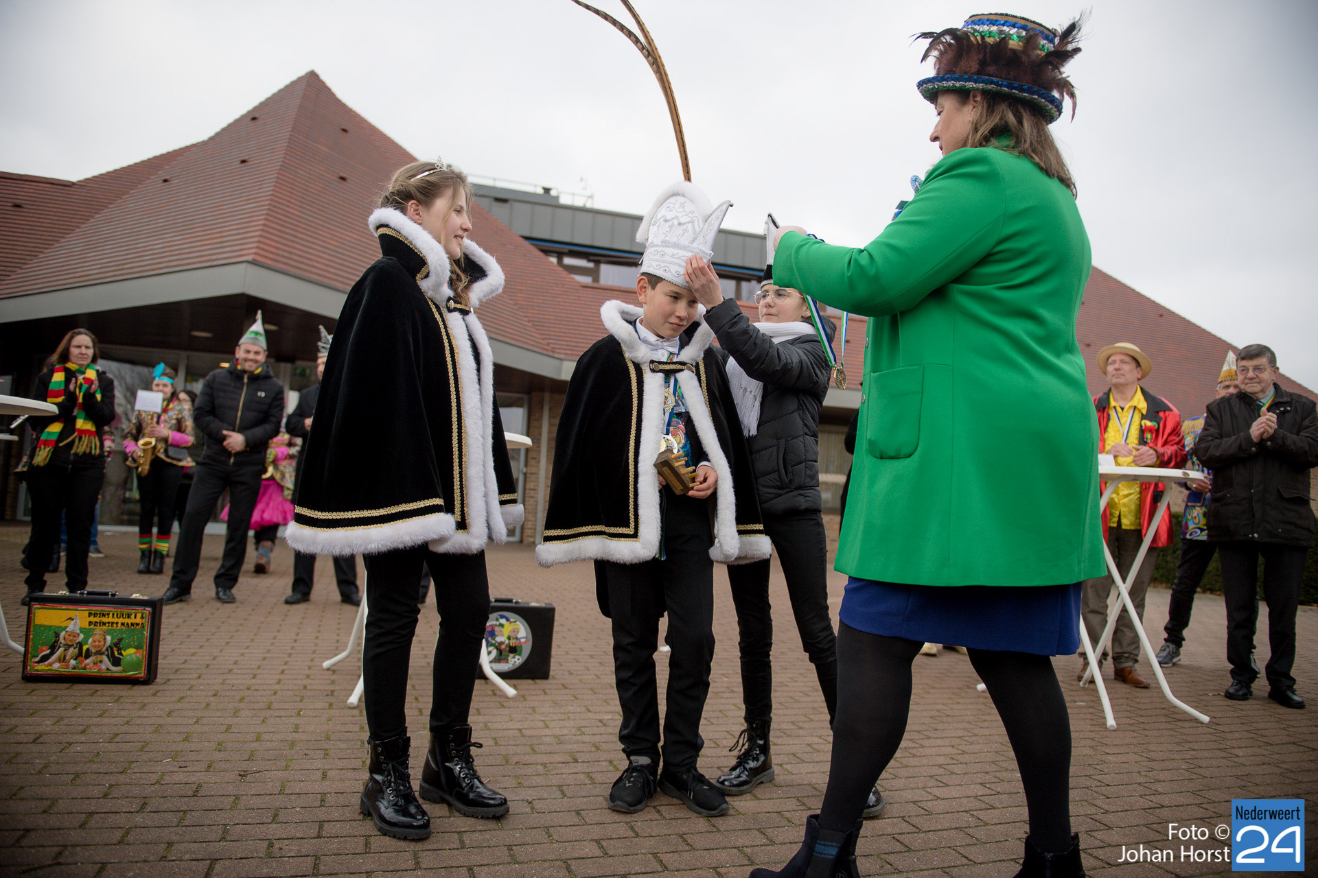 Op zaterdagmiddag droeg burgemeester Birgit Op de Laak de sleutel van ’t achterpörtje van ’t gemeindjehoês, en daarmee macht voor de drie dolle dagen, over aan Jeugdprins Bas I en Jeugdprinses Renske van V.V. De Pinmaekers Ni-jwieërt tijdens de traditionele Sleuteloverdracht. De bijeenkomst vond voor het gemeentehuis op het Raadhuisplein plaats.