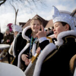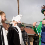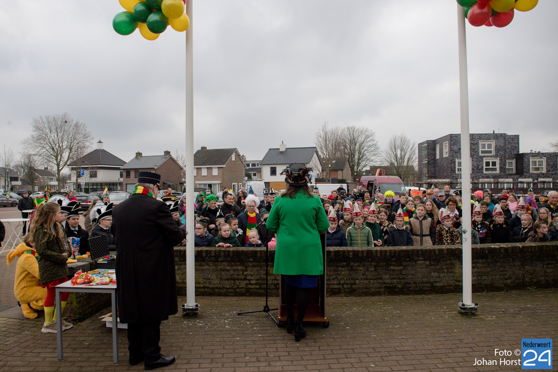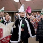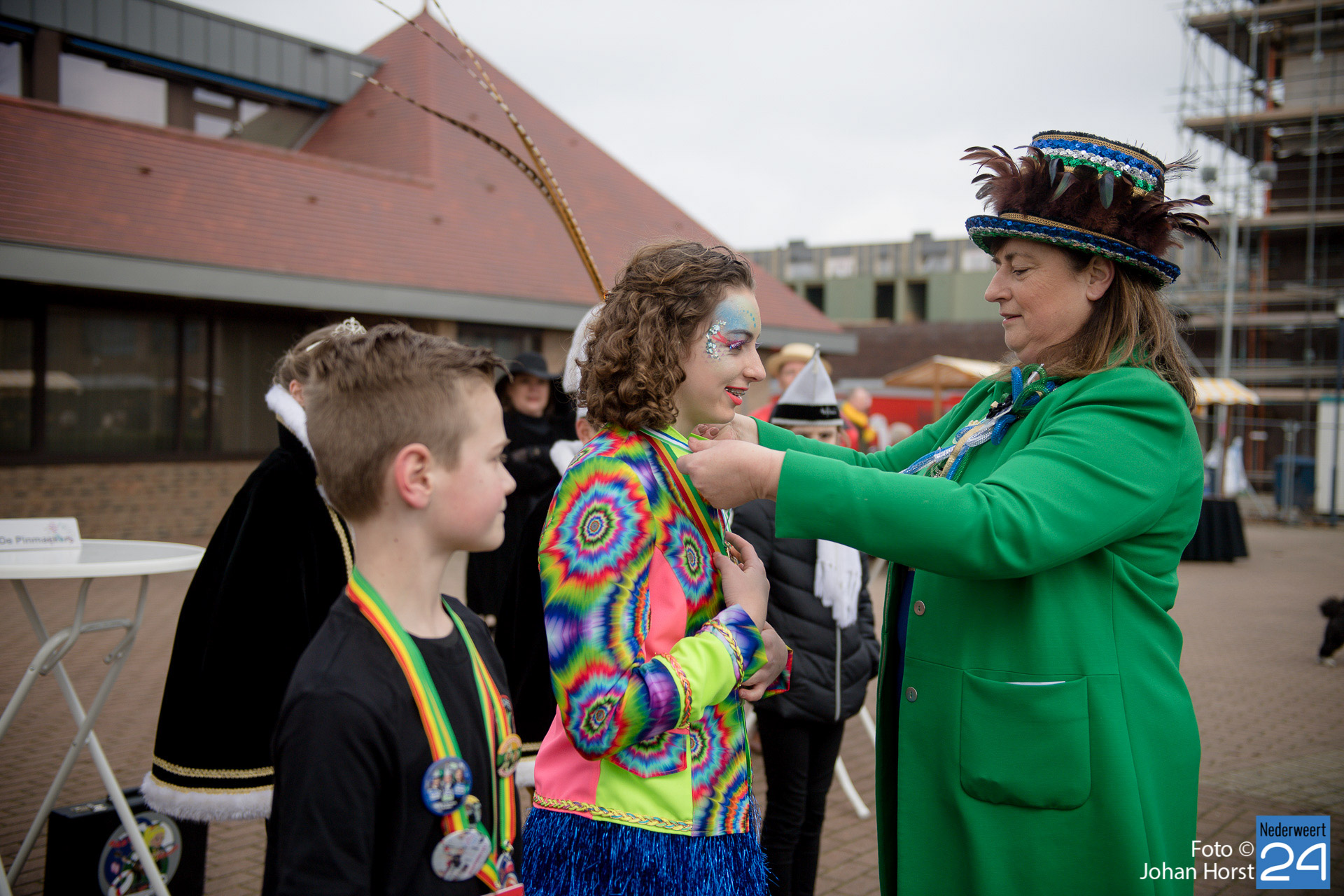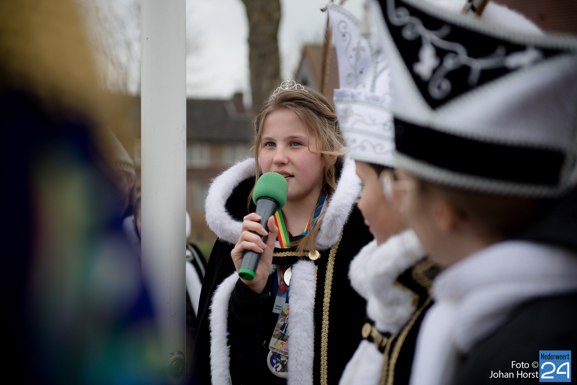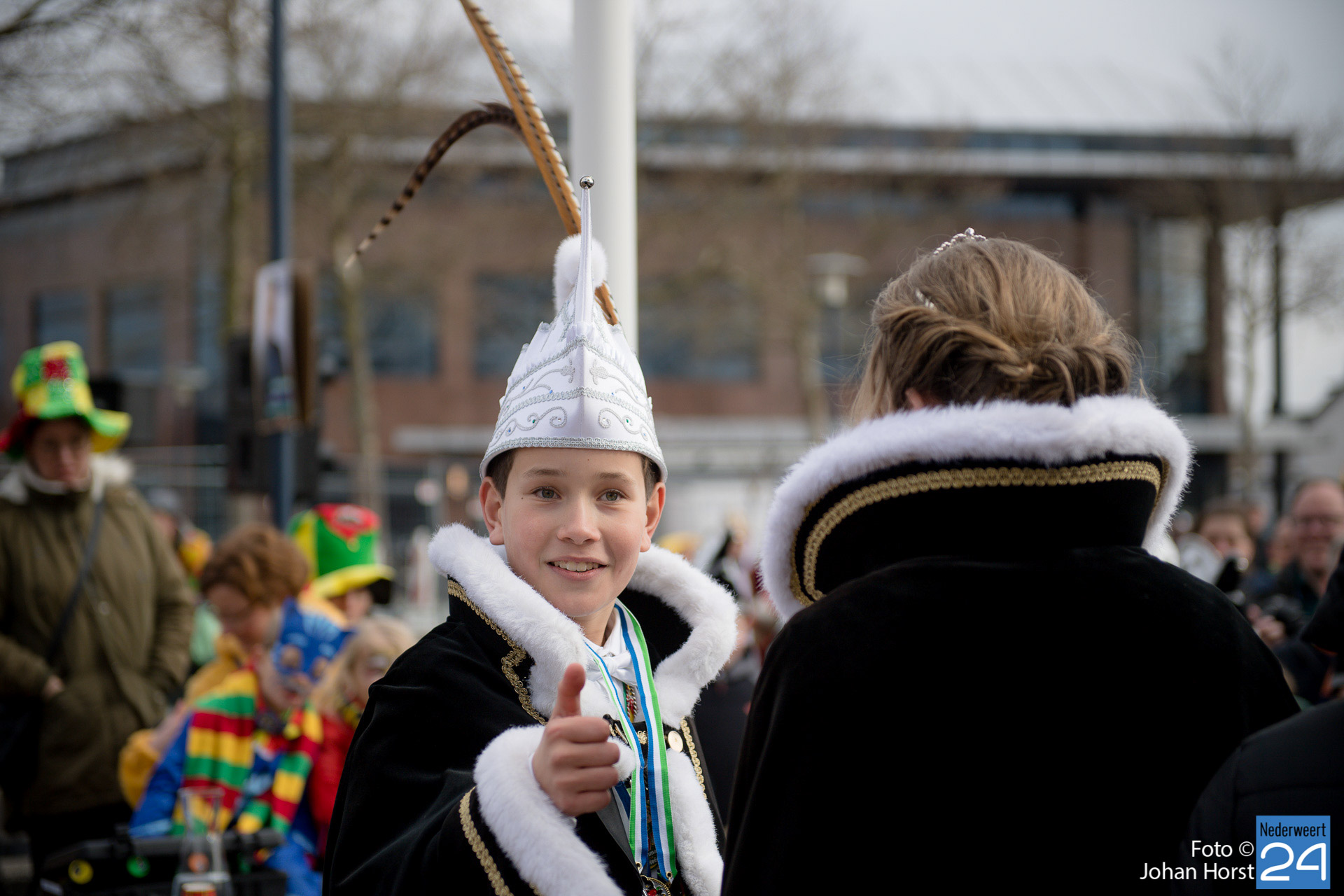 Op zaterdagmiddag droeg burgemeester Birgit Op de Laak de sleutel van ’t achterpörtje van ’t gemeindjehoês, en daarmee macht voor de drie dolle dagen, over aan Jeugdprins Bas I en Jeugdprinses Renske van V.V. De Pinmaekers Ni-jwieërt tijdens de traditionele Sleuteloverdracht. De bijeenkomst vond voor het gemeentehuis op het Raadhuisplein plaats.