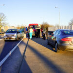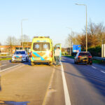 Een bedrijfsbus en twee personenauto’s botsten bij het stoplichting op elkaar. Mogelijk heeft de felle laagstaande zon een rol in de oorzaak van het ongeval.