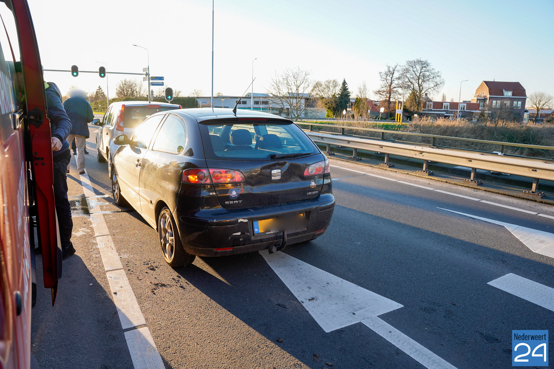 Een bedrijfsbus en twee personenauto’s botsten bij het stoplichting op elkaar. Mogelijk heeft de felle laagstaande zon een rol in de oorzaak van het ongeval.