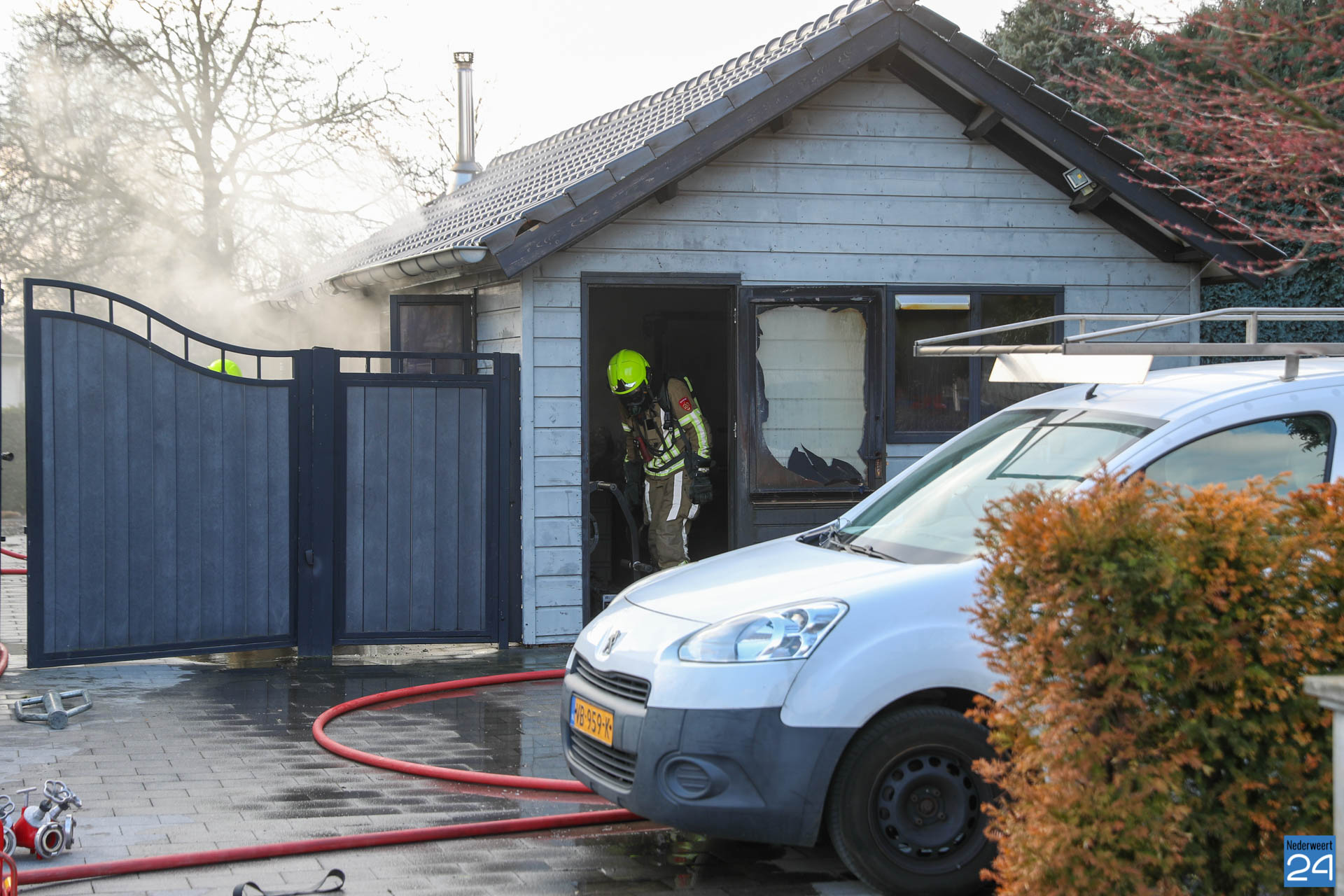 In de werkplaats stond een acetyleenfles. Deze is door de brandweer eruit gehaald en gekoeld.