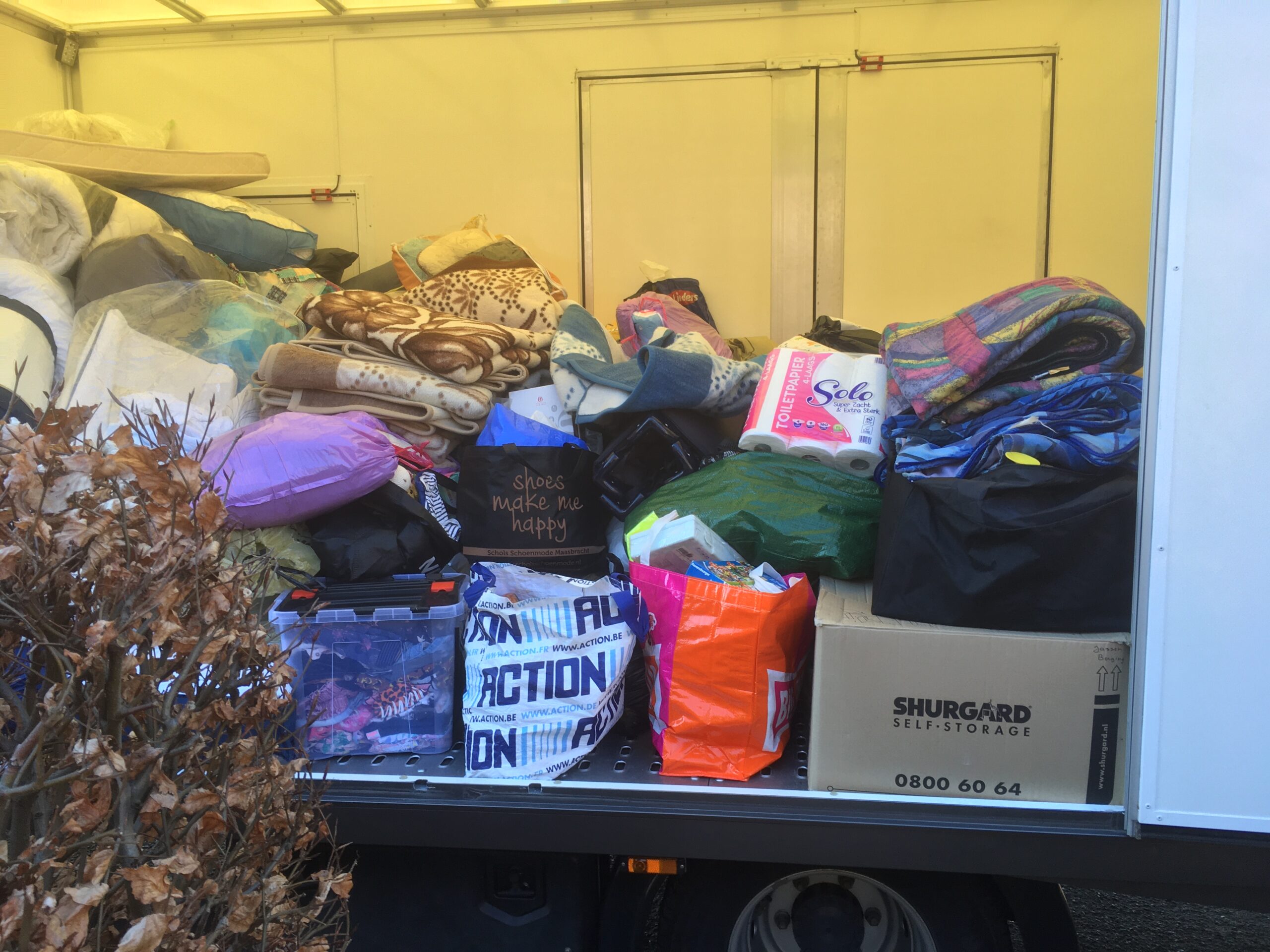 “De mensen die hebben ingesproken op mijn voicemail maar geen telefoonnummer hebben achtergelaten, kon ik helaas niet terugbellen” aldus Ria. Zoveel mensen die spullen wilde geven, van mooie zelfgemaakte knuffels tot spiksplinternieuwe slaapzakken en beddengoed. Van een rolstoel tot etenswaar, van alles werd afgeleverd. Sommige mensen gingen er zelfs voor naar de winkel. “Mijn huiskamer stond letterlijk bomvol. Dusdanig veel dat ik al na een dag een pas op de plaats moest maken“. Ook vanuit de Pastoerskoel in Leveroy werd een inzamelingsactie gestart. Uiteindelijk zijn vanuit Nederweert drie vrachten afgeleverd in Heerlen waar de spullen gesorteerd en omgepakt werden in grote dozen.