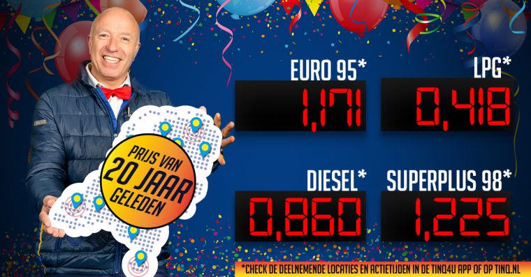 TinQ bestaat 20 jaar en trakteert haar klanten de komende dagen op een hele bijzondere actie. TinQ biedt haar klanten, op een aantal tankstations, de mogelijkheid om te tanken voor de brandstofprijzen van 20 jaar geleden.