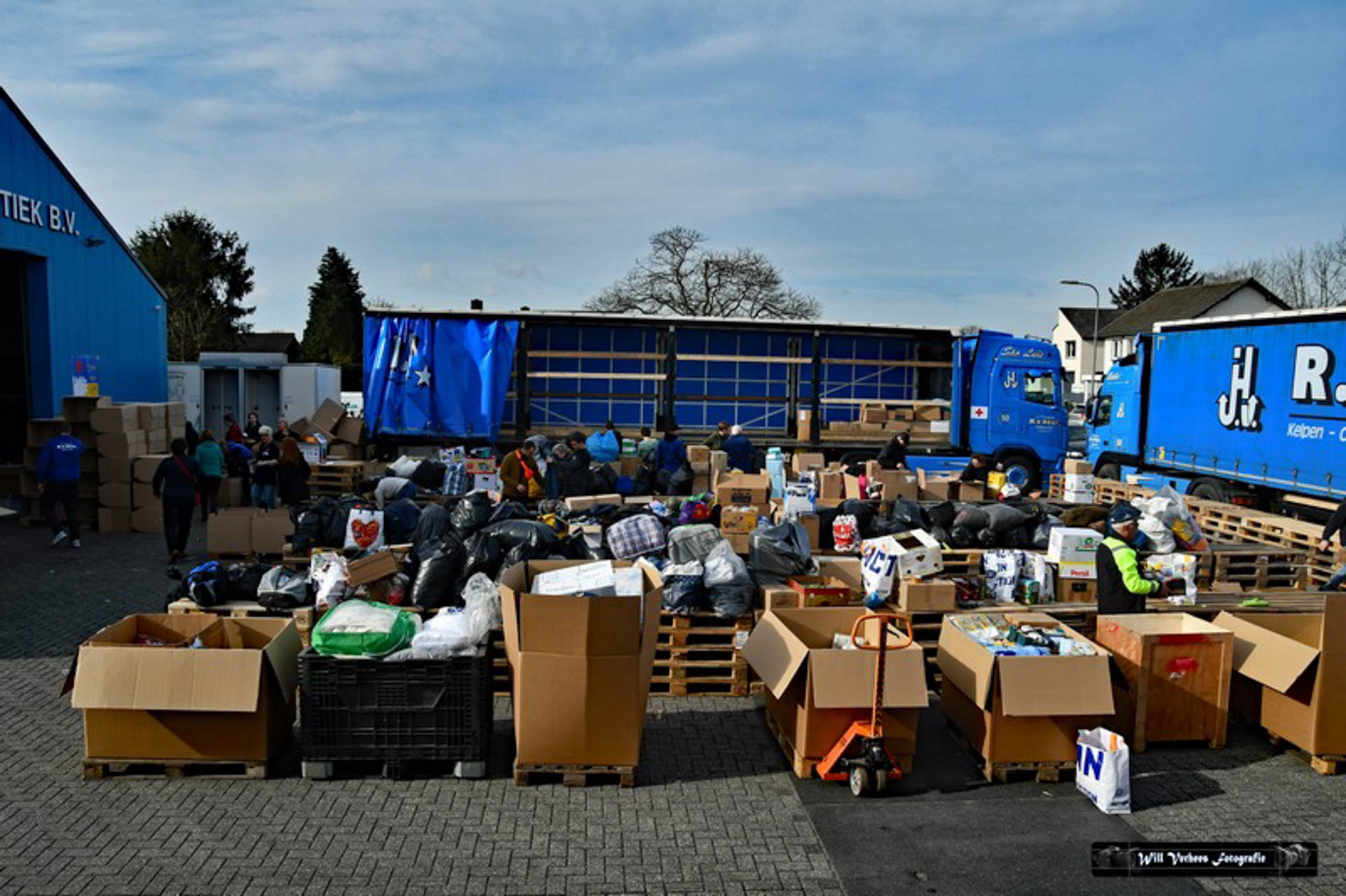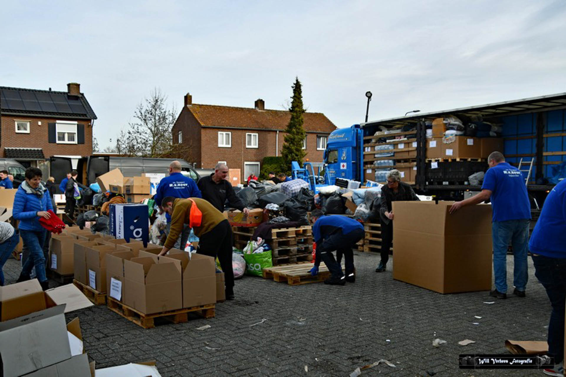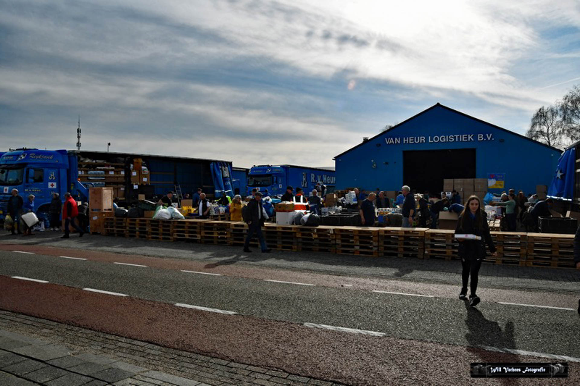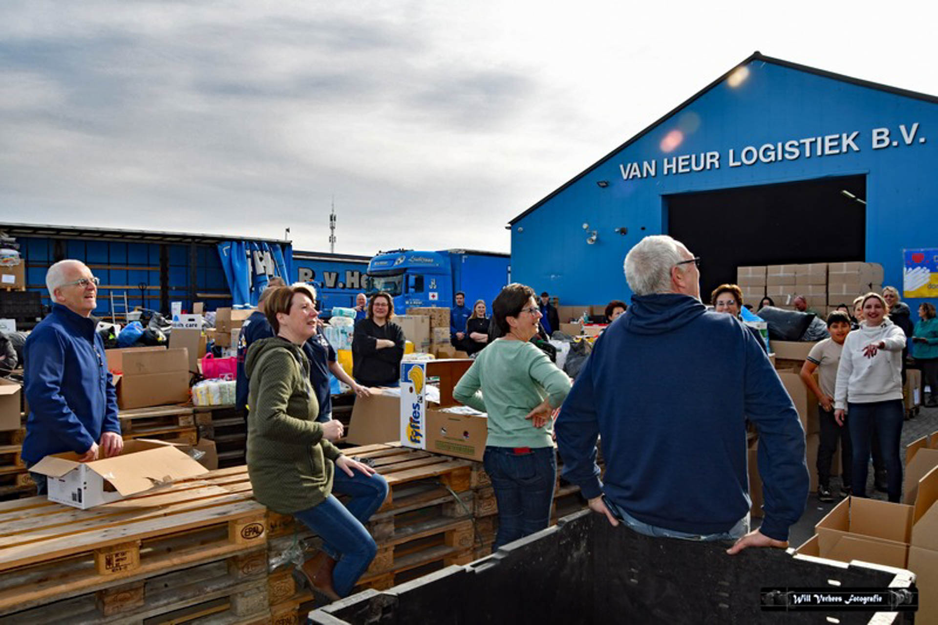 Vanwege de drukte werden verkeersregelaars ingezet en vele vrijwilligers waren opgetrommeld om een en ander in goede banen te leiden. Bedoeling was in eerste instantie om drie vrachtwagens van het transportbedrijf met spullen naar de grens van Polen met Oekraïne te sturen. Maar al snel werd dat bijgesteld naar vijf.