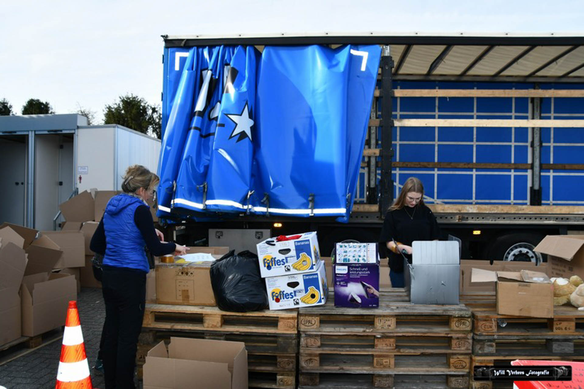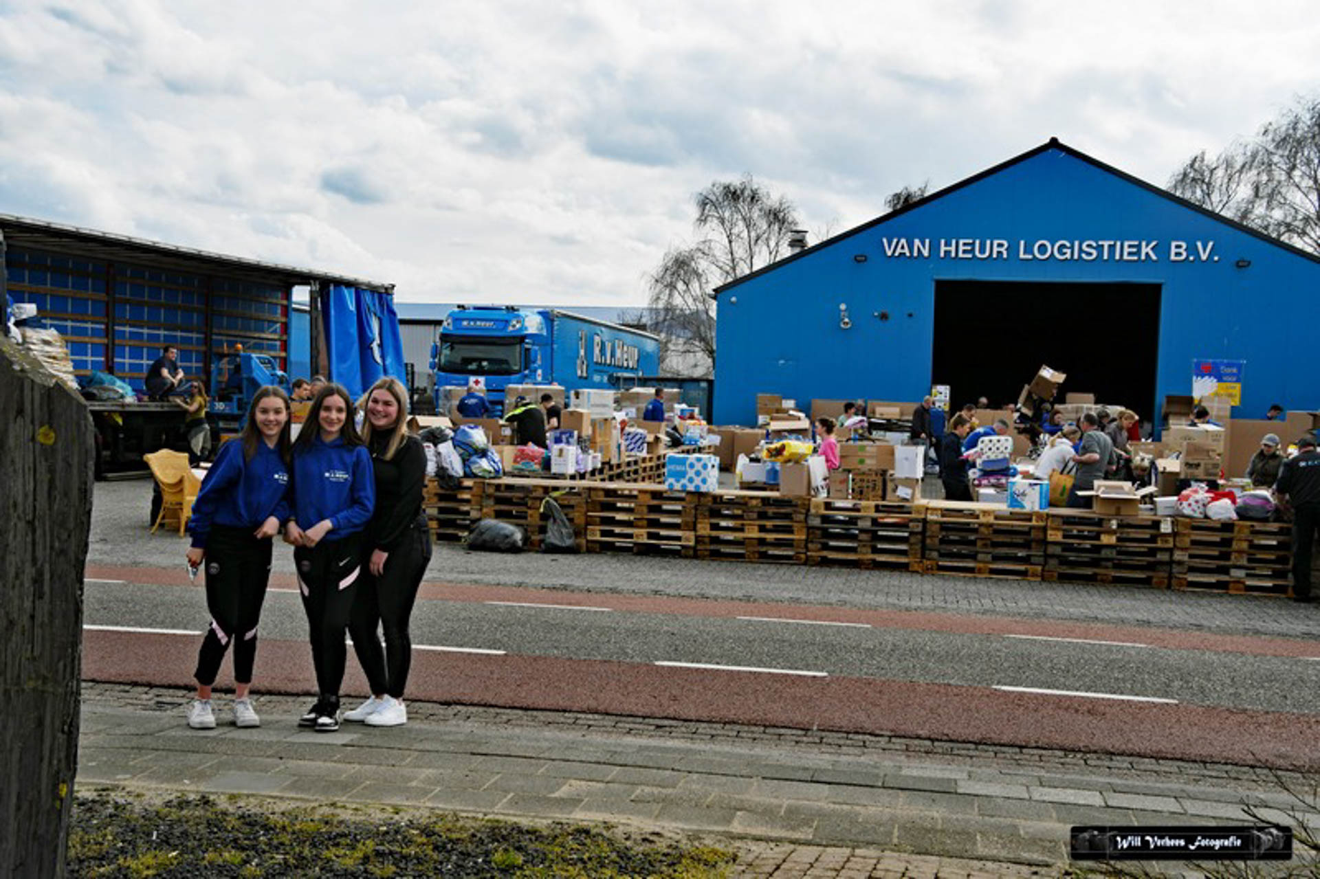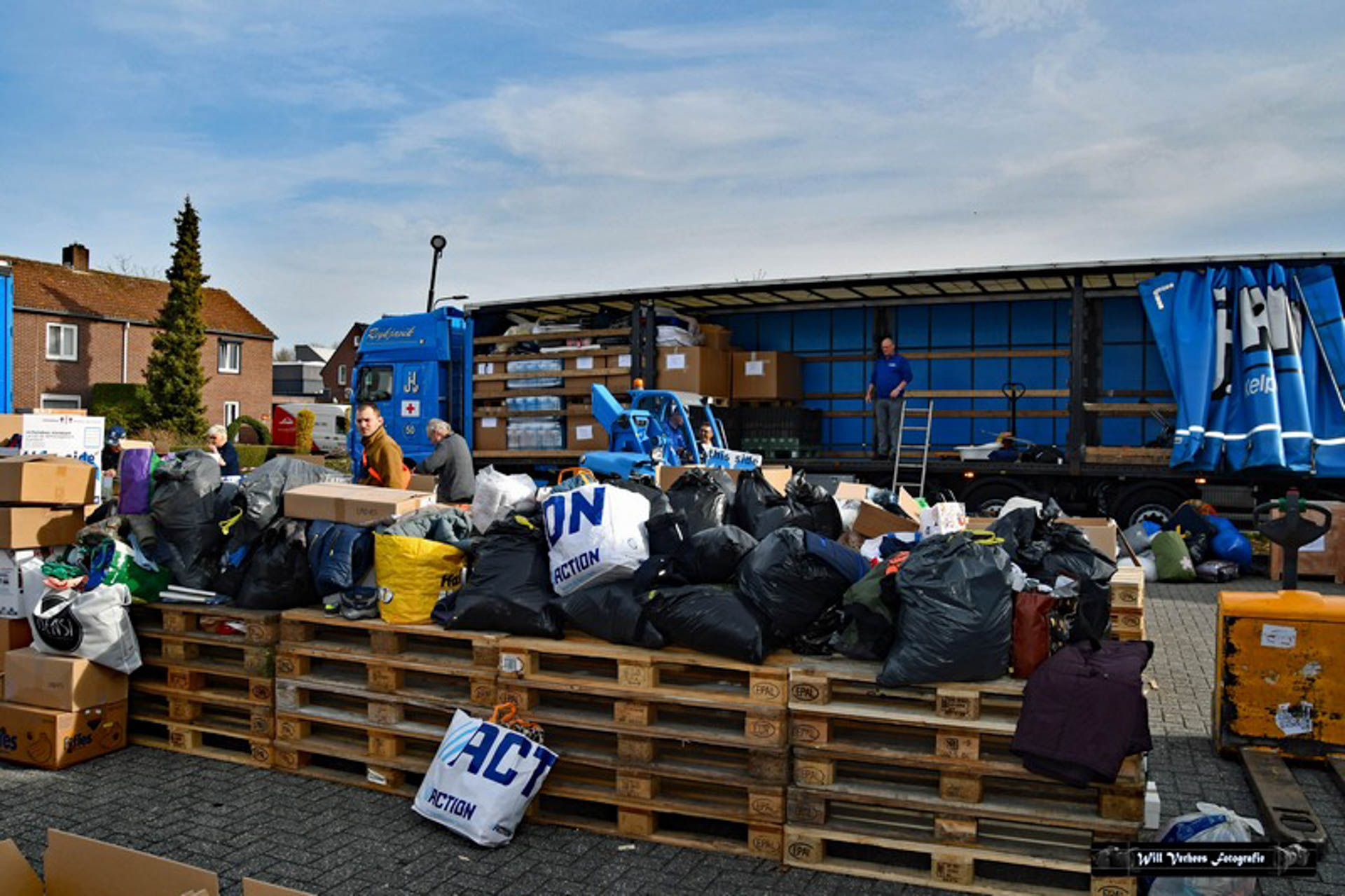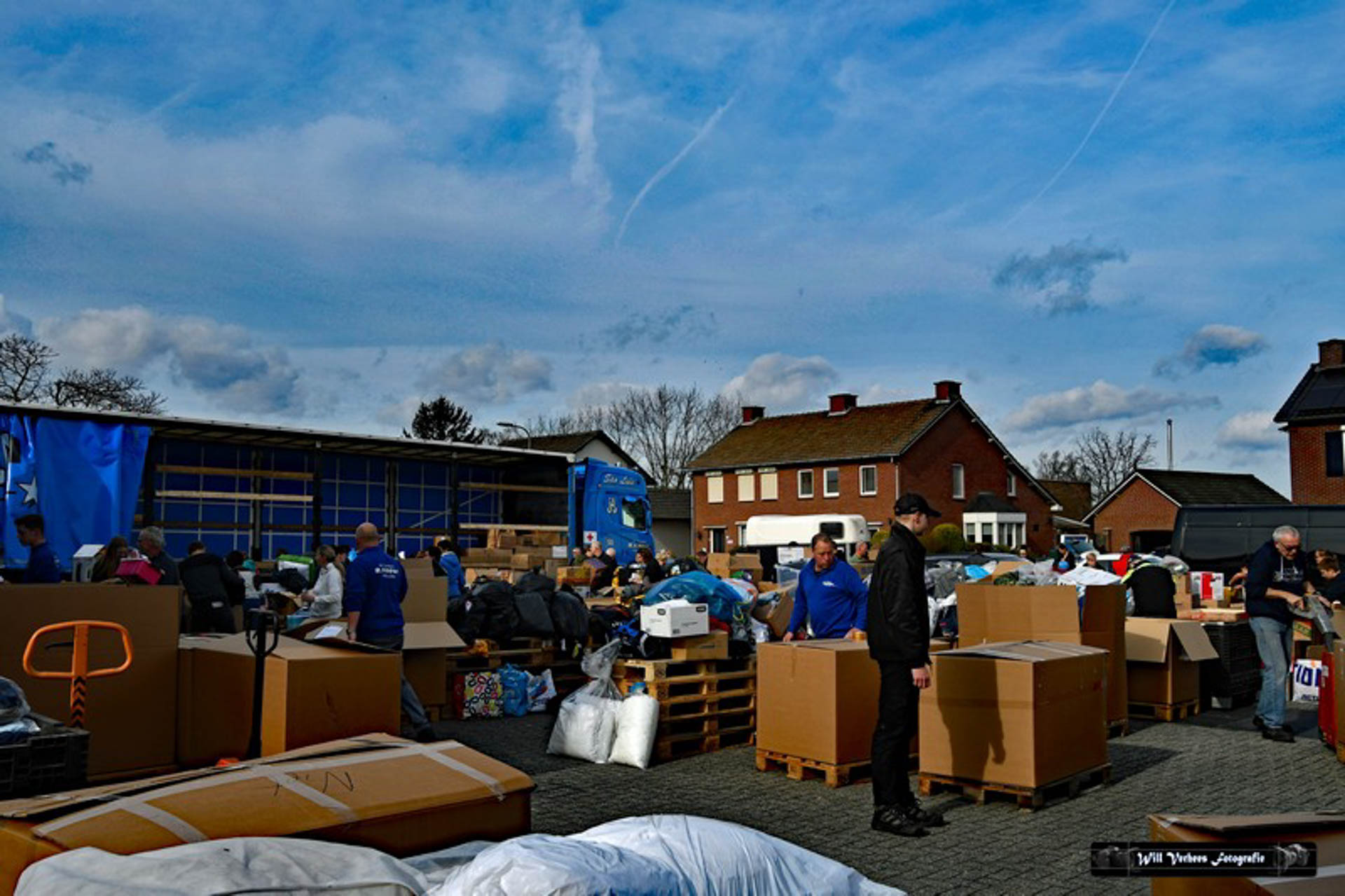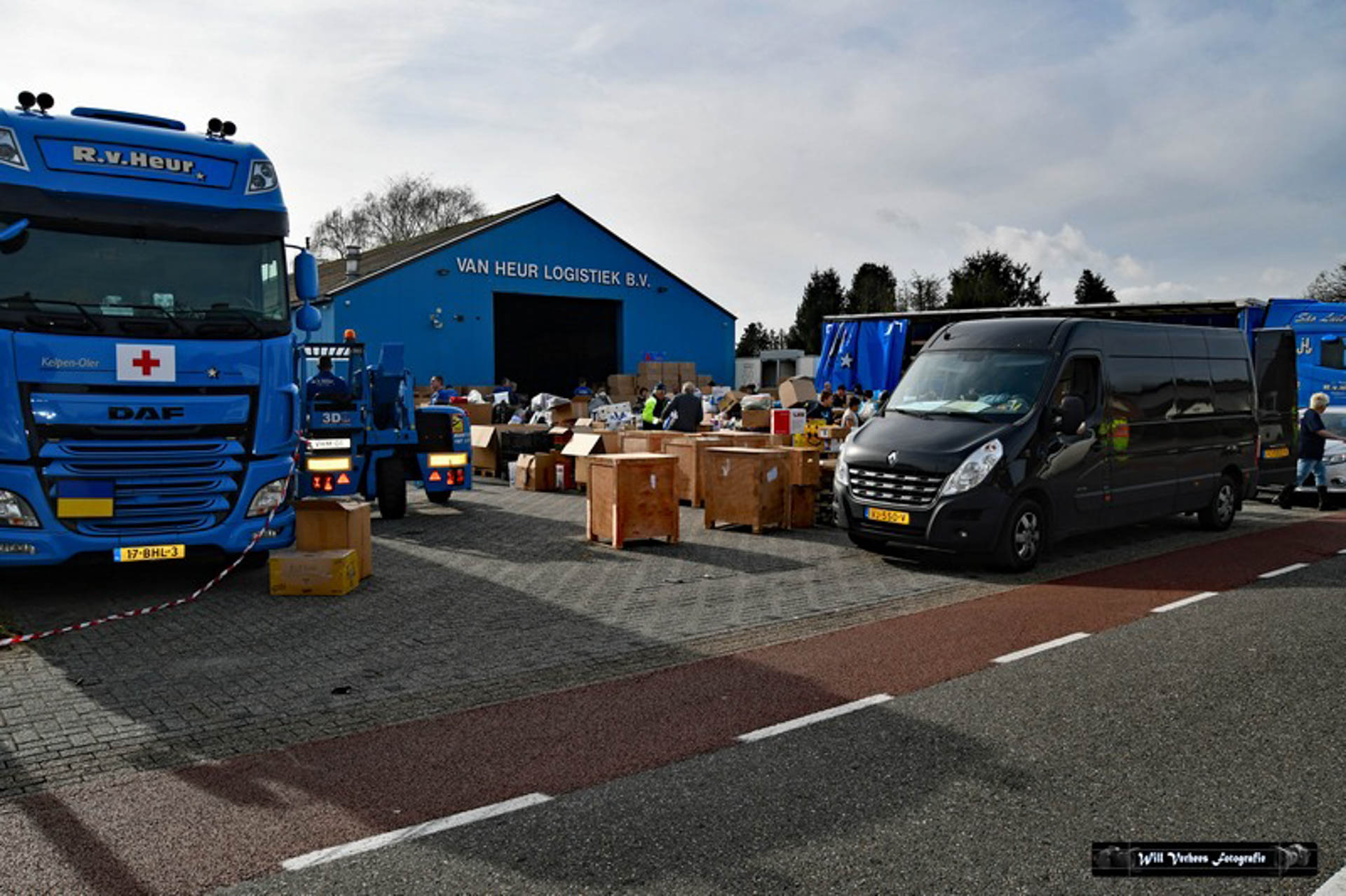 Vanwege de drukte werden verkeersregelaars ingezet en vele vrijwilligers waren opgetrommeld om een en ander in goede banen te leiden. Bedoeling was in eerste instantie om drie vrachtwagens van het transportbedrijf met spullen naar de grens van Polen met Oekraïne te sturen. Maar al snel werd dat bijgesteld naar vijf.
