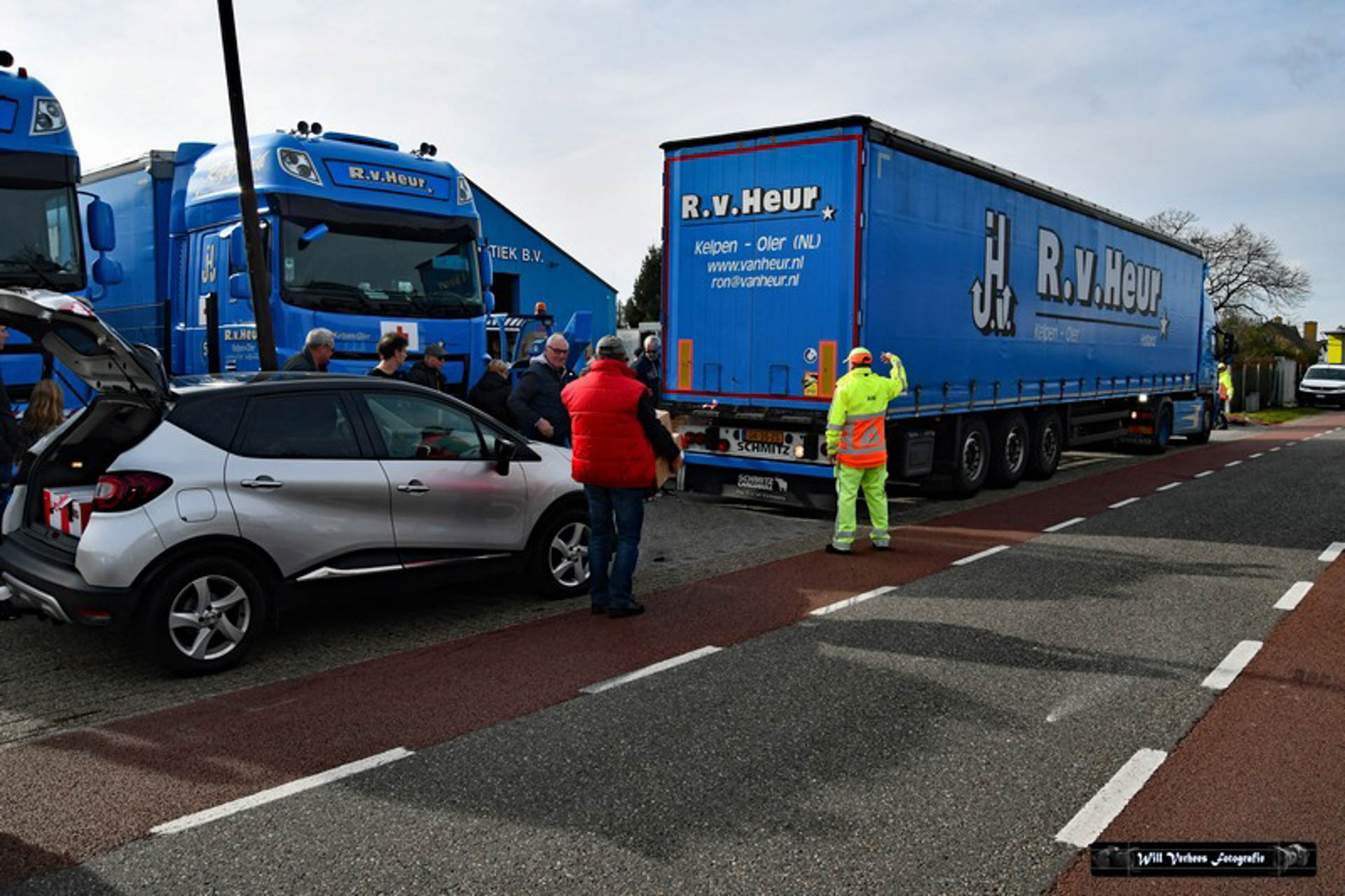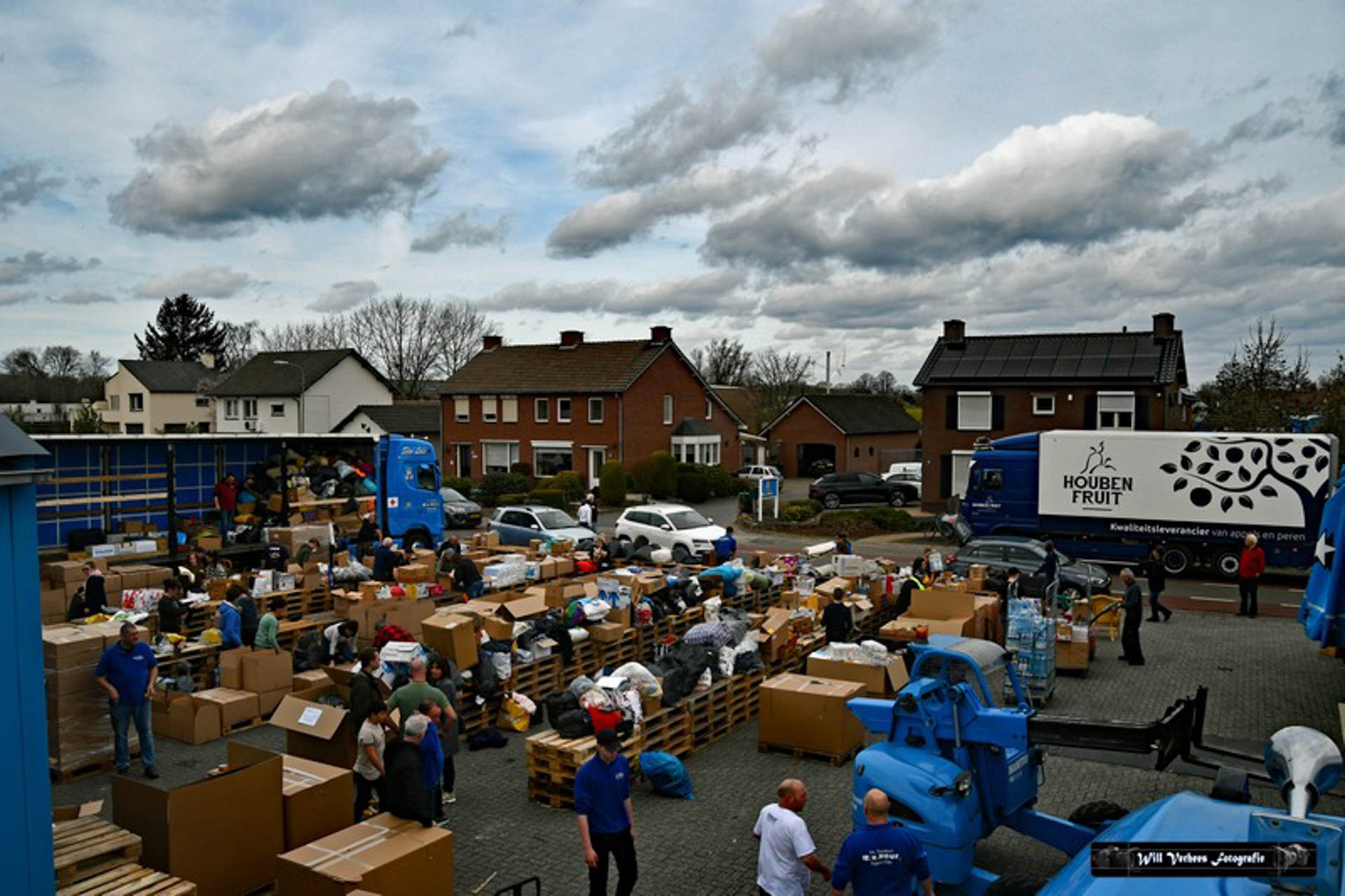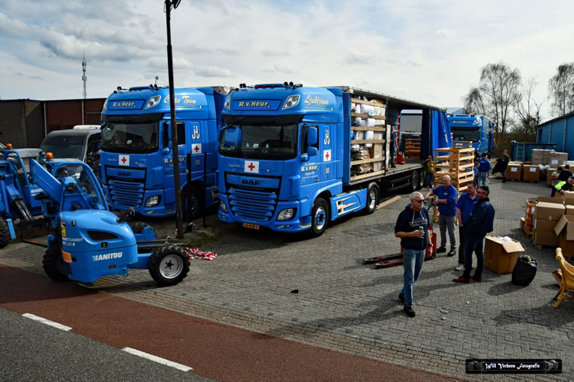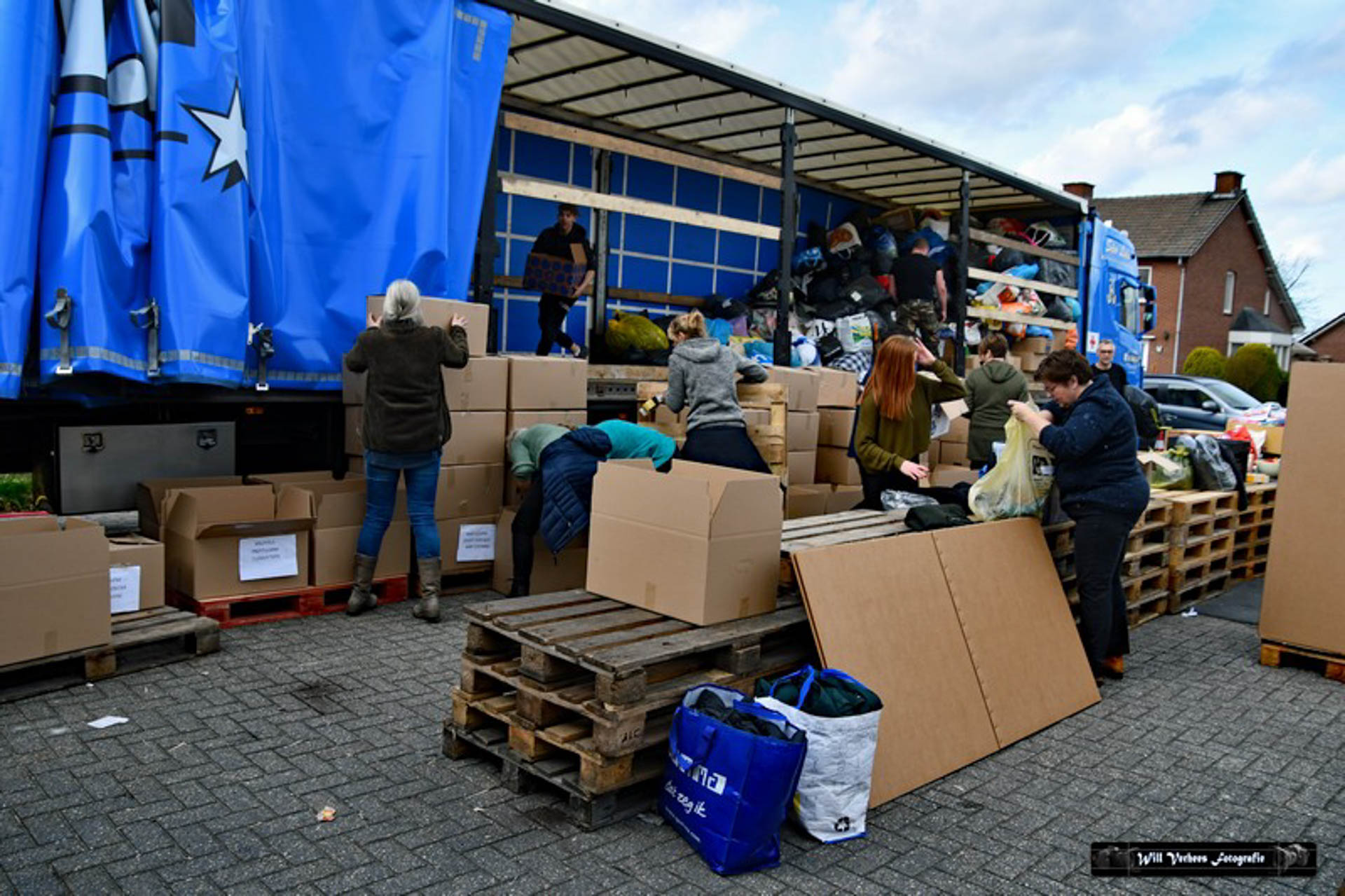 Vanwege de drukte werden verkeersregelaars ingezet en vele vrijwilligers waren opgetrommeld om een en ander in goede banen te leiden. Bedoeling was in eerste instantie om drie vrachtwagens van het transportbedrijf met spullen naar de grens van Polen met Oekraïne te sturen. Maar al snel werd dat bijgesteld naar vijf.