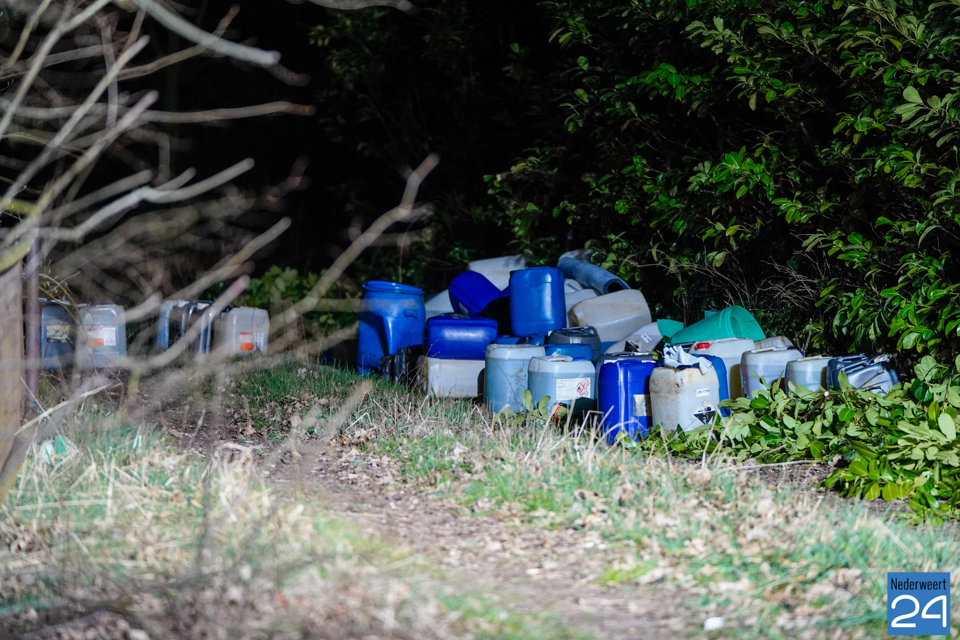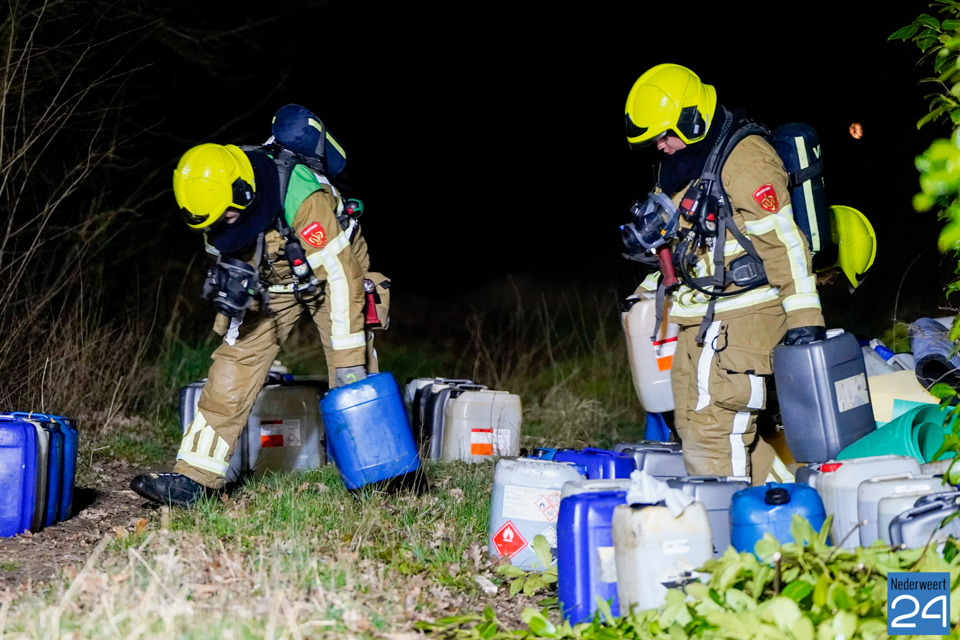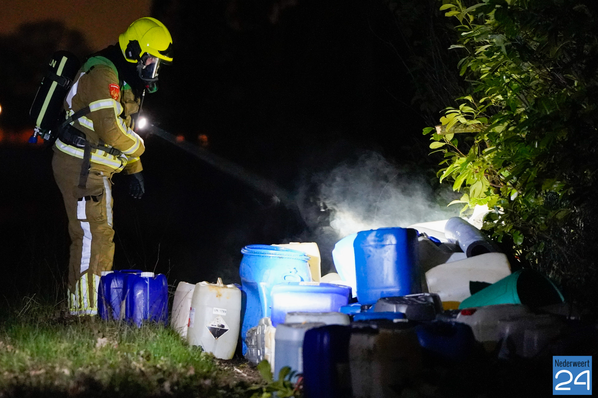 De politie en brandweer zijn inmiddels ter plaatse. De vaten dampen en er is sprake van een flinke lekkage. Er zijn naar verwachting zo’n 80 vaten aangetroffen. Een gespecialiseerd bedrijf zal de vaten ruimen. De politie stelt een onderzoek in. Mogelijk zijn de vaten afkomstig uit het drugscircuit.