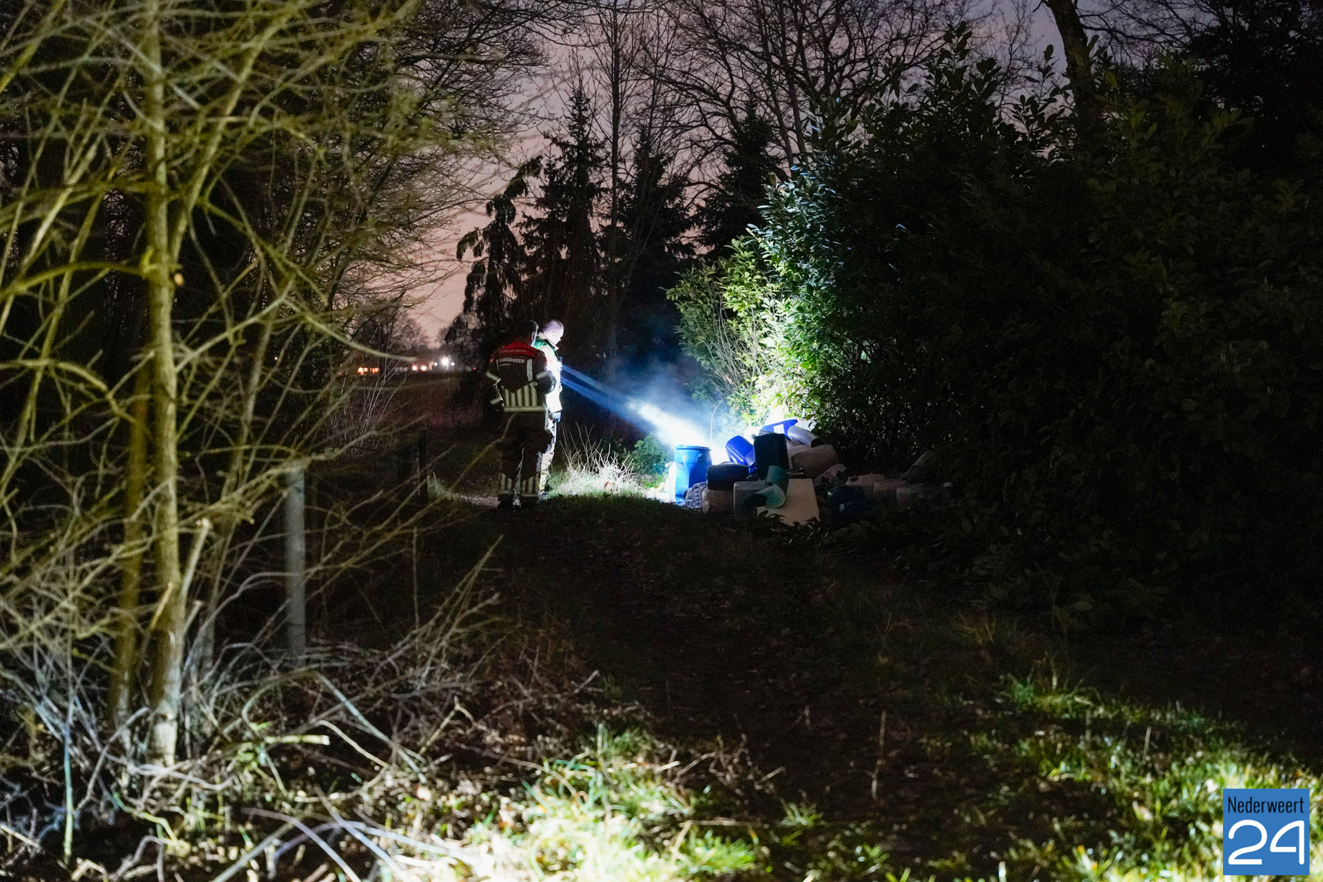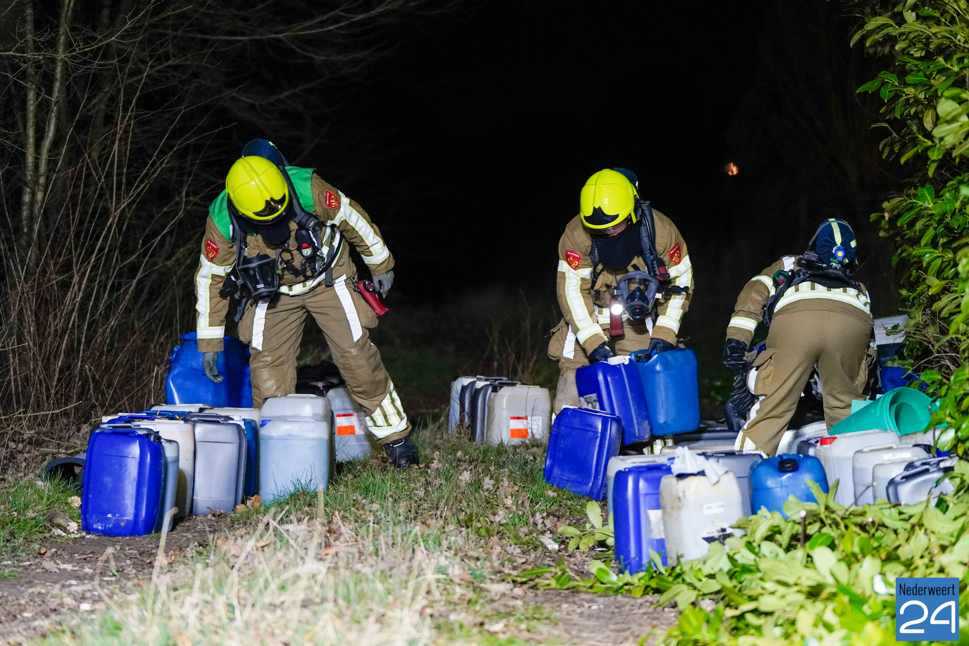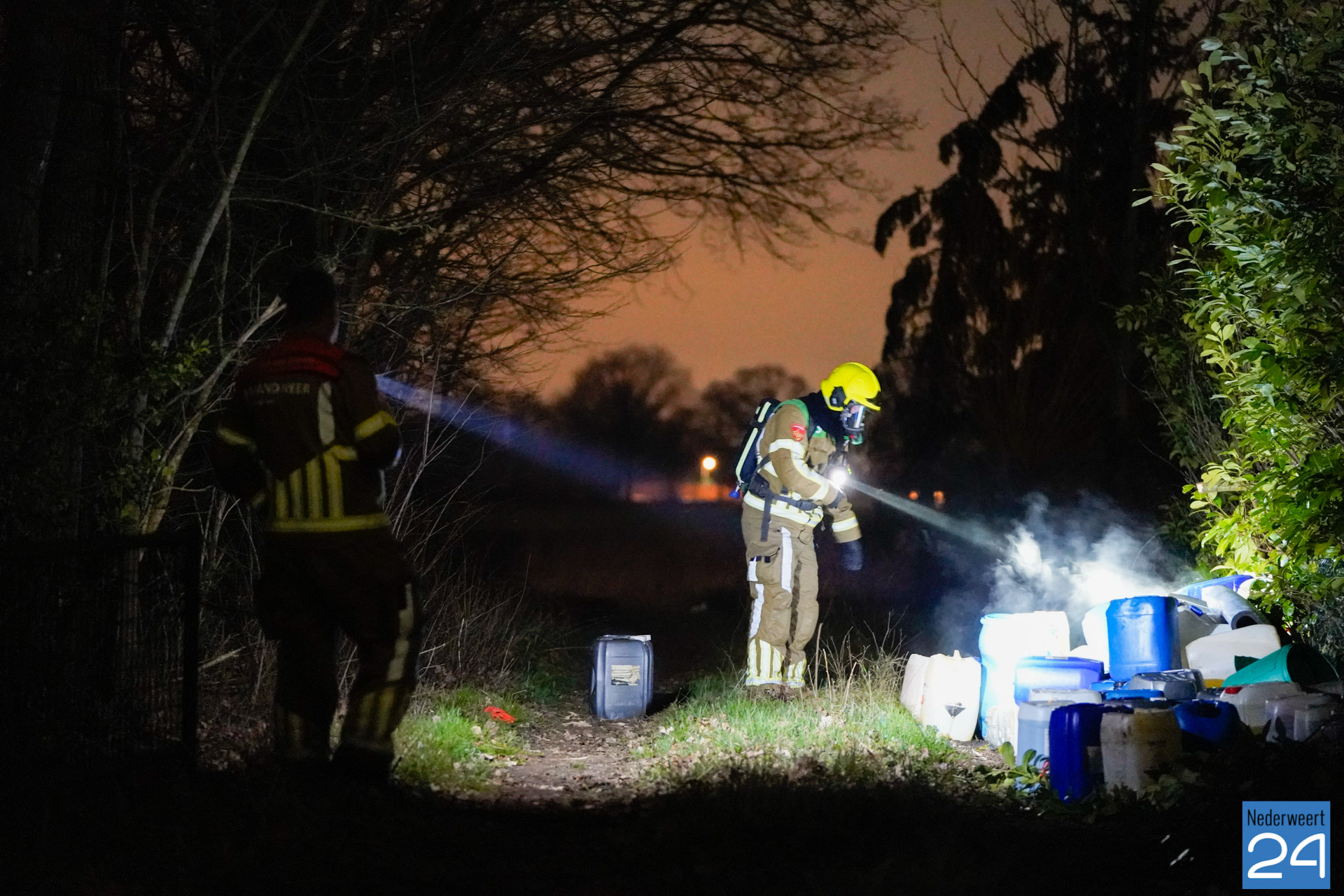 De politie en brandweer zijn inmiddels ter plaatse. De vaten dampen en er is sprake van een flinke lekkage. Er zijn naar verwachting zo’n 80 vaten aangetroffen. Een gespecialiseerd bedrijf zal de vaten ruimen. De politie stelt een onderzoek in. Mogelijk zijn de vaten afkomstig uit het drugscircuit.