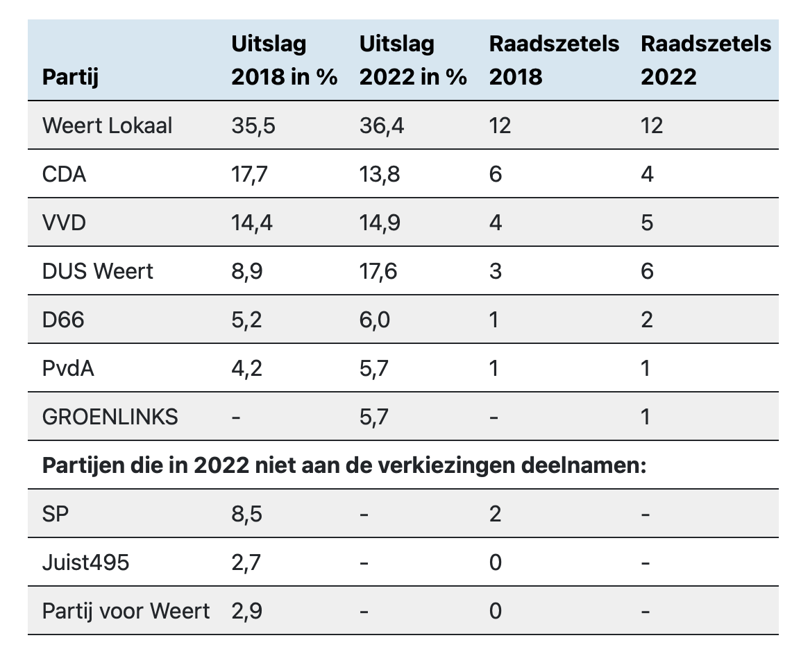 Voorlopige uitslag verkiezingen Weert