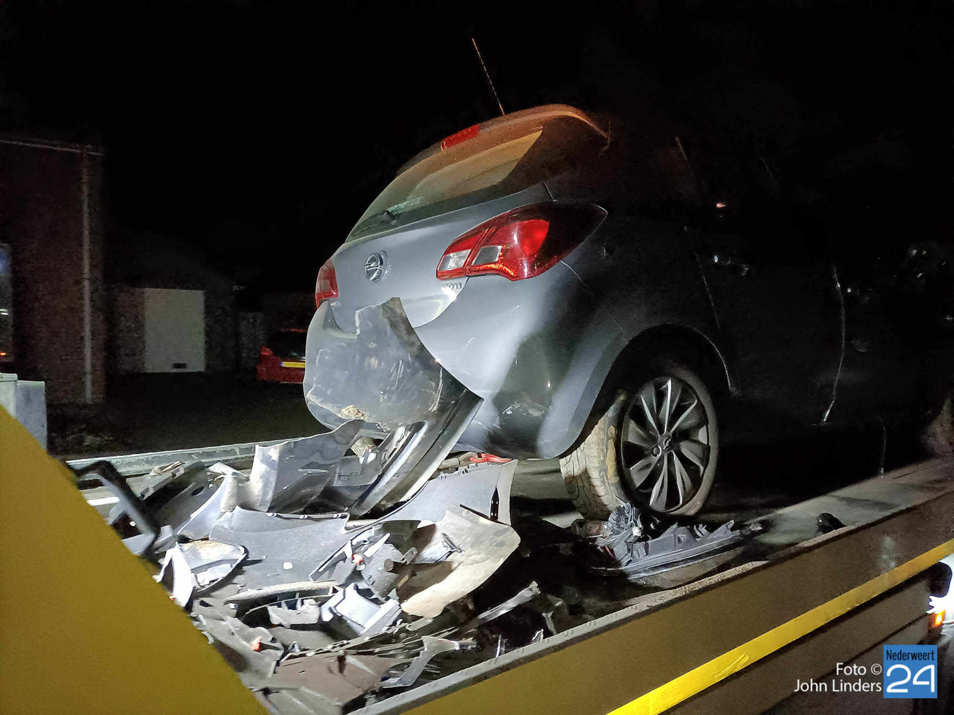 De personenauto vanuit Meijel zou volgens ooggetuigen met zeer hoge snelheid over de Meijelsedijk gereden hebben. Deze raakte hierbij de achterzijde van de auto die vanuit de Moostdijk kwam en kwam verderop tegen een lantaarnpaal tot stilstand. Door de klap is de lantaarnpaal volledig uit de grond gerukt en in twee stukken bij buurtbewoners in de tuin beland. In de auto die vanaf Meijel kwam zaten drie personen. Binnen enkele minuten kwam er een busje vanuit Meijel aangereden die stopte en de drie inzittende stapte snel. Met hoge snelheid werd het ongeval verlaten in de richting van Ospel. De bestuurder van de andere auto bleef verbaasd achter.