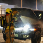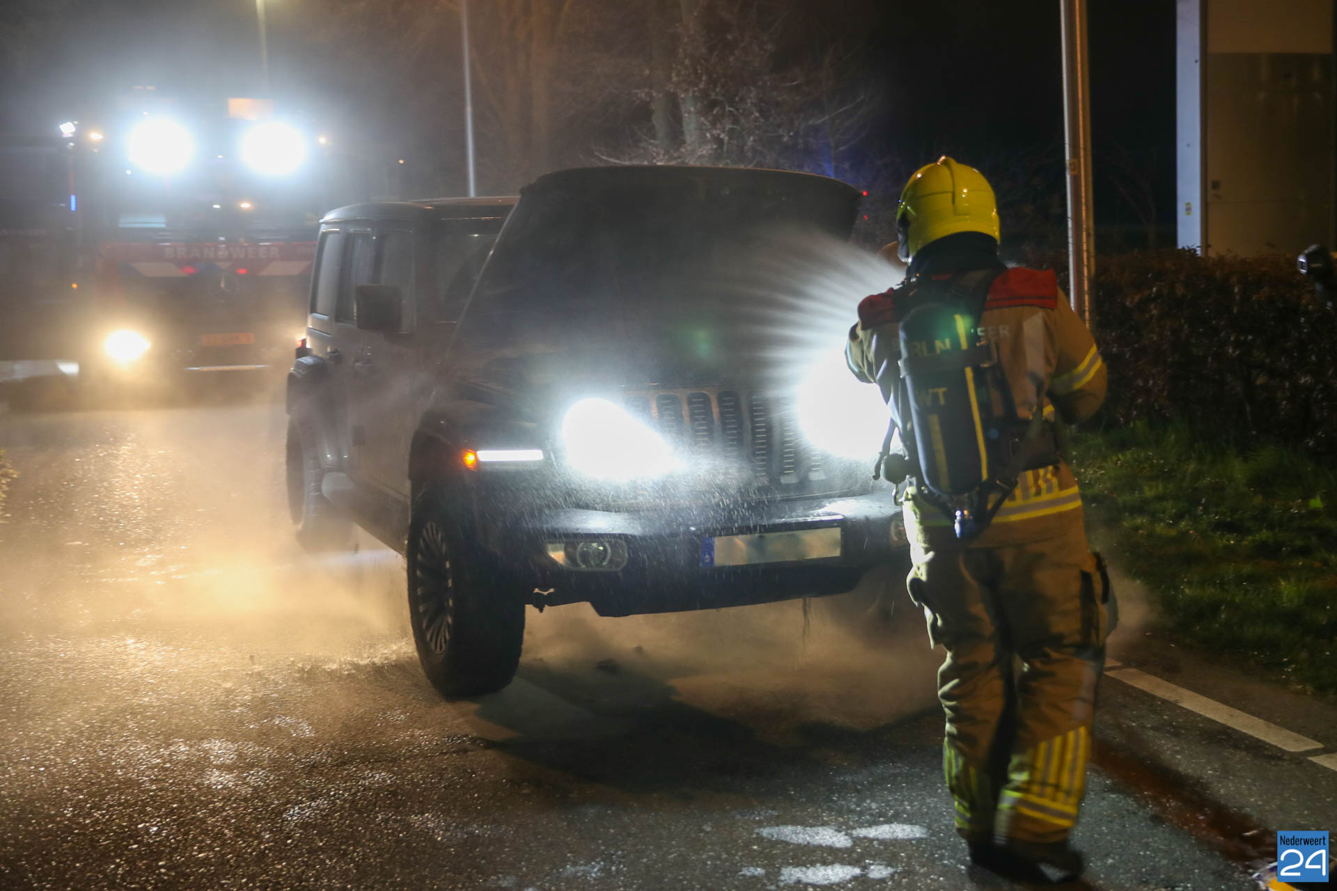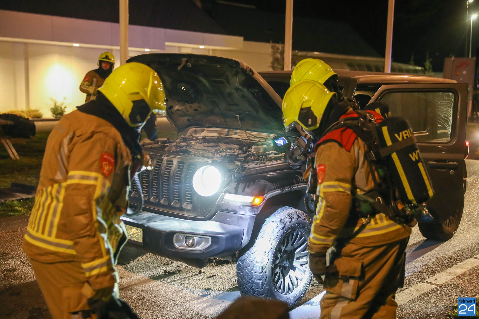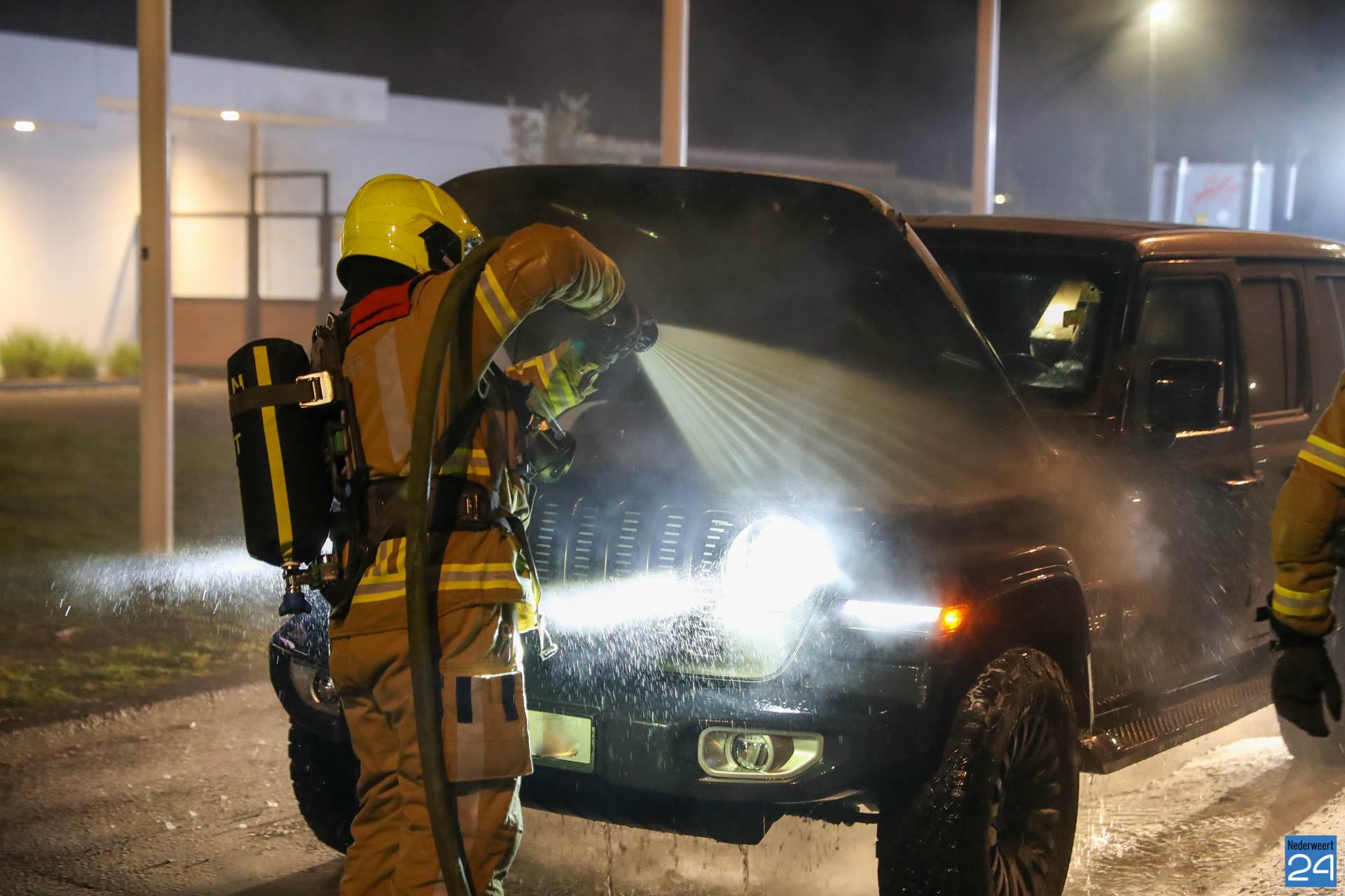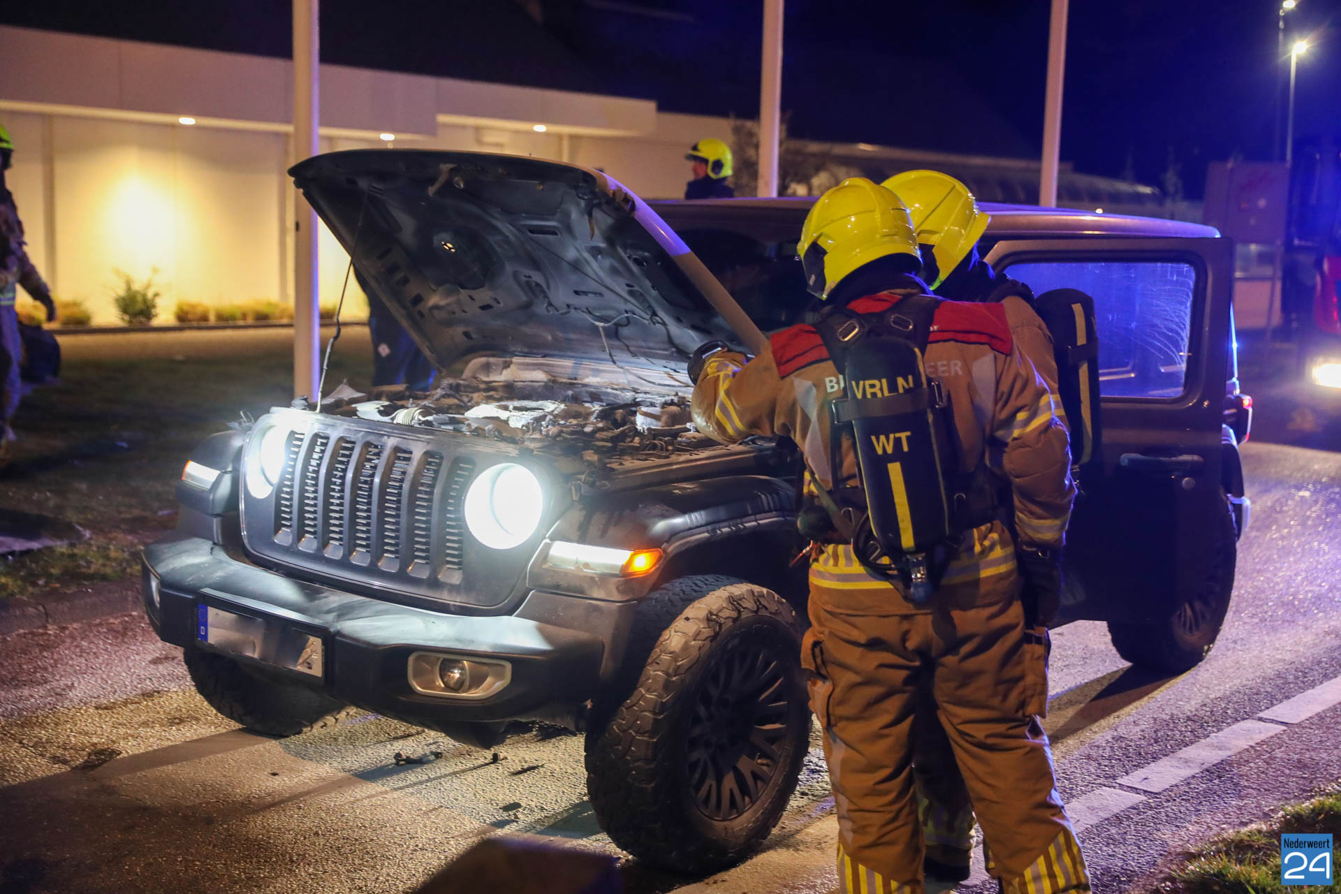 Maandagavond is een auto in brand gevlogen op de parkeerplaats van tankstation Meiberg aan de A2 in Nederweert.