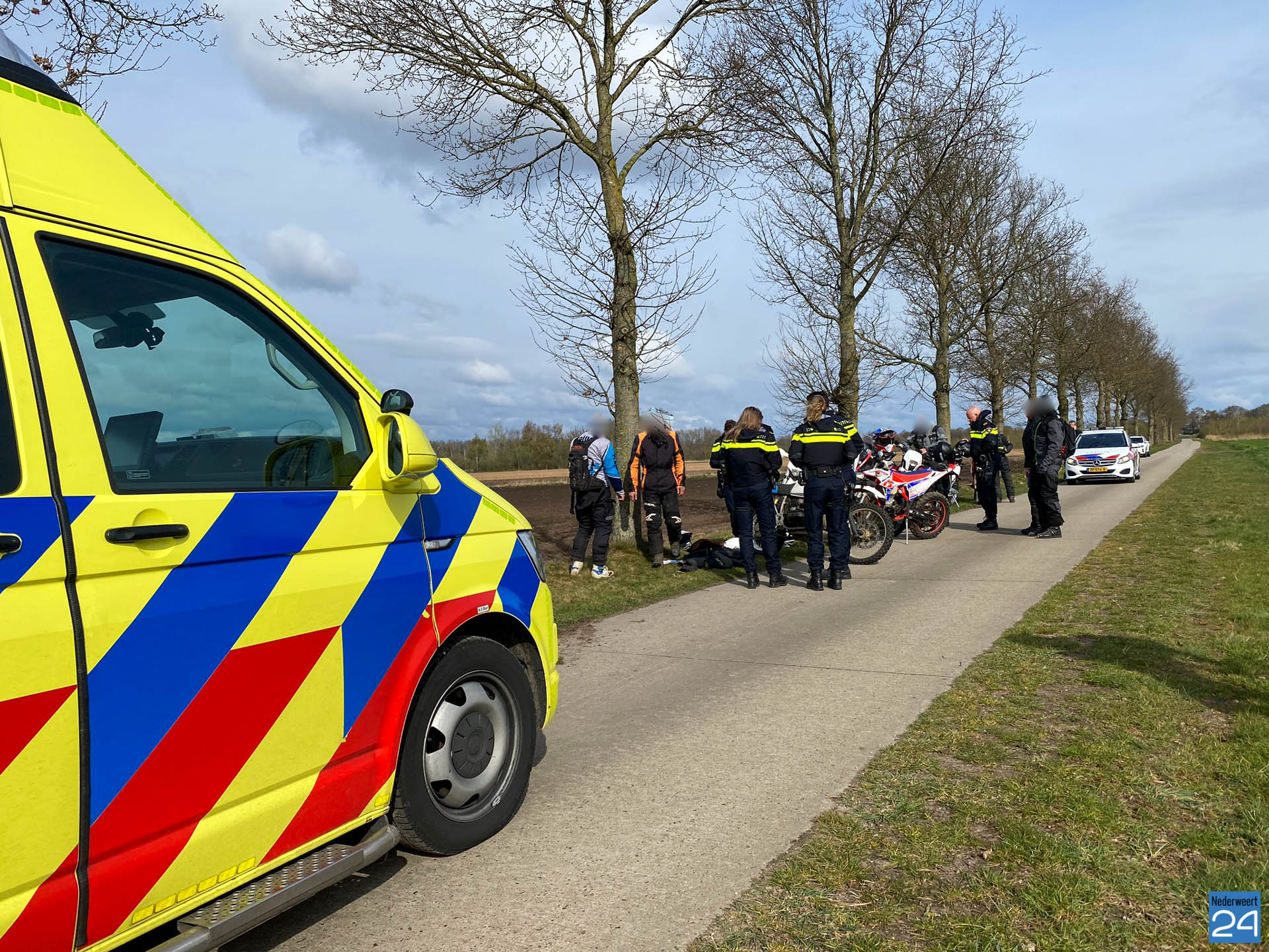 Een ambulance was snel ter plaatse en heeft de motorrijder voor controle meegenomen naar het ziekenhuis. De motor is door een busje opgehaald.