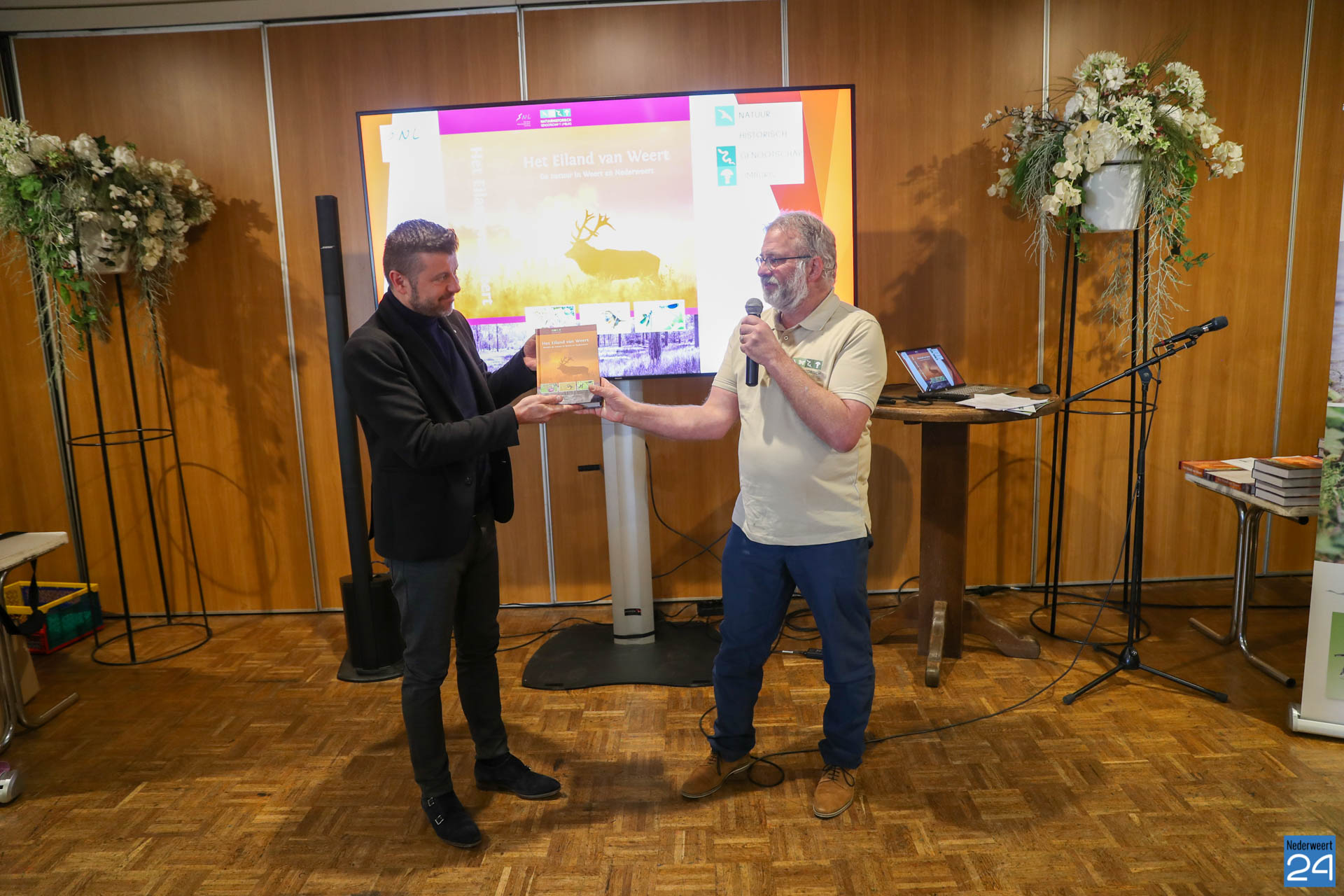 Op zaterdag 2 april werd het boek ‘Het Eiland van Weert, Ontdek de natuur in Weert en Nederweert‘ gepresenteerd in zaal Bee-j Bertje op Laar. Het eerste boek werd in ontvangst genomen door gedeputeerde van Provincie Limburg Geert Gabriëls. Daarna was het de beurt aan wethouder Henk van de Loo (gemeente Weert) en wethouder Ria Stienen (gemeente Nederweert).