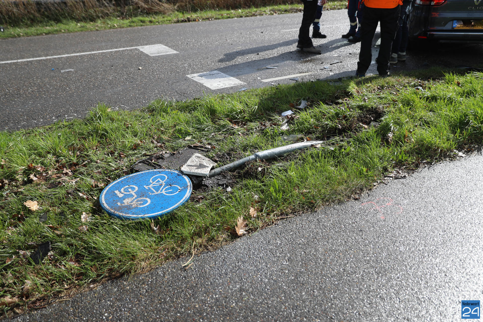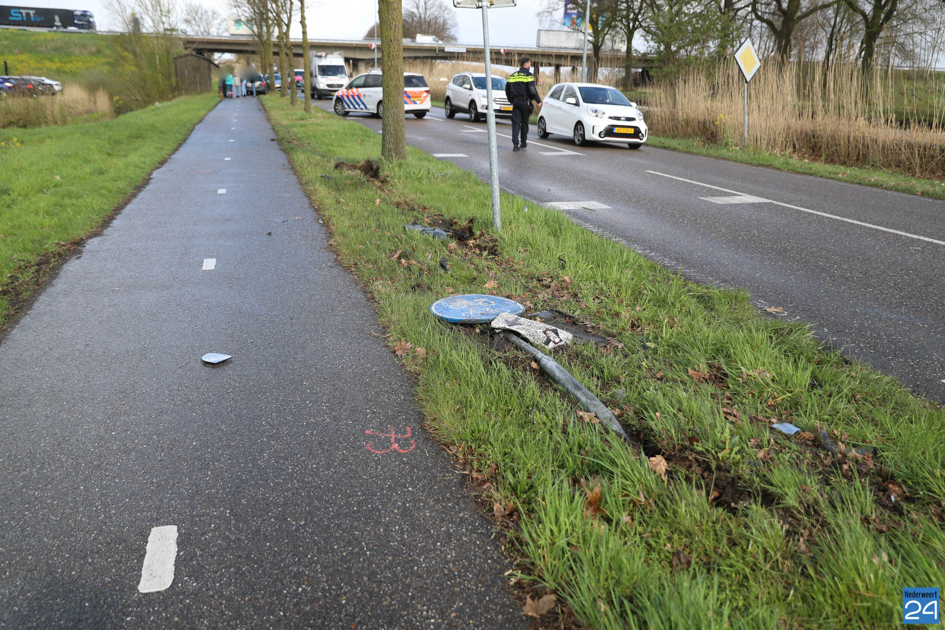 Op het fietspad was een oliespoor ontstaan. Het kan daar dus glad zijn. De gemeente wordt ingeschakeld om de olie op te ruimen.